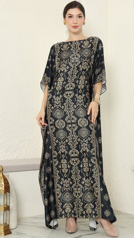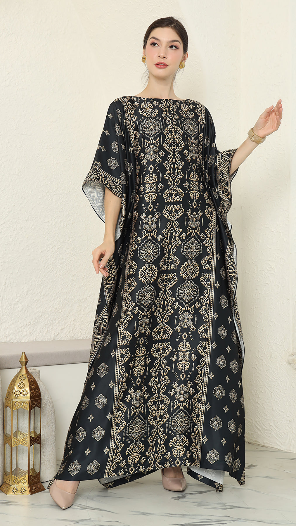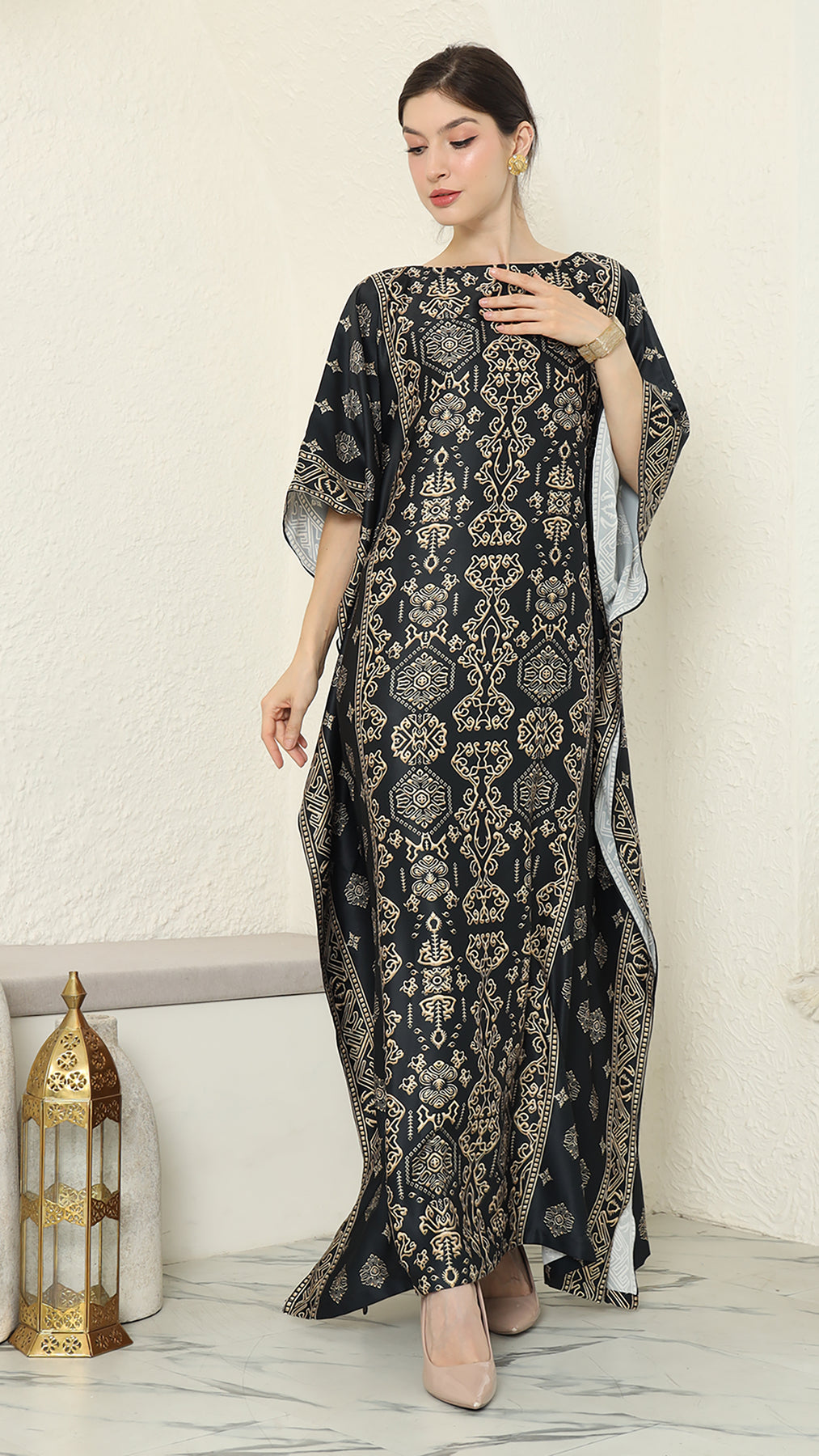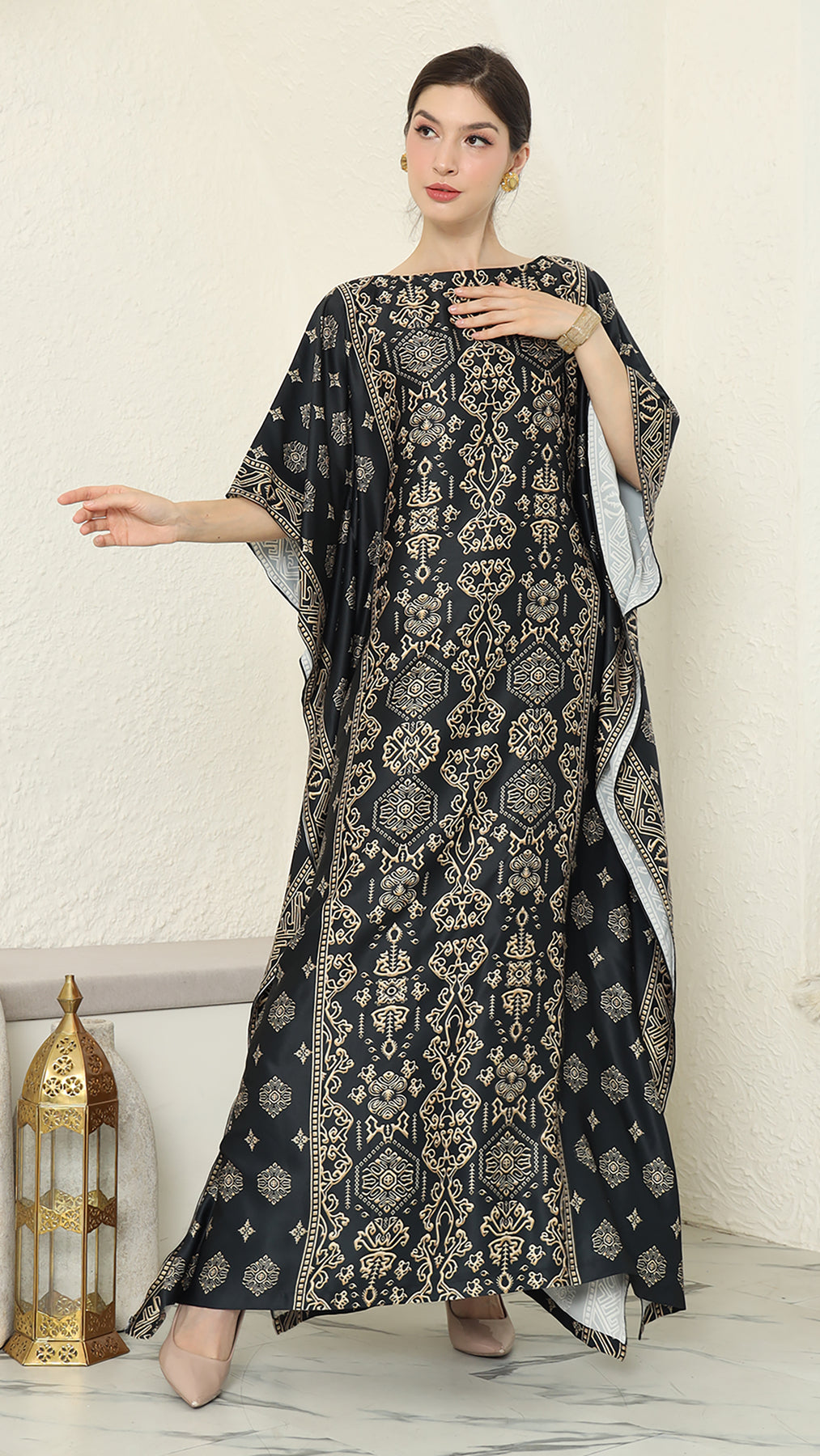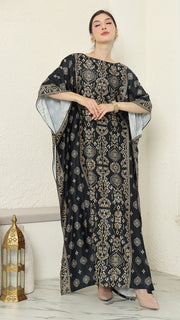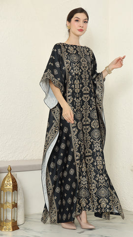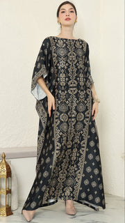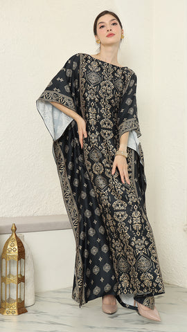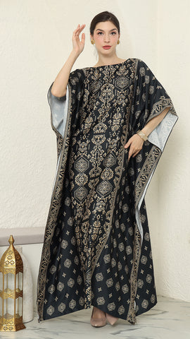 This featured kaftan is a true masterpiece. It offers a flattering fit that enhances your silhouette from every angle. Made from non-transparent fabric, it ensures confidence and comfort, allowing you to move with grace and poise.