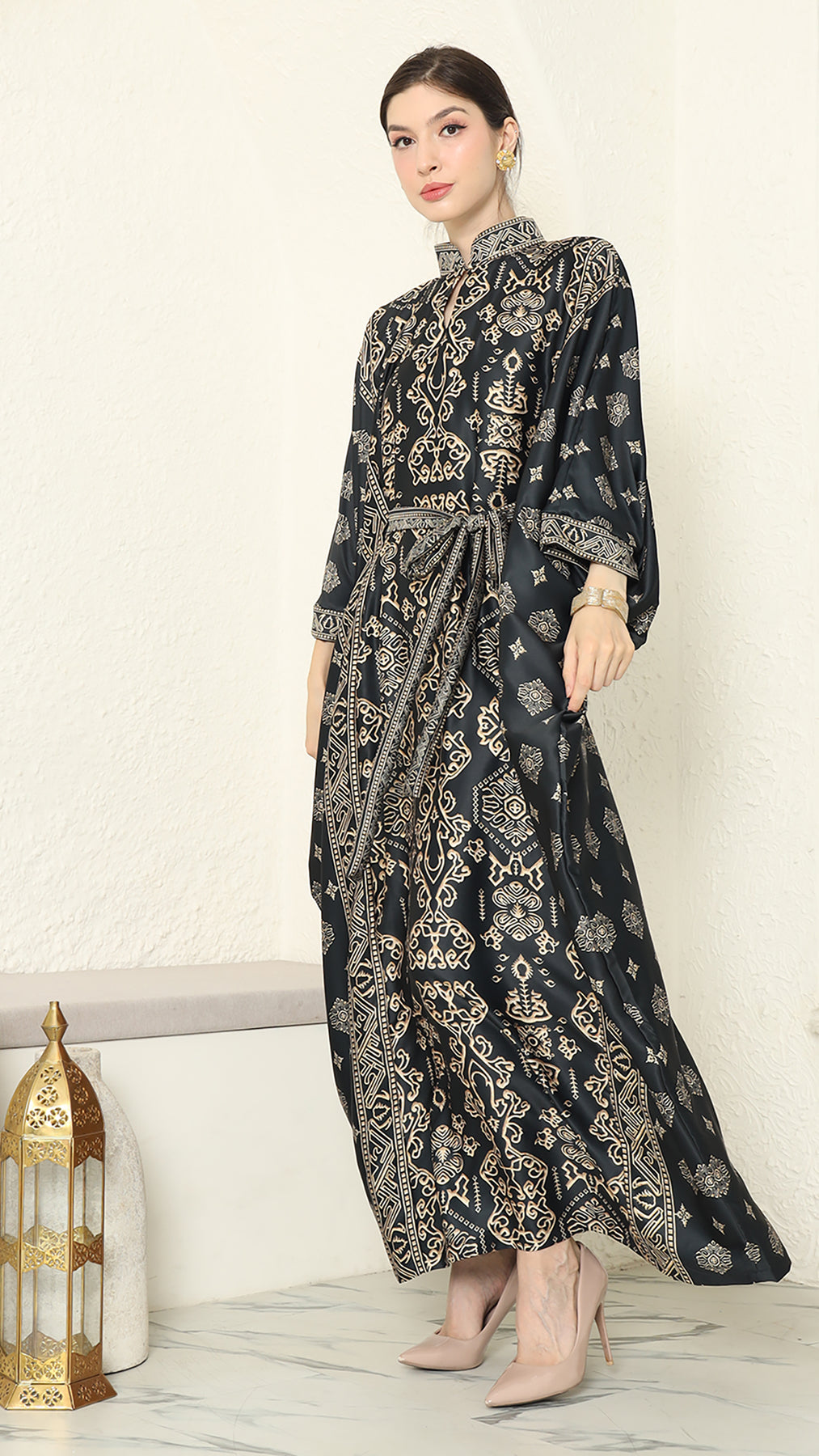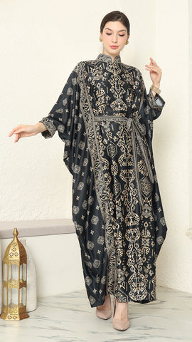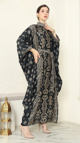 This featured dress kaftan is a true masterpiece. It offers a flattering fit that enhances your silhouette from every angle. Made from non-transparent fabric, it ensures confidence and comfort, allowing you to move with grace and poise.