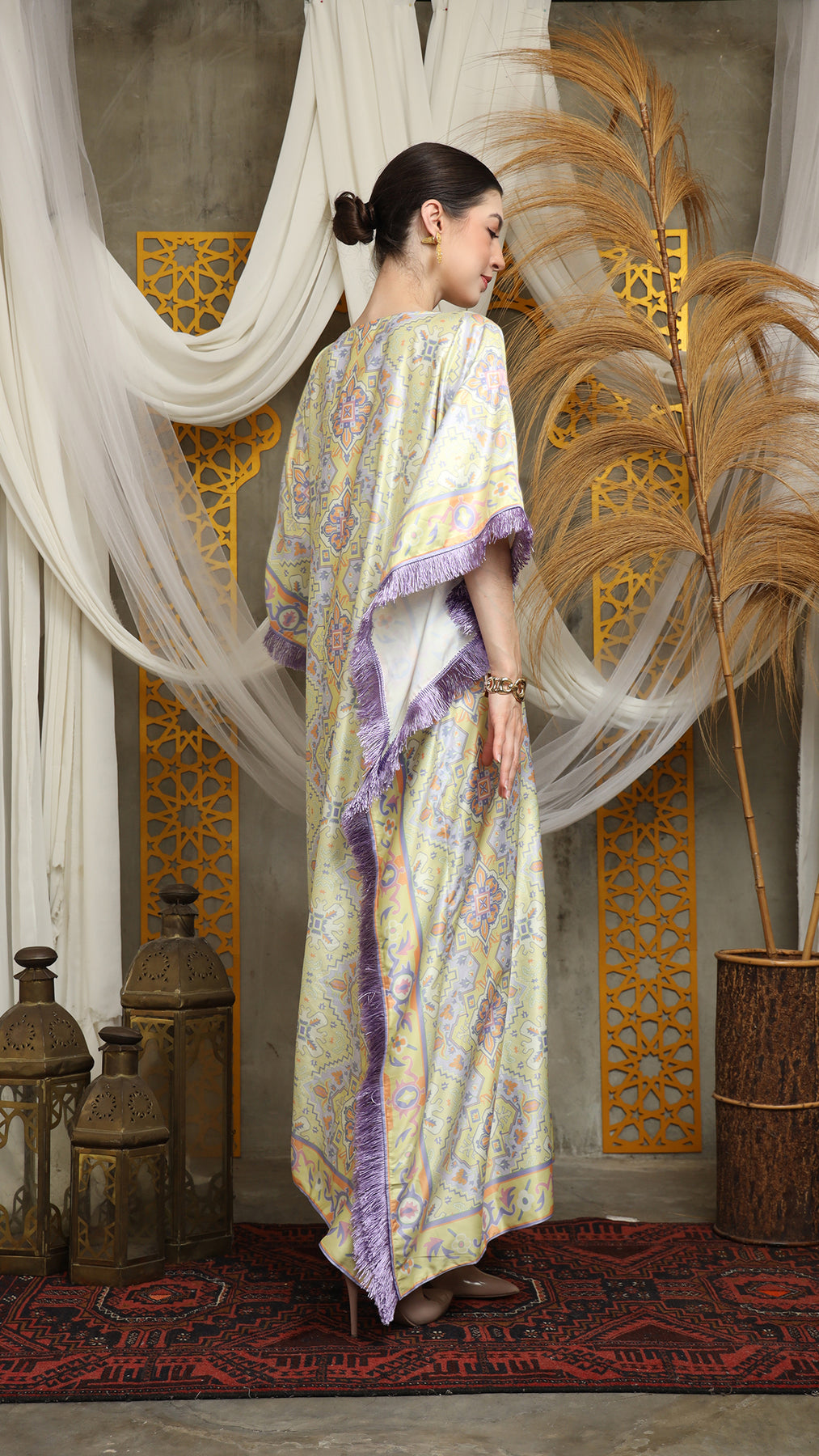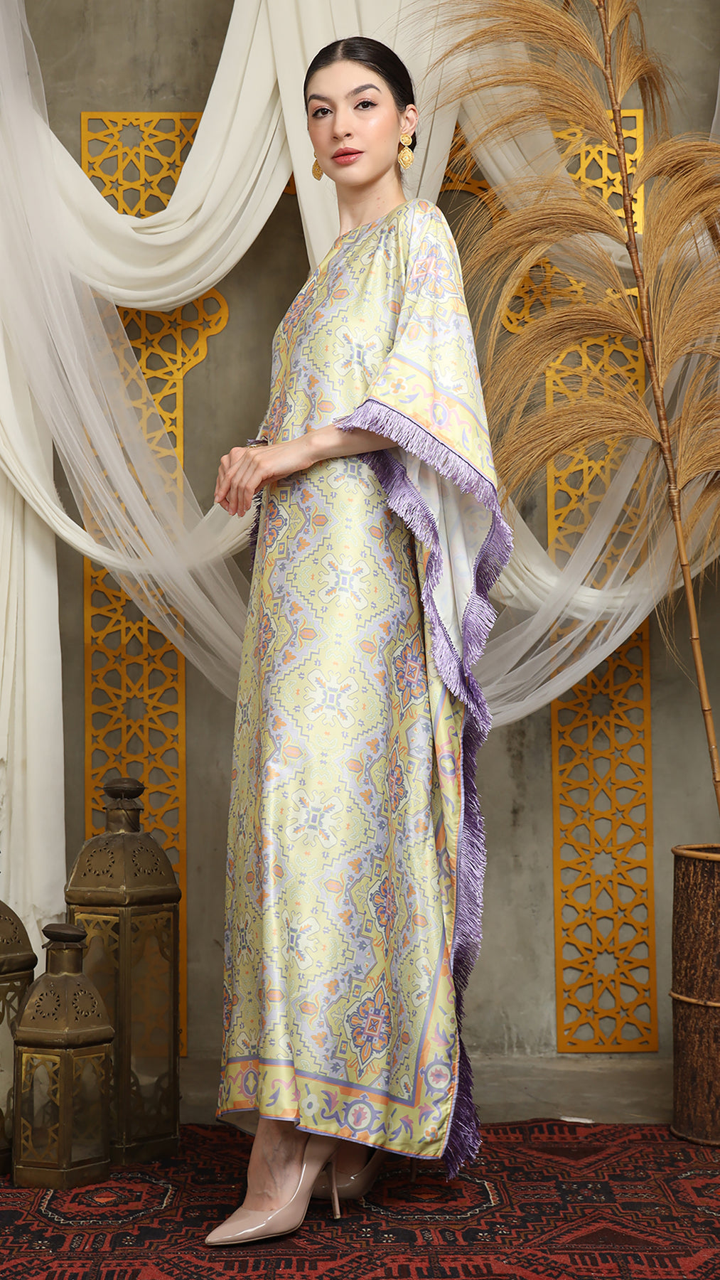 Lime Purple Short Fringe Kaftan