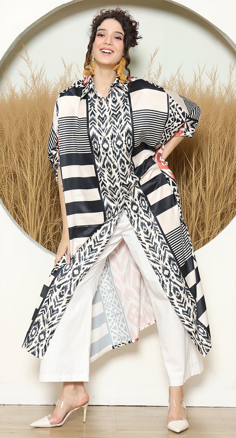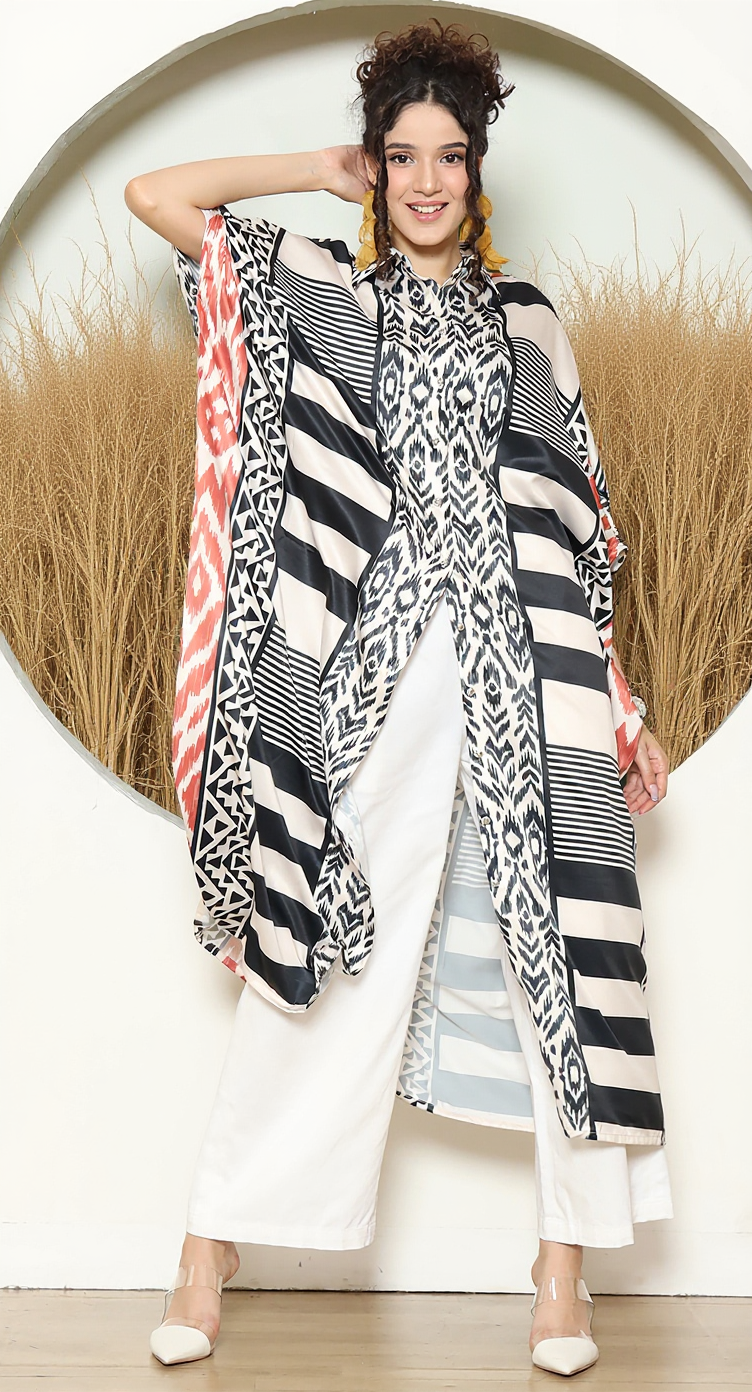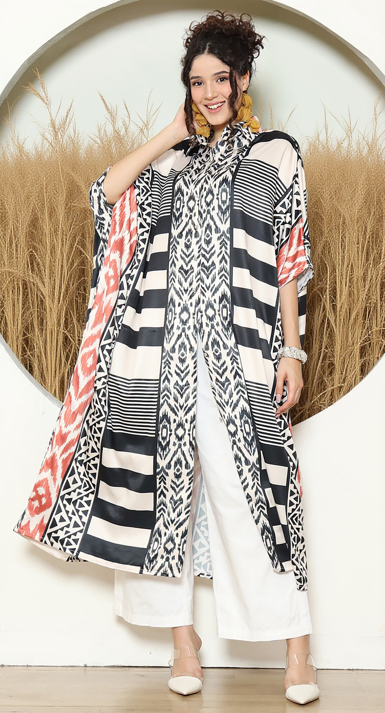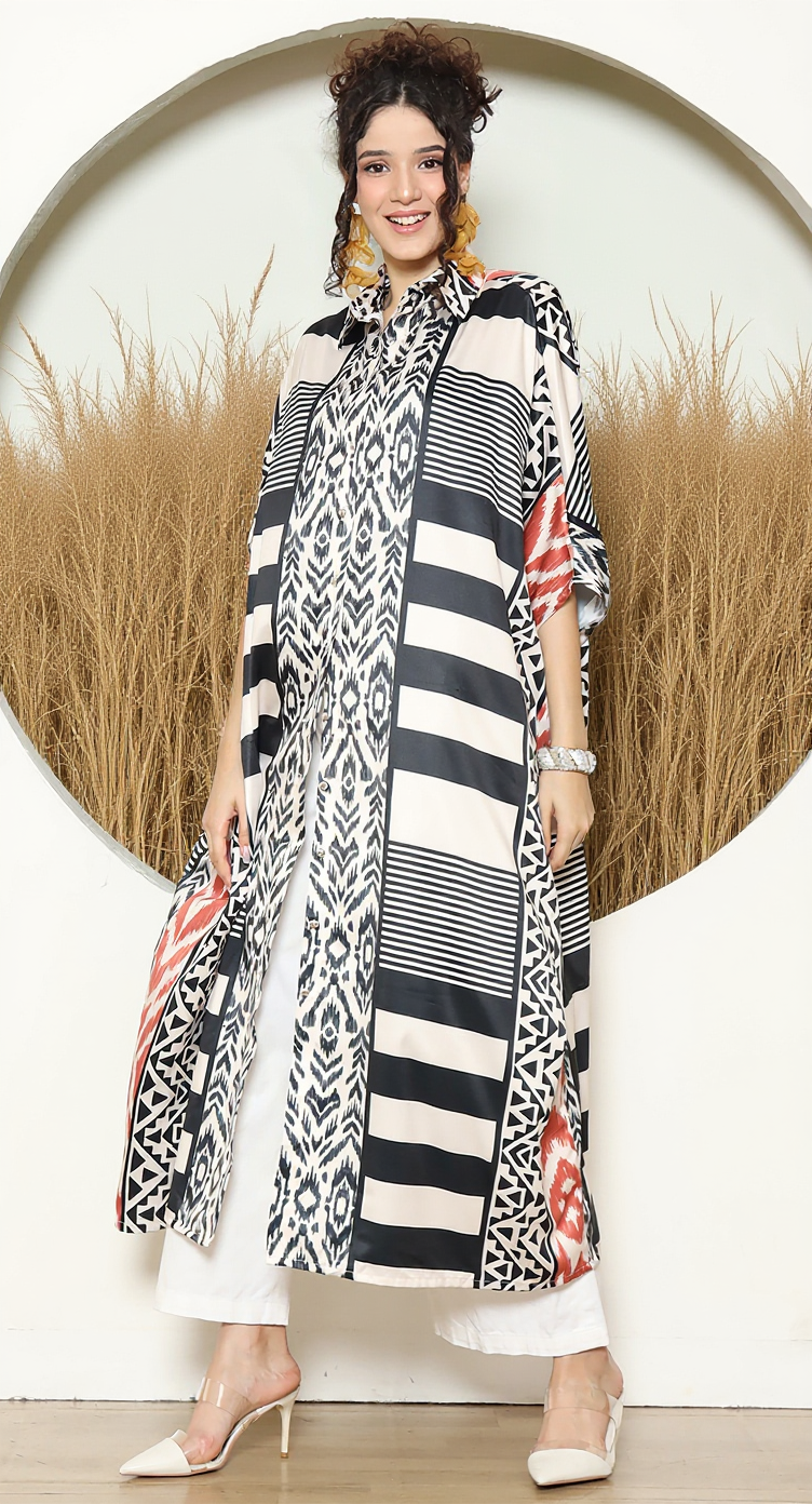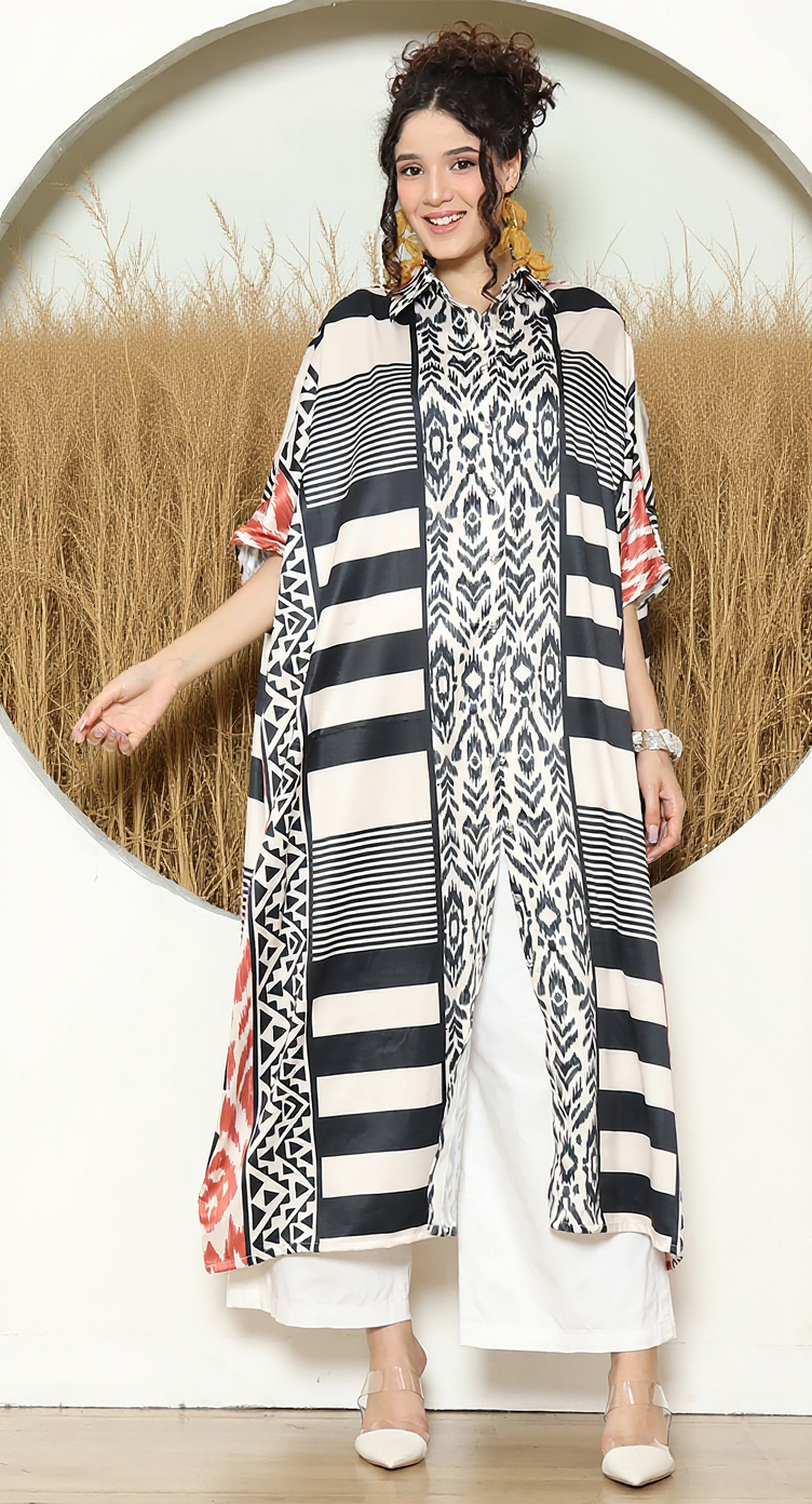 STRIPE IKAT BUTTON KAFTAN