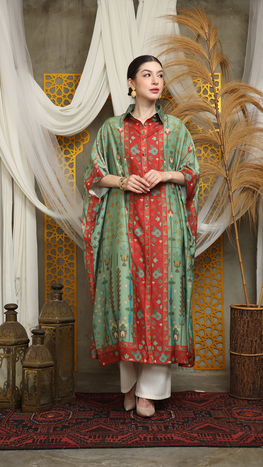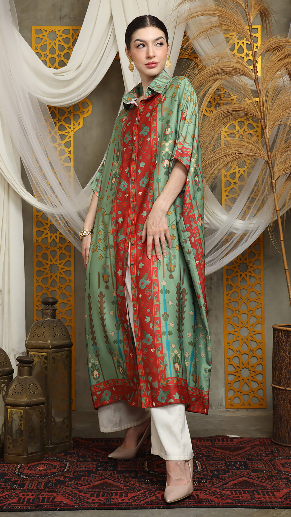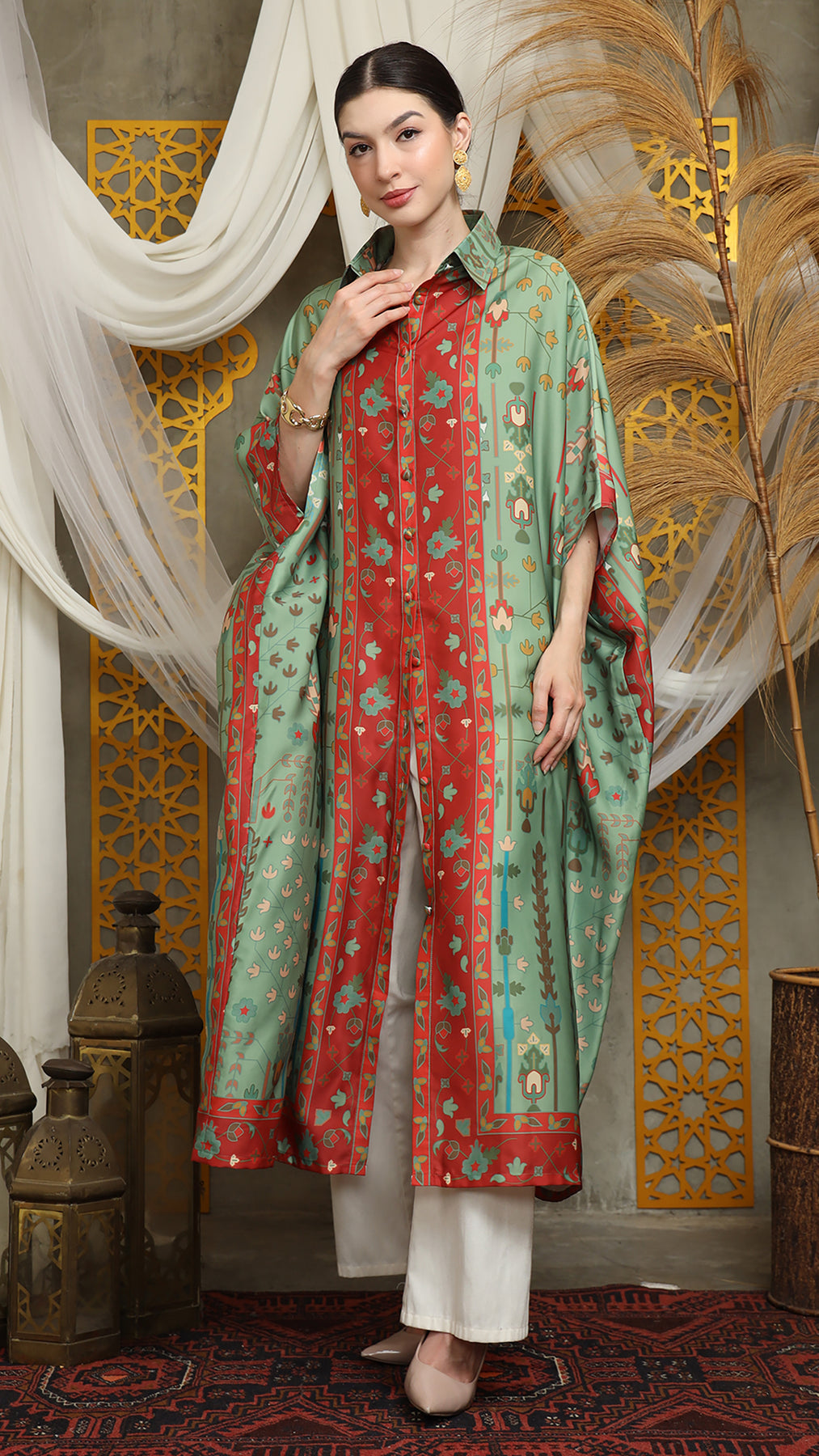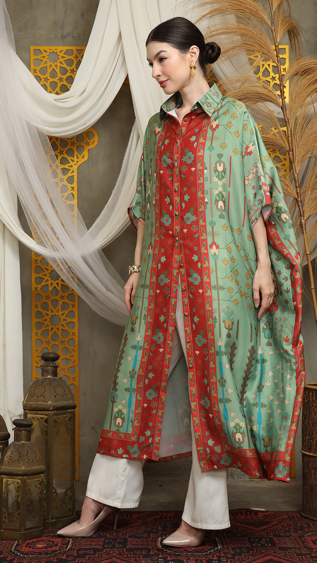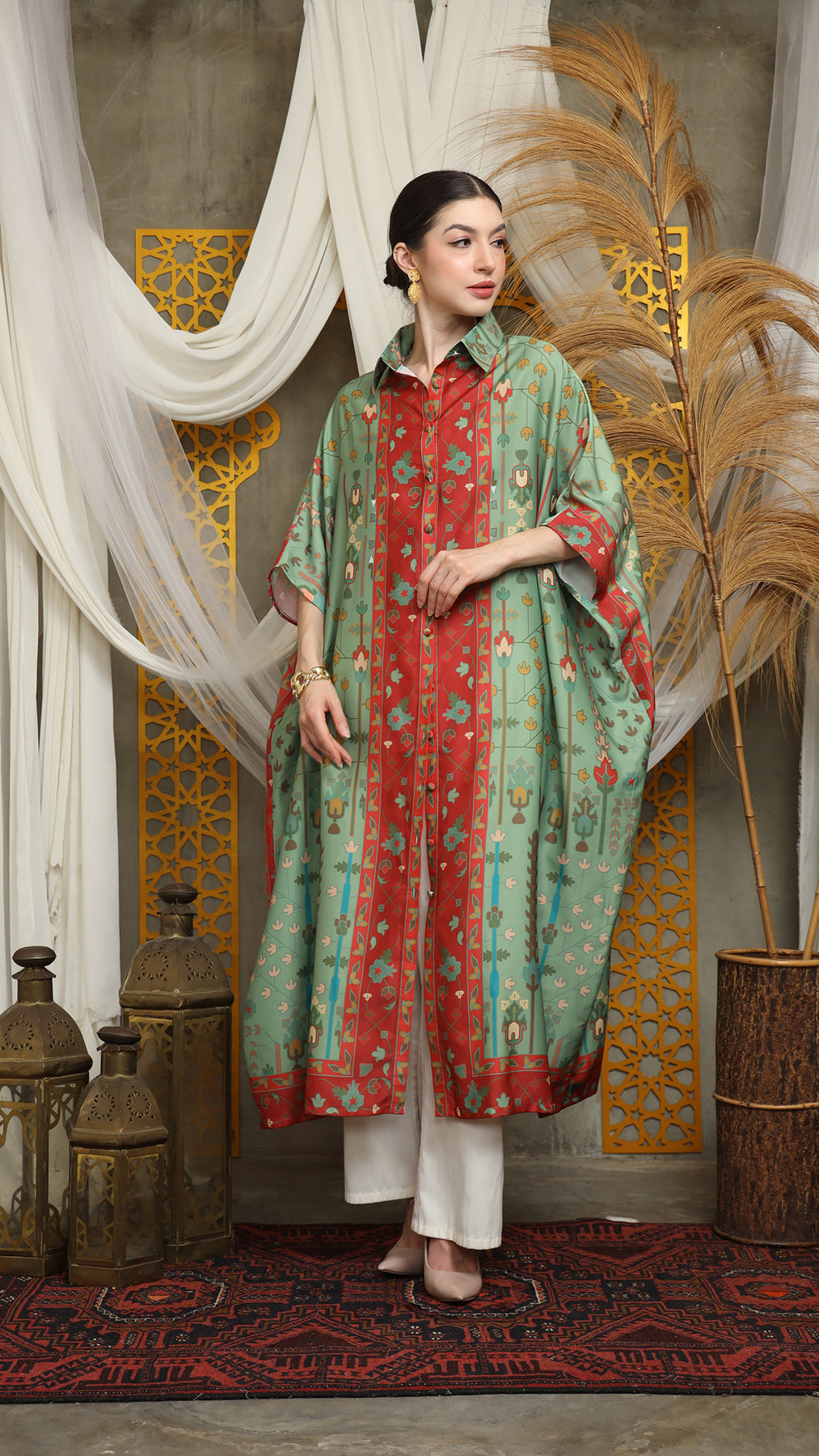 The Button Kaftan is a versatile, timeless piece that effortlessly blends style and comfort. Crafted from lightweight satin, it offers a luxurious feel and graceful drape, making it perfect for a variety of occasions. Designed with a convenient button-front fastening, it allows for easy wear and adjustable styling. The elegant motif adds a refined, sophisticated touch, elevating any look. Whether styled casually or worn as a chic outer layer, this kaftan adapts beautifully to different personal styles. Paired with pants, it creates a polished, contemporary outfit with endless styling possibilities.