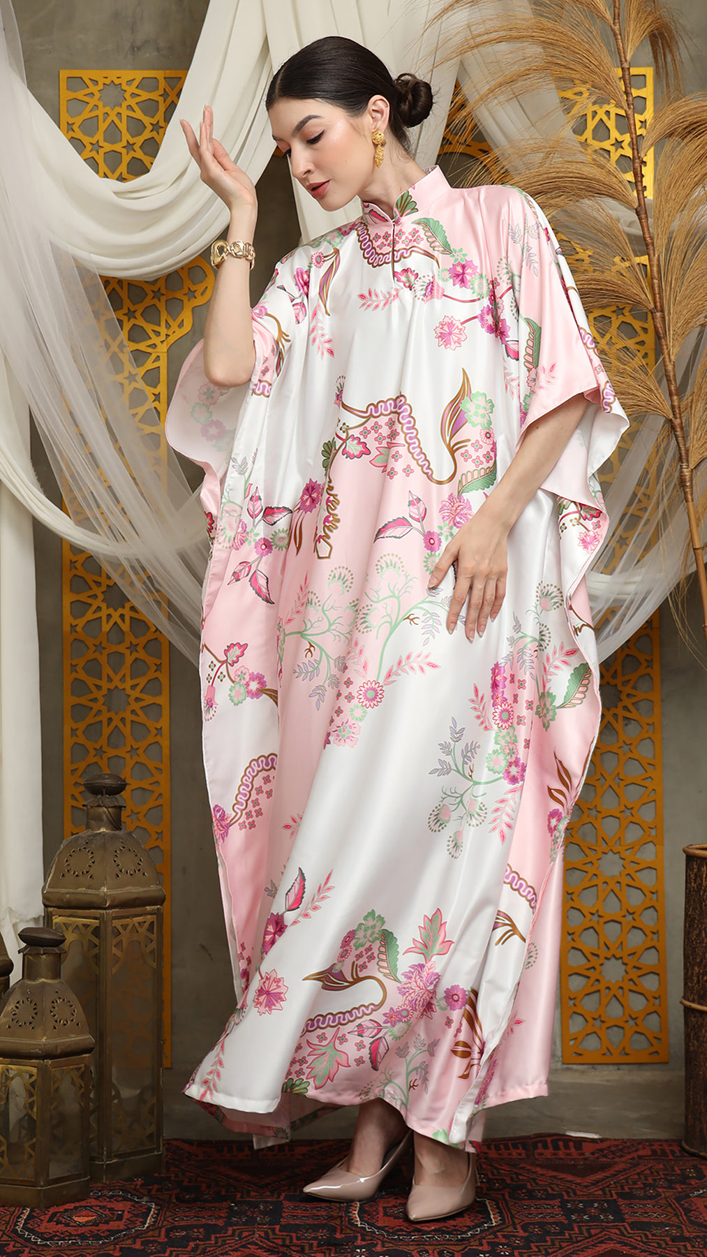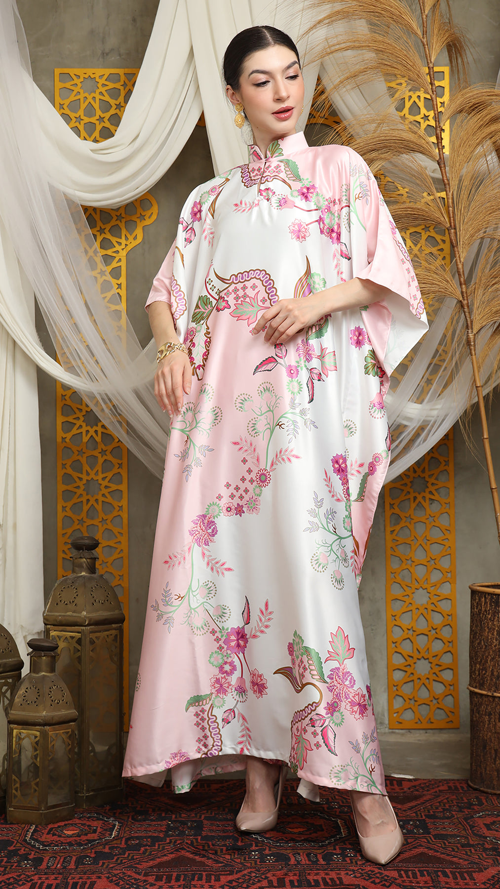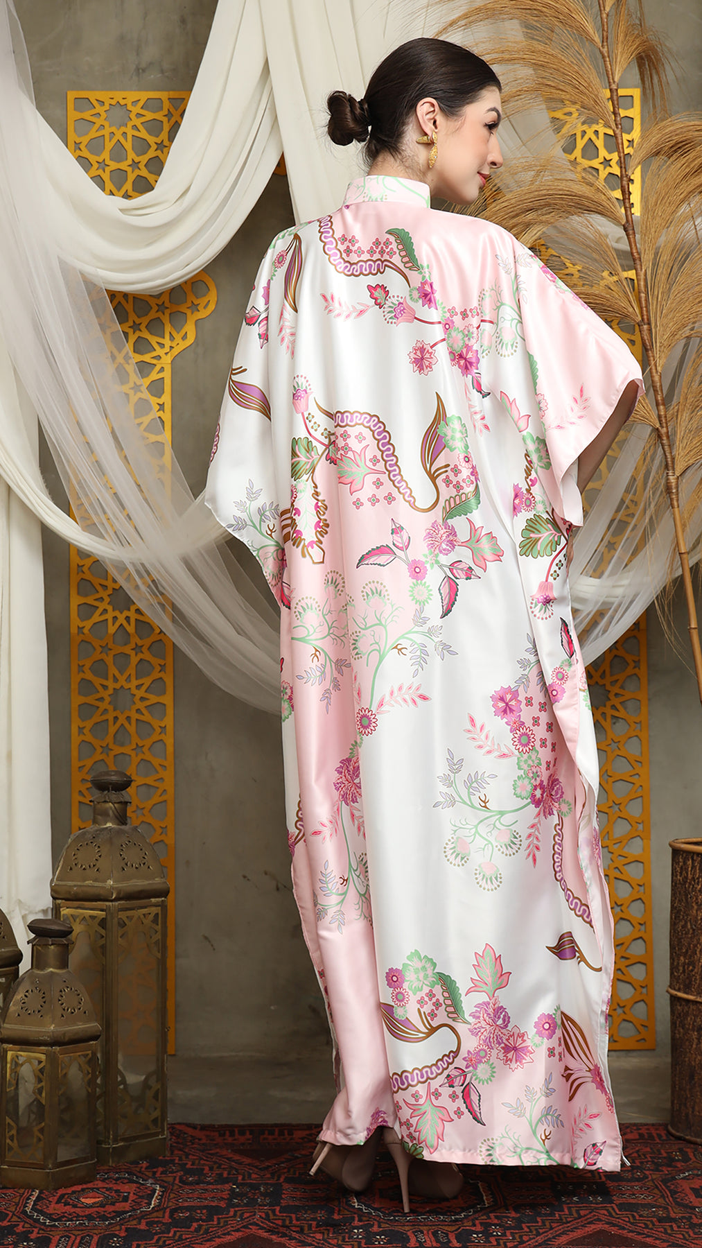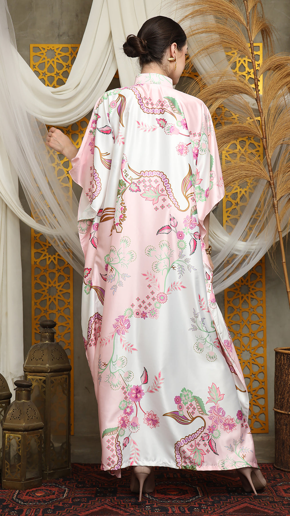 This kaftan made from lightweight satin material, which has super comfortable to lounge around in, adjustable drawstring and High Collar neckline with front buttons is an added feature which offers a glamorous way to cover up and perfect for evening wear.