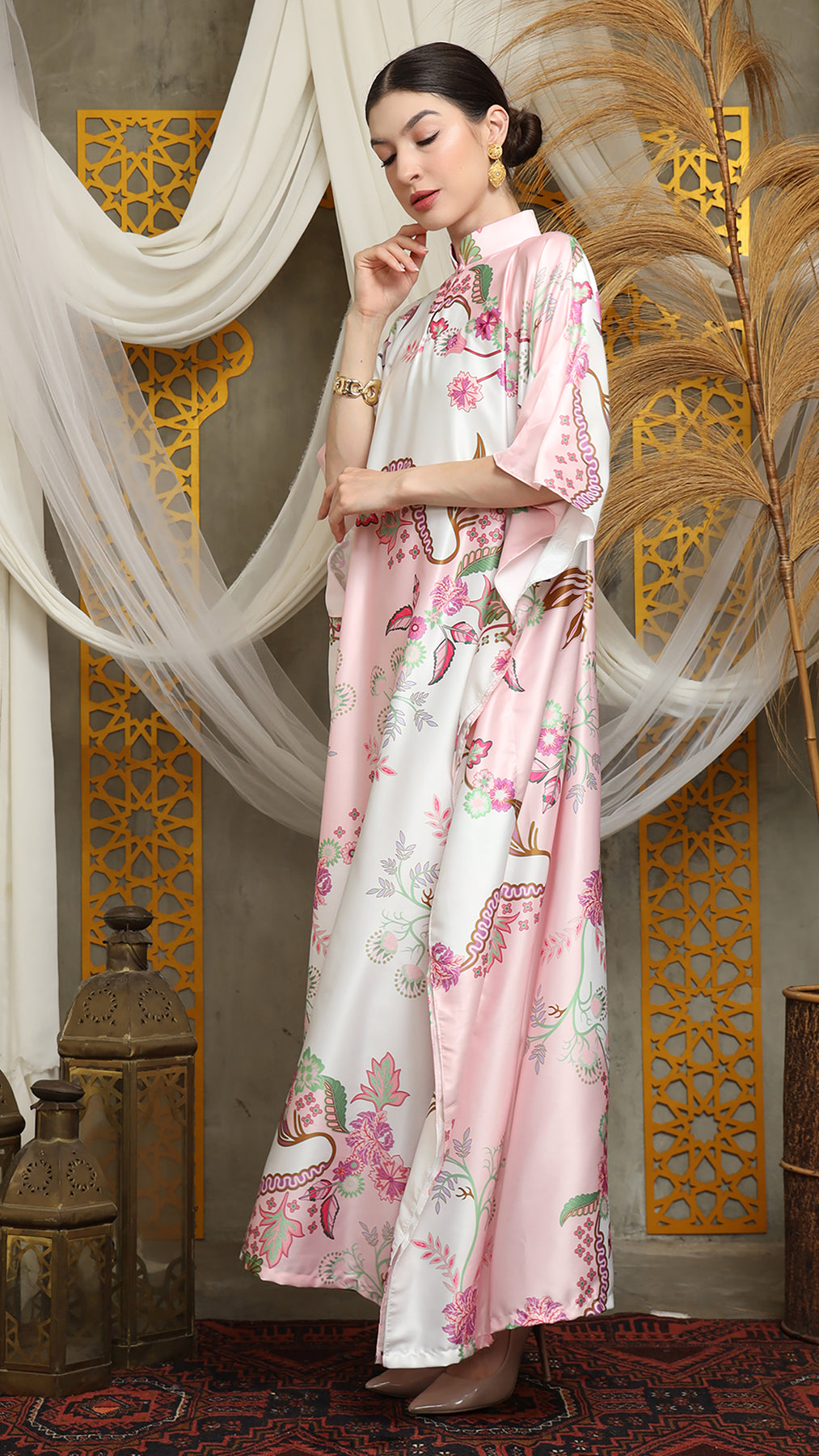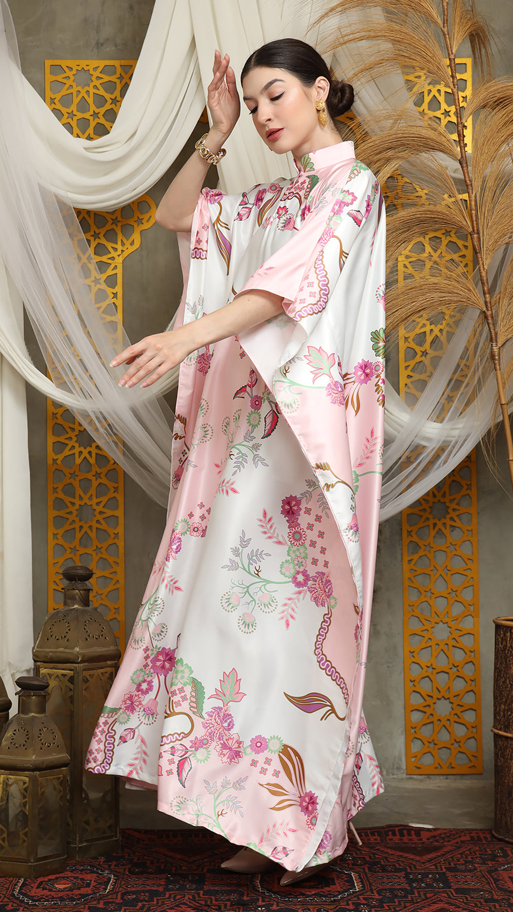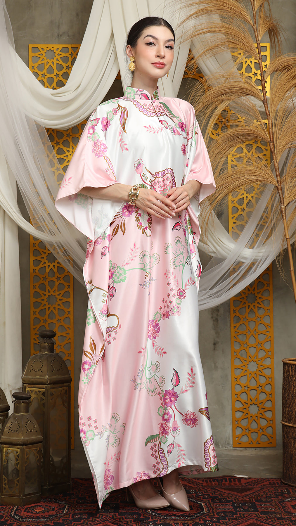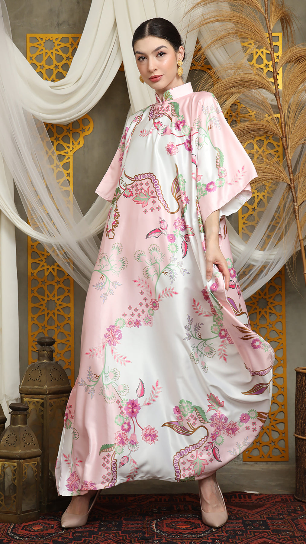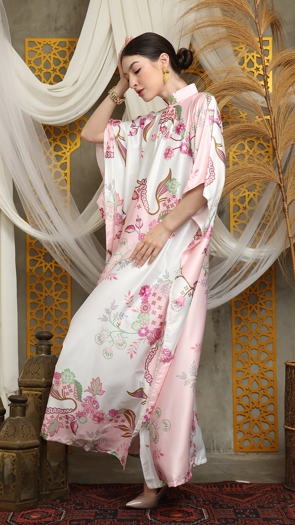 This kaftan made from lightweight satin material, which has super comfortable to lounge around in, adjustable drawstring and High Collar neckline with front buttons is an added feature which offers a glamorous way to cover up and perfect for evening wear.