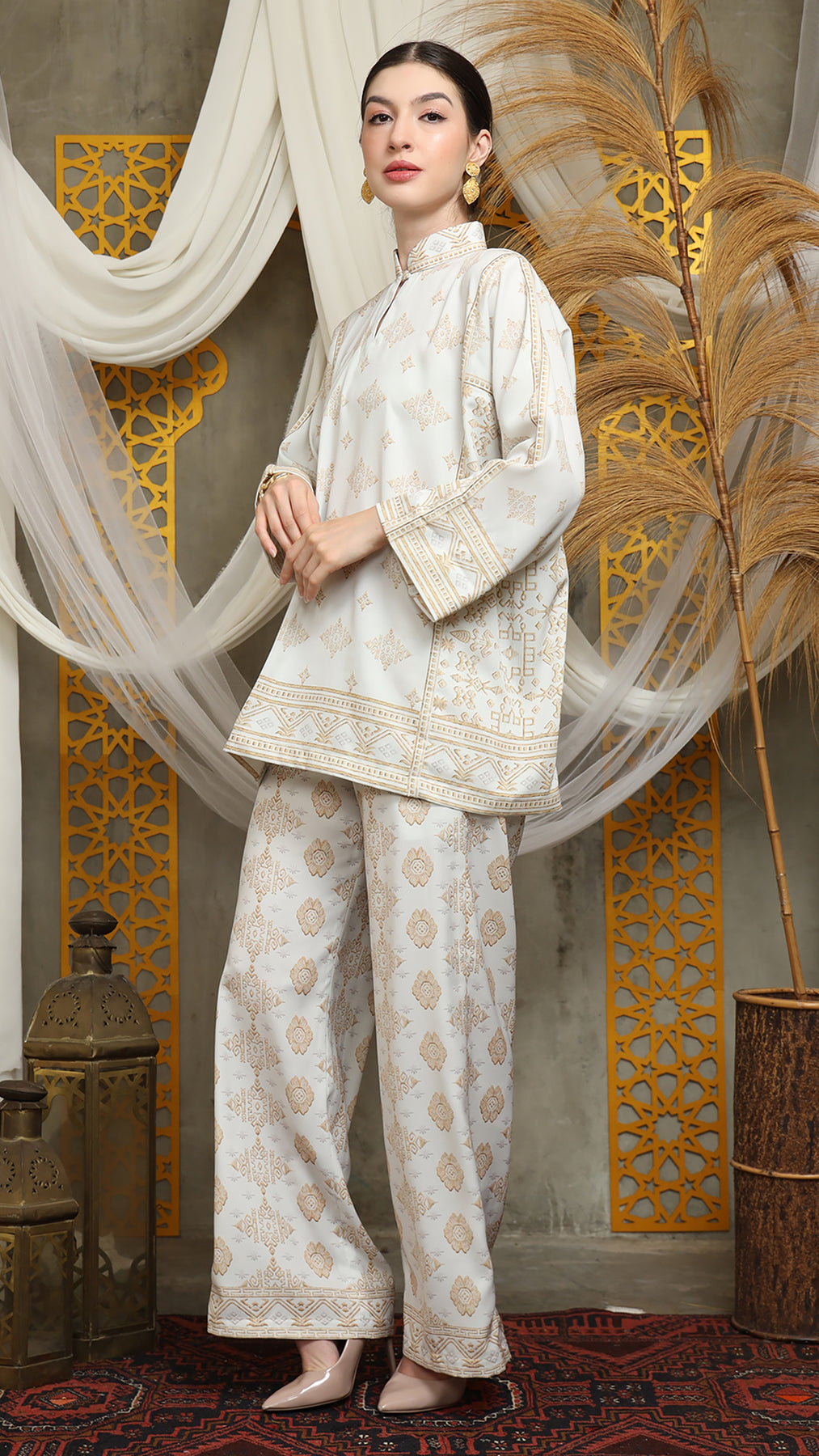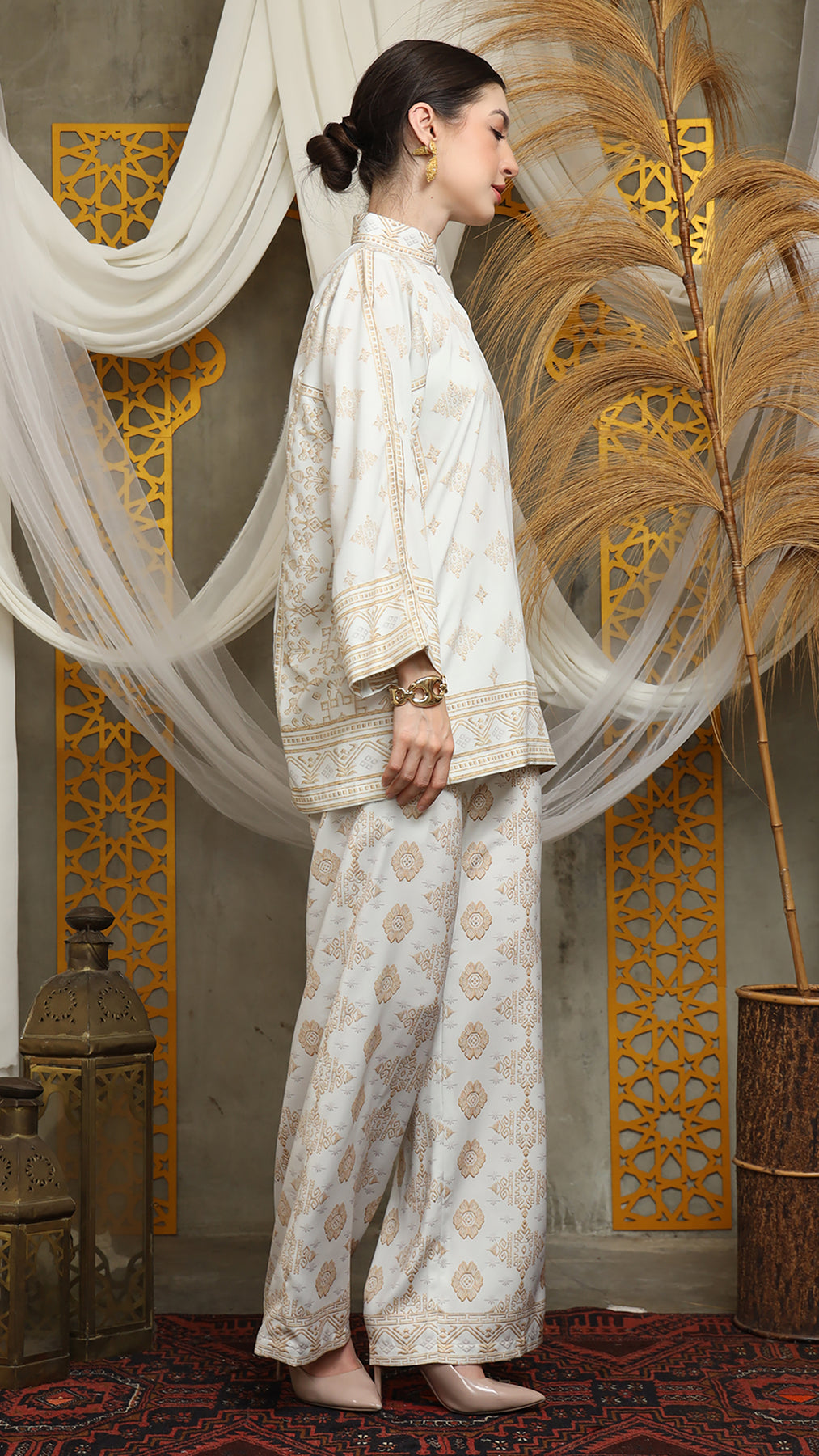 This featured set with pants is a true masterpiece. It offers a flattering fit that enhances your silhouette from every angle. Made from non-transparent fabric, it ensures confidence and comfort, allowing you to move with grace and poise.