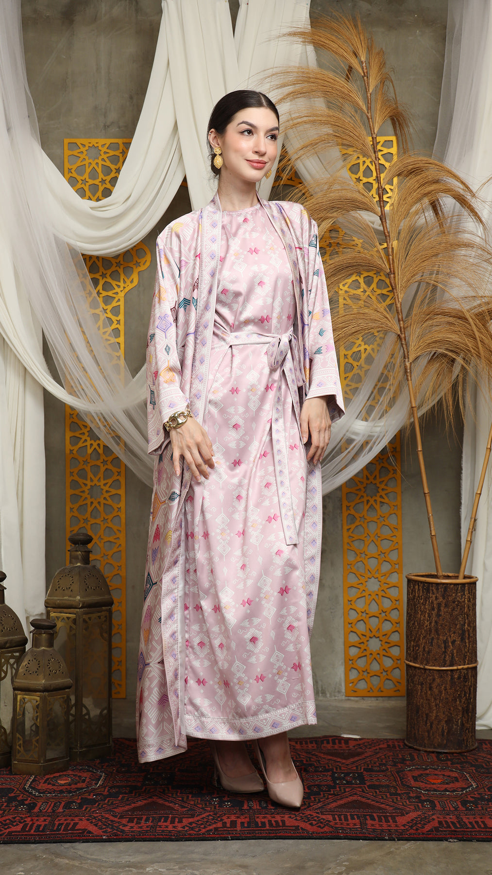 Pink Lombok Outer Dress Set