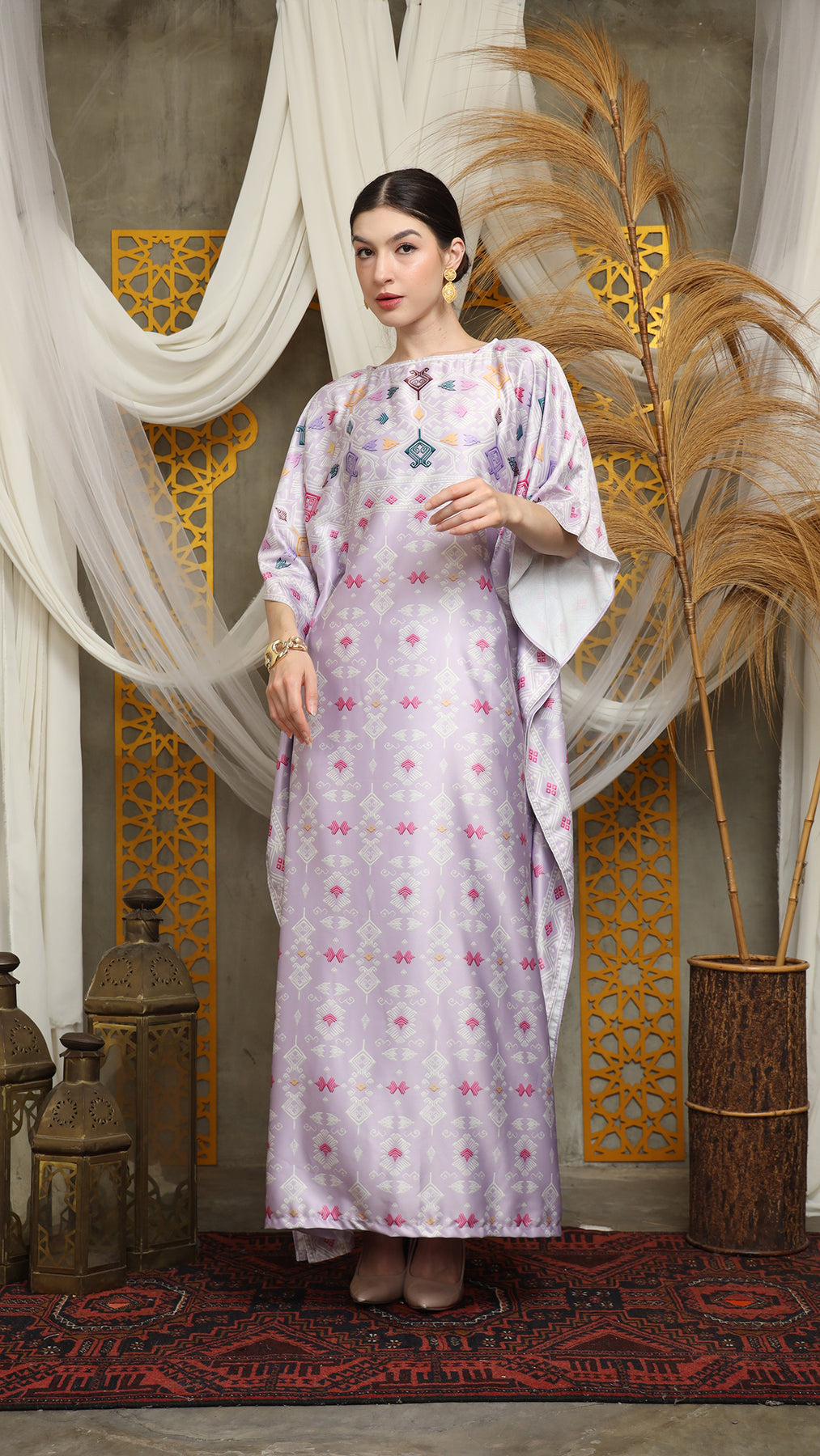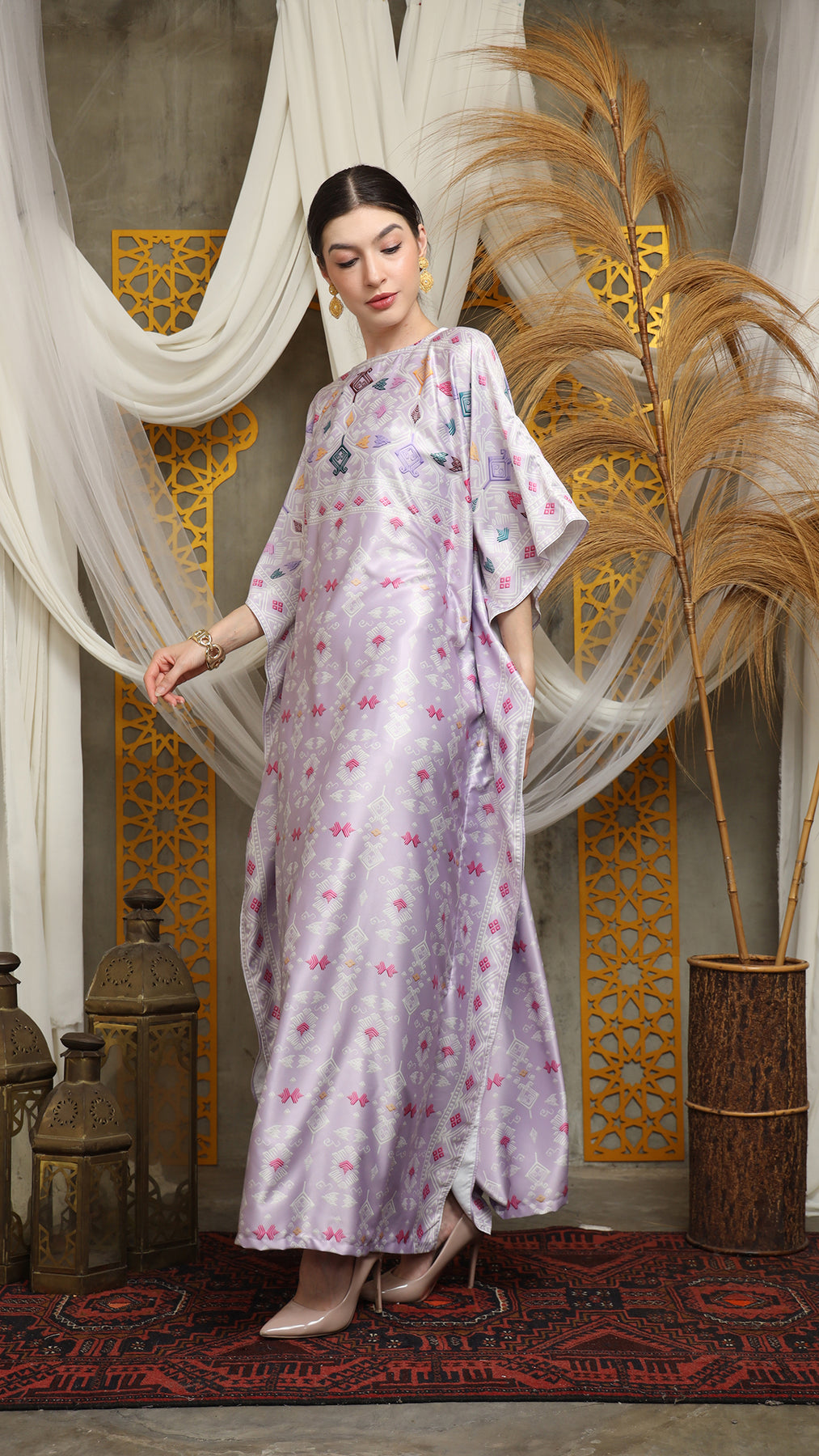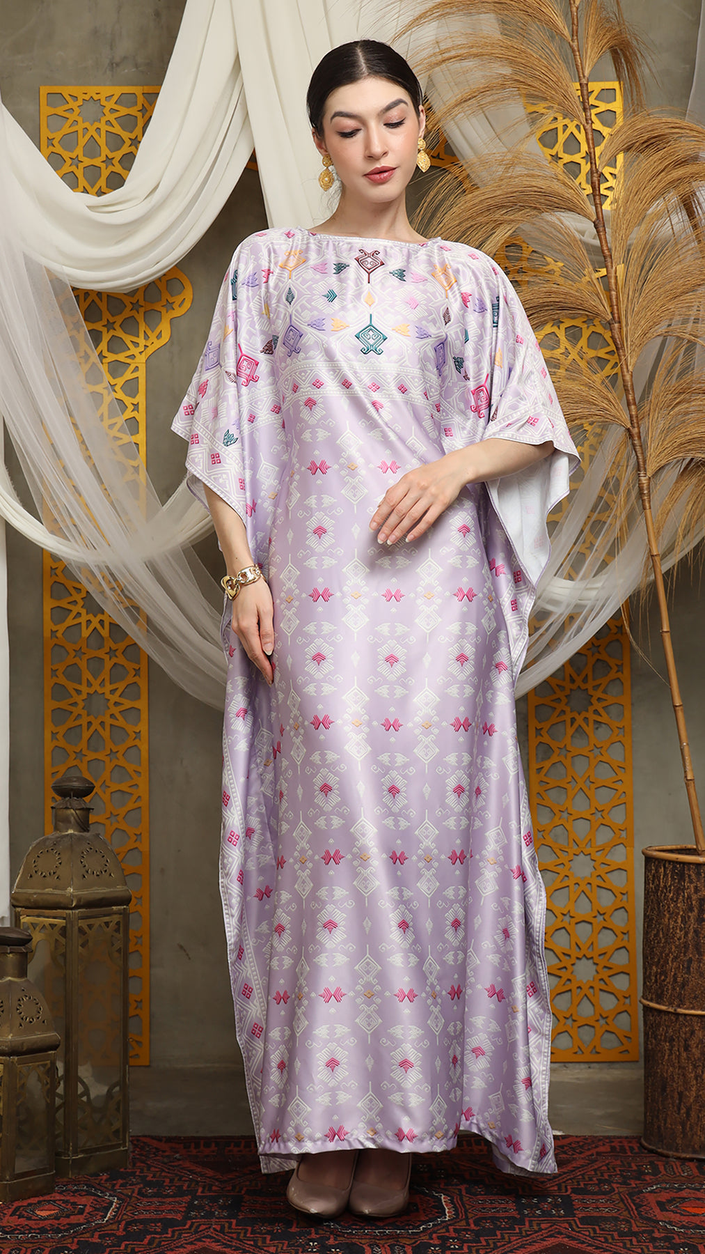 This featured kaftan is a true masterpiece. It offers a flattering fit that enhances your silhouette from every angle. Made from non-transparent fabric, it ensures confidence and comfort, allowing you to move with grace and poise.