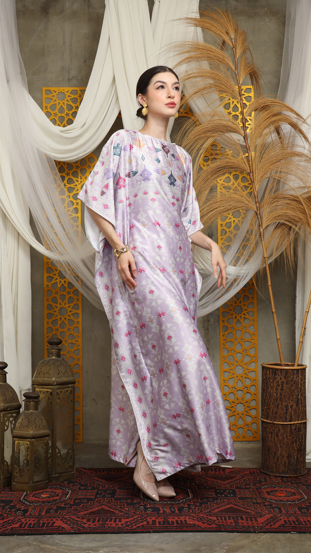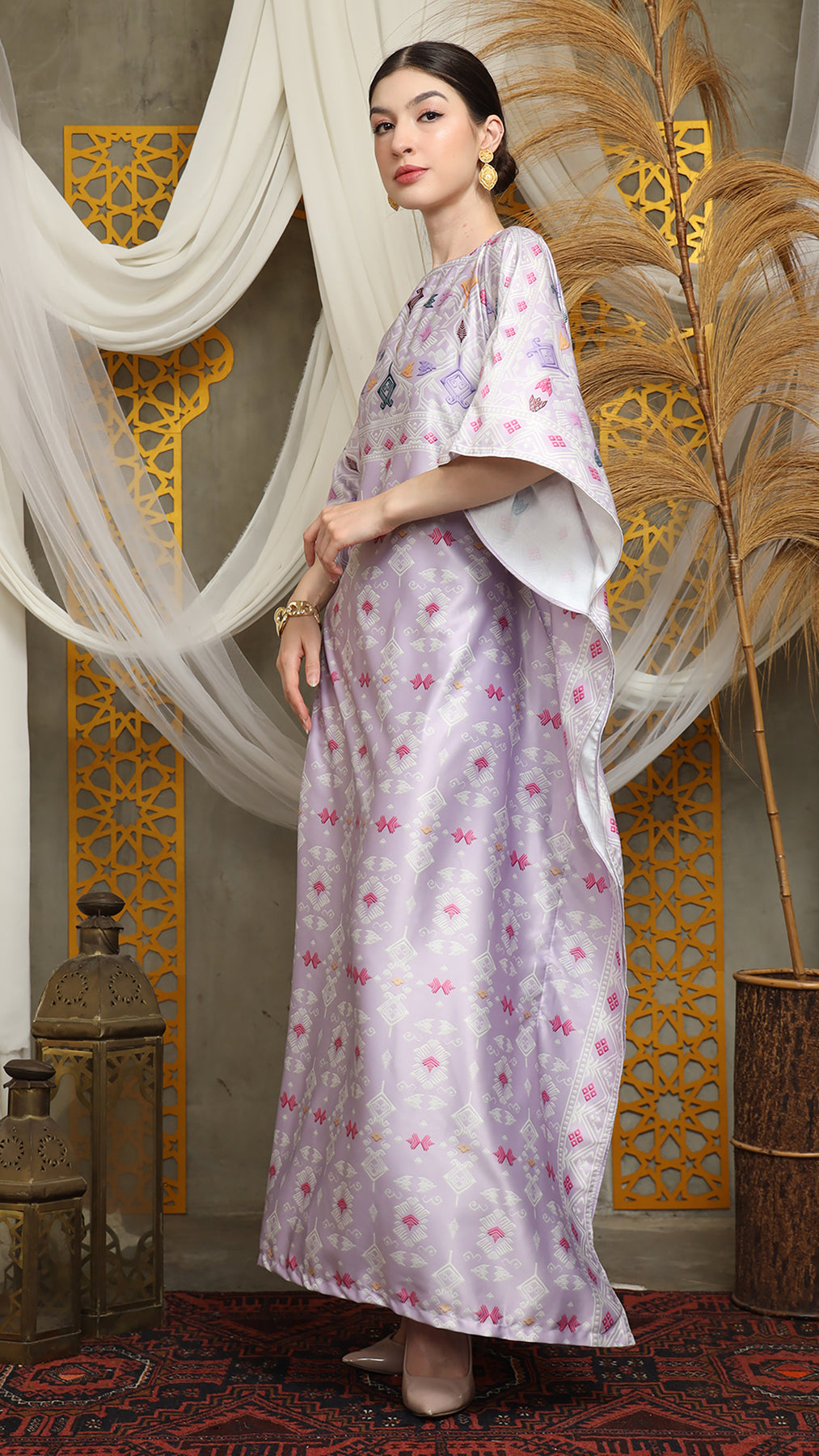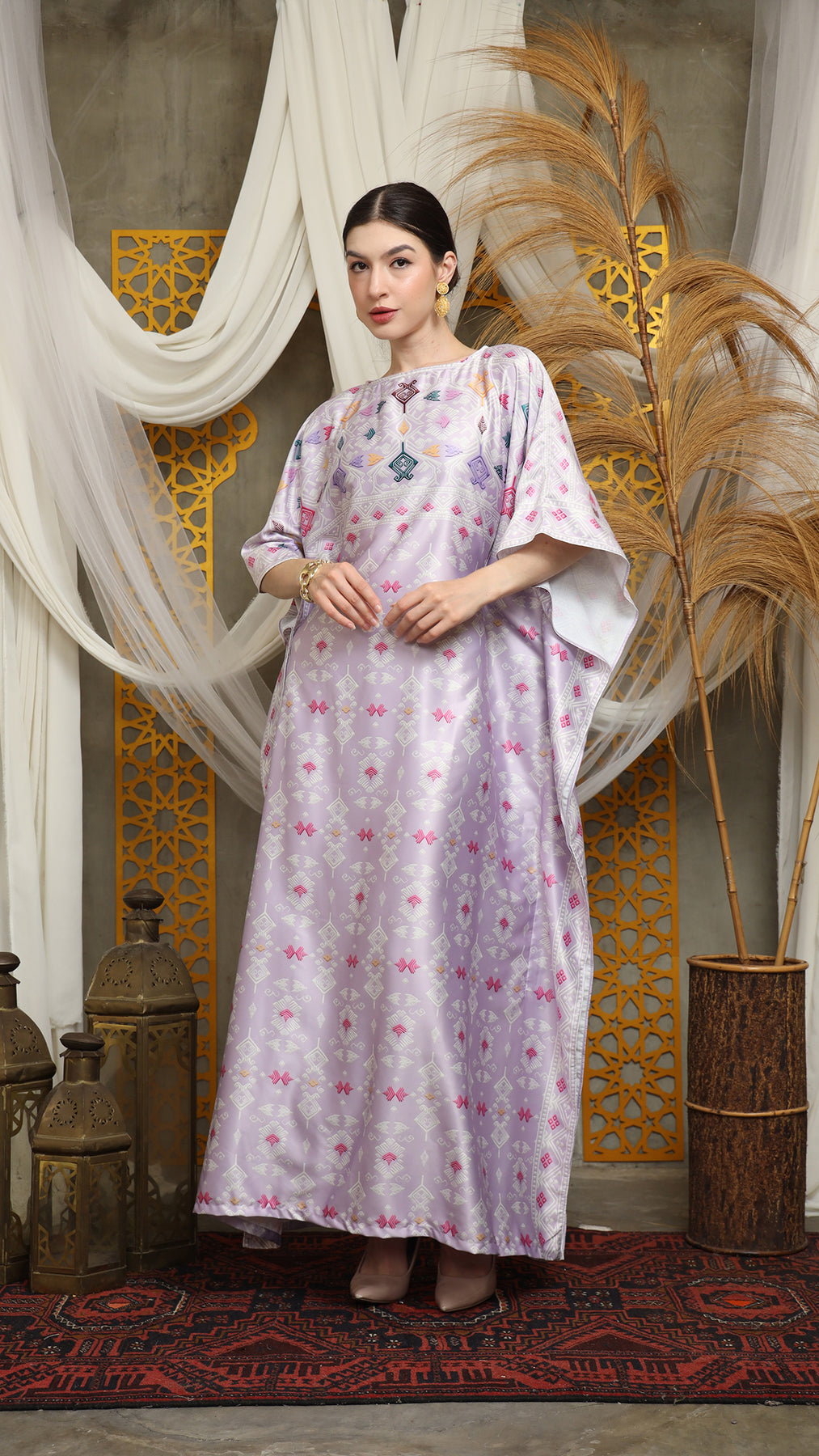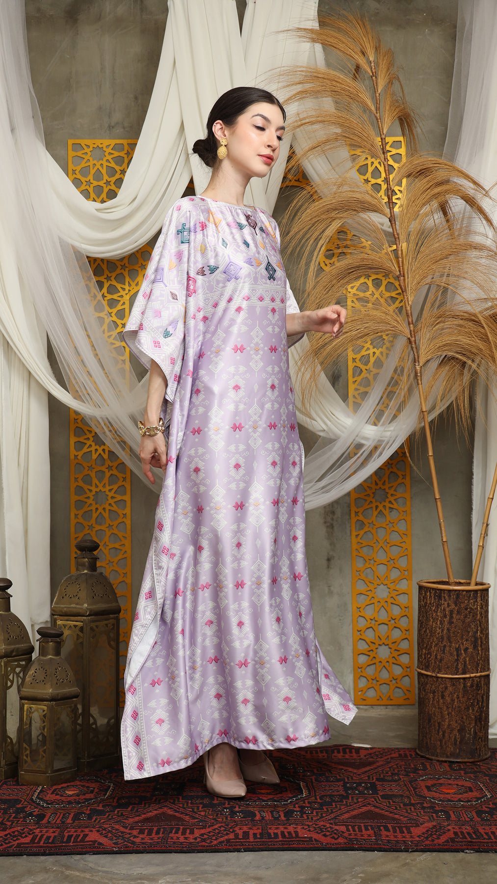 This featured kaftan is a true masterpiece. It offers a flattering fit that enhances your silhouette from every angle. Made from non-transparent fabric, it ensures confidence and comfort, allowing you to move with grace and poise.