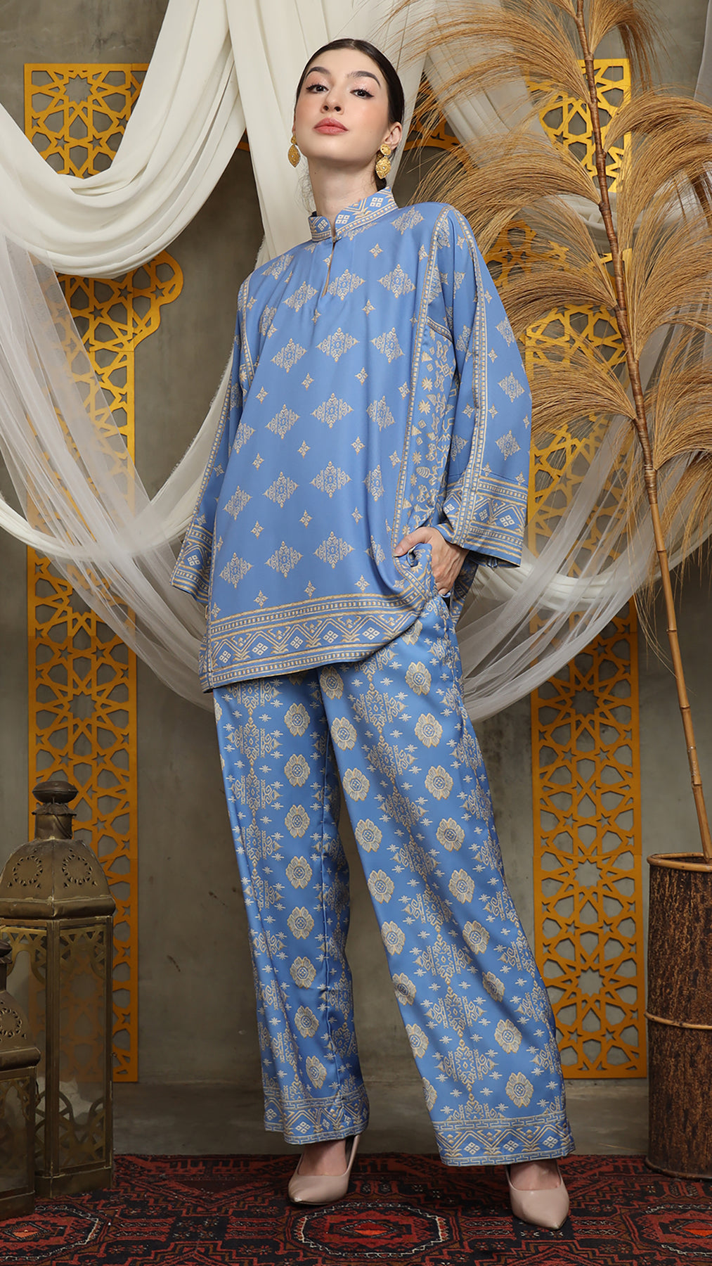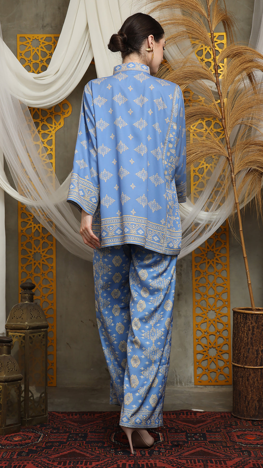 This featured set with pants is a true masterpiece. It offers a flattering fit that enhances your silhouette from every angle. Made from non-transparent fabric, it ensures confidence and comfort, allowing you to move with grace and poise.