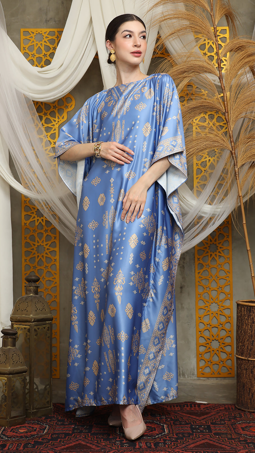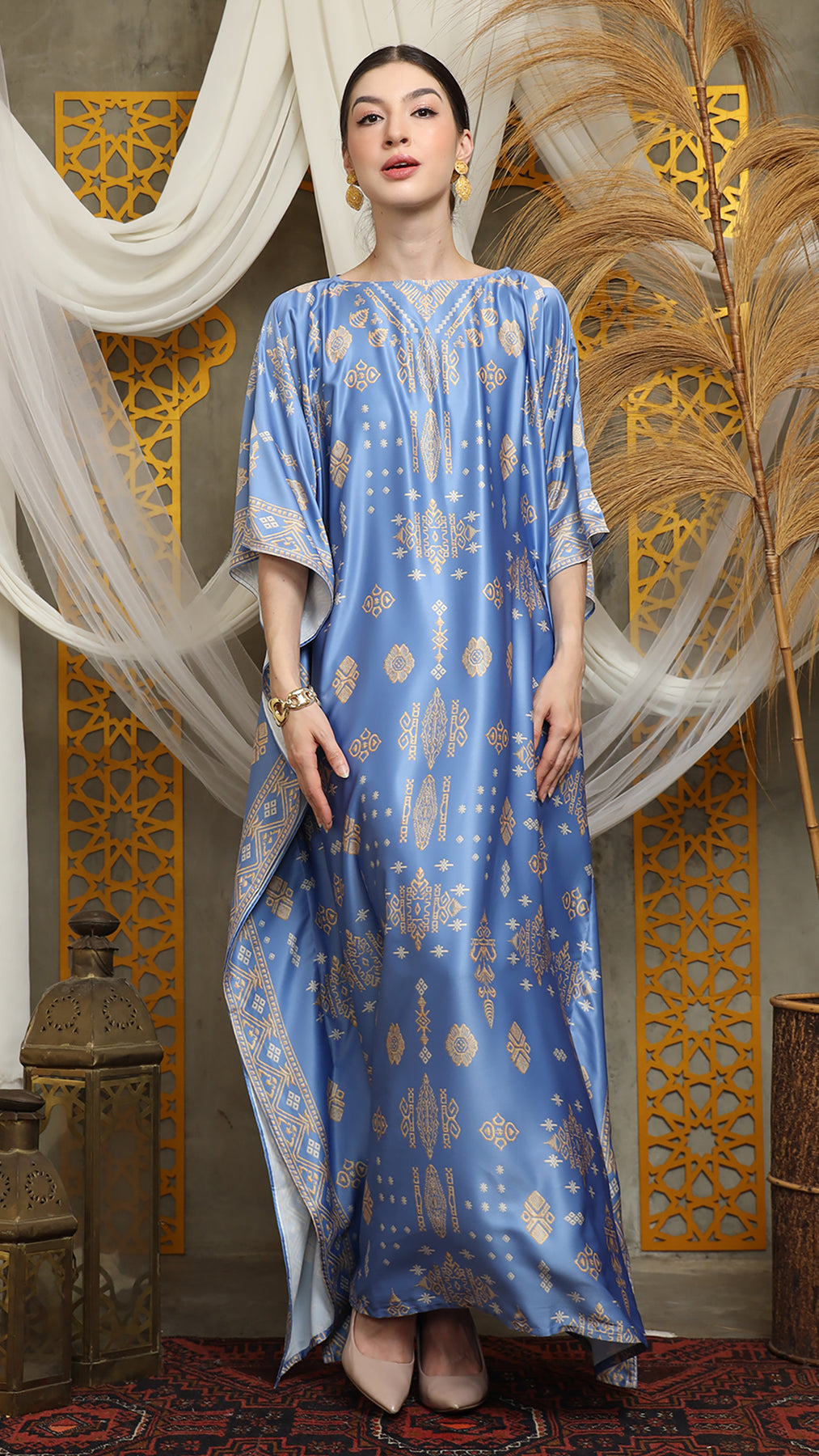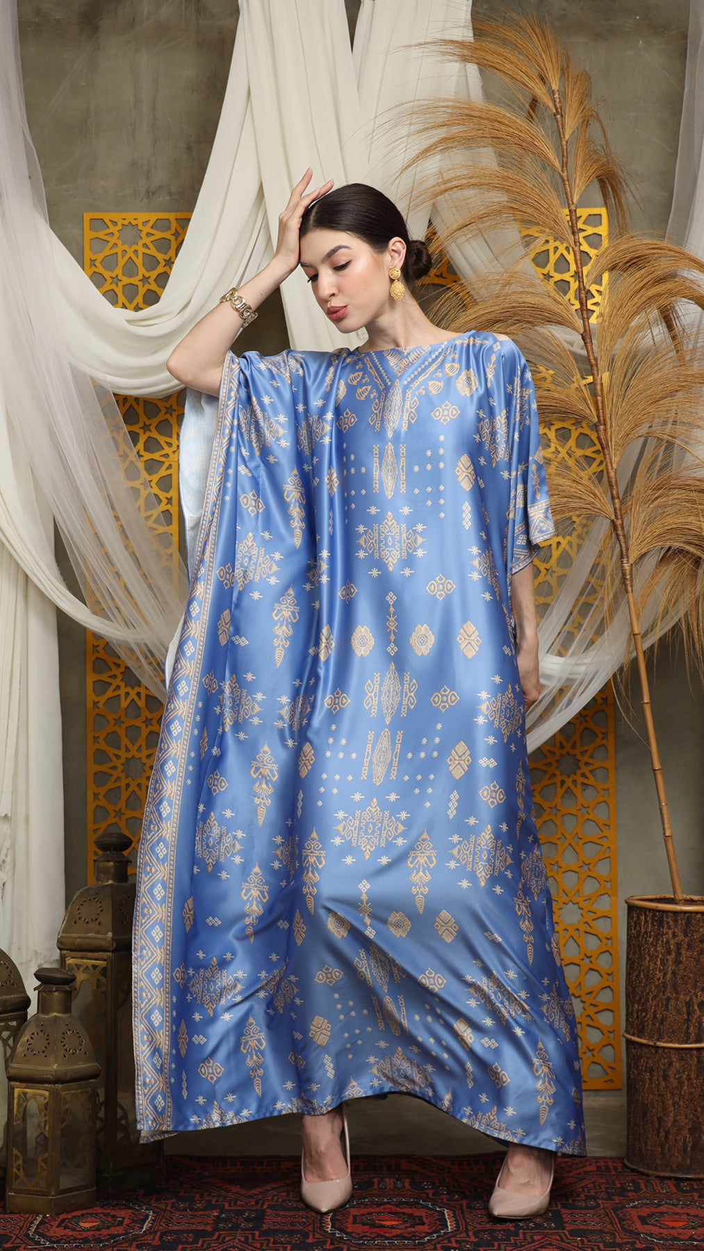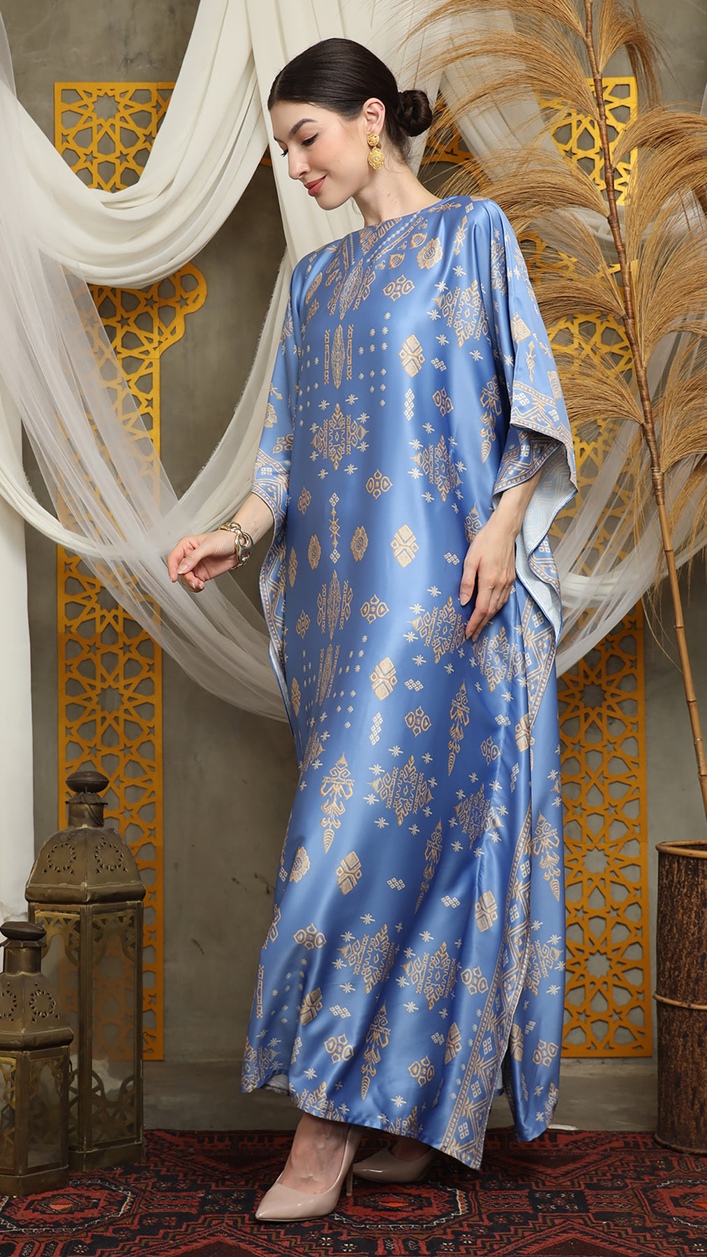 This featured kaftan is a true masterpiece. It offers a flattering fit that enhances your silhouette from every angle. Made from non-transparent fabric, it ensures confidence and comfort, allowing you to move with grace and poise.
