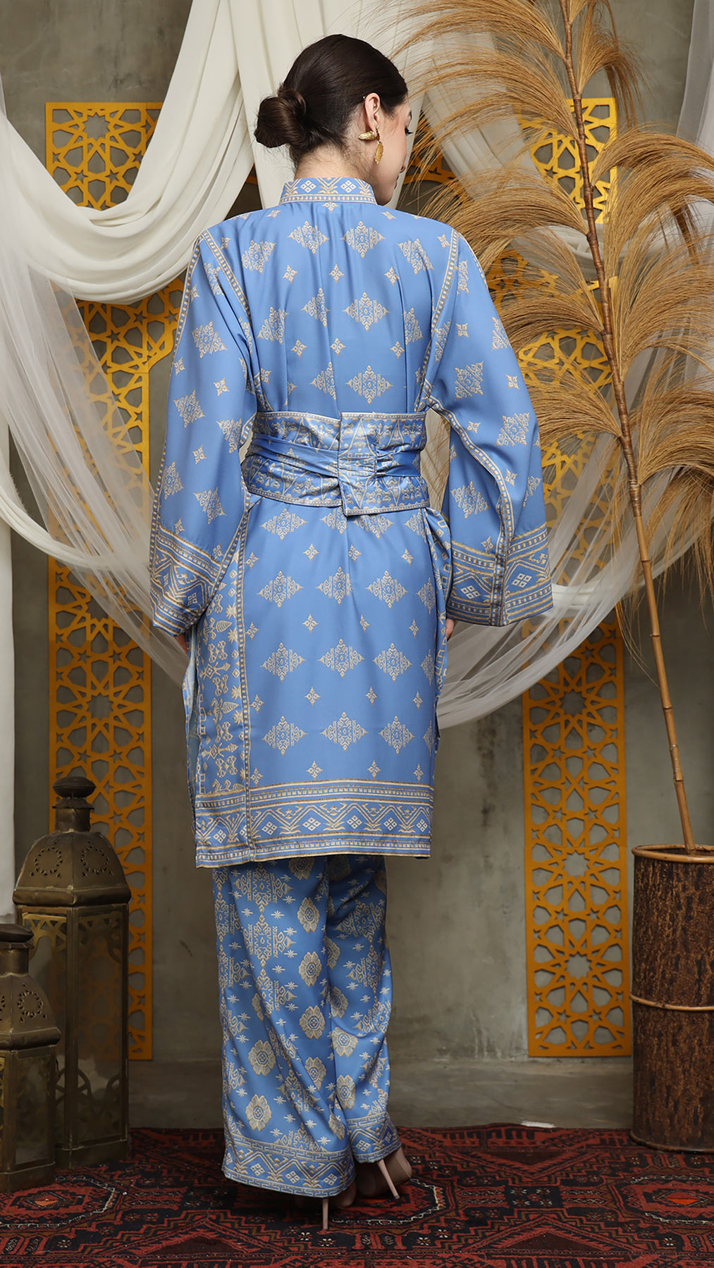 This featured set with pants is a true masterpiece. It offers a flattering fit that enhances your silhouette from every angle. Made from non-transparent fabric, it ensures confidence and comfort, allowing you to move with grace and poise.