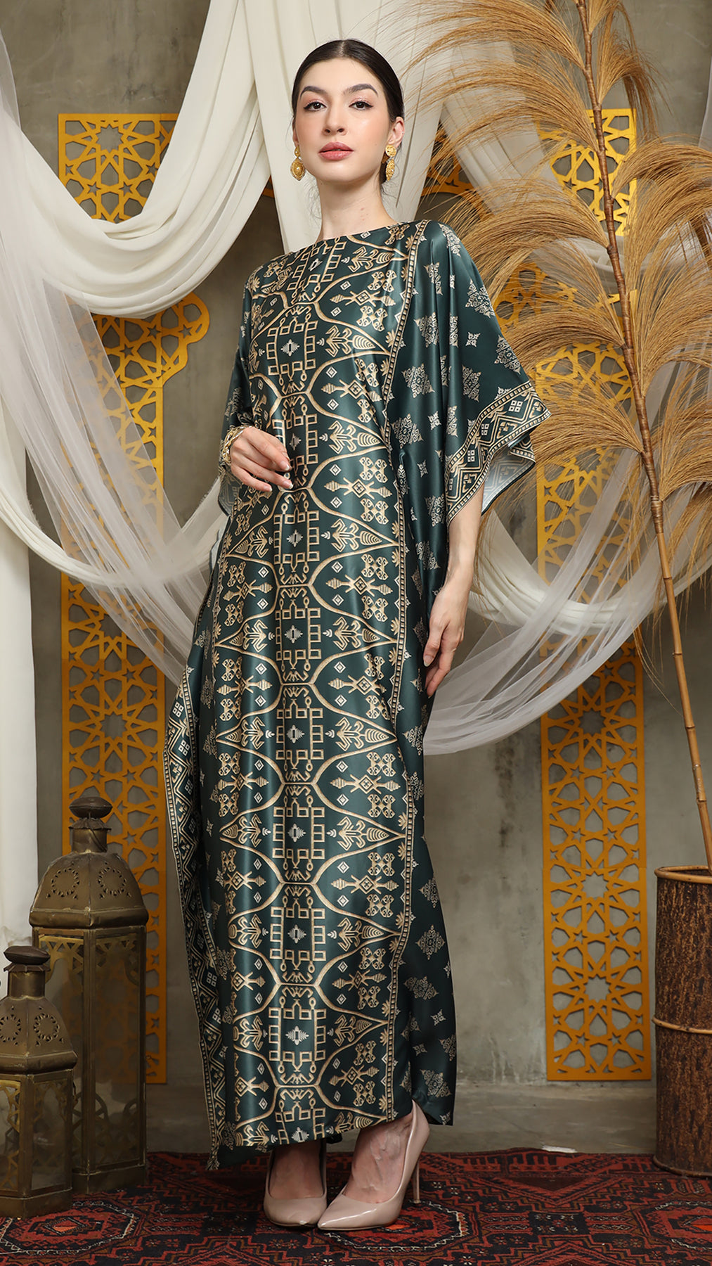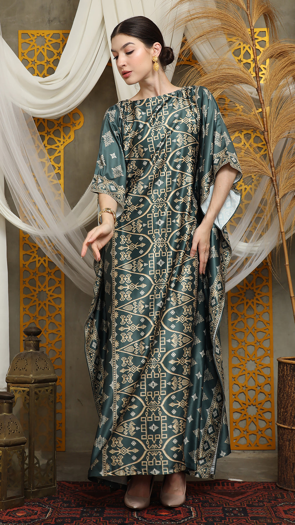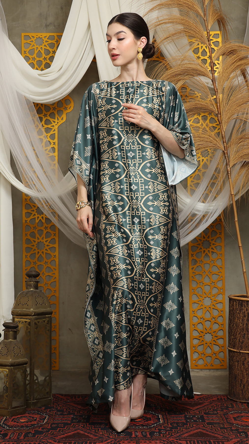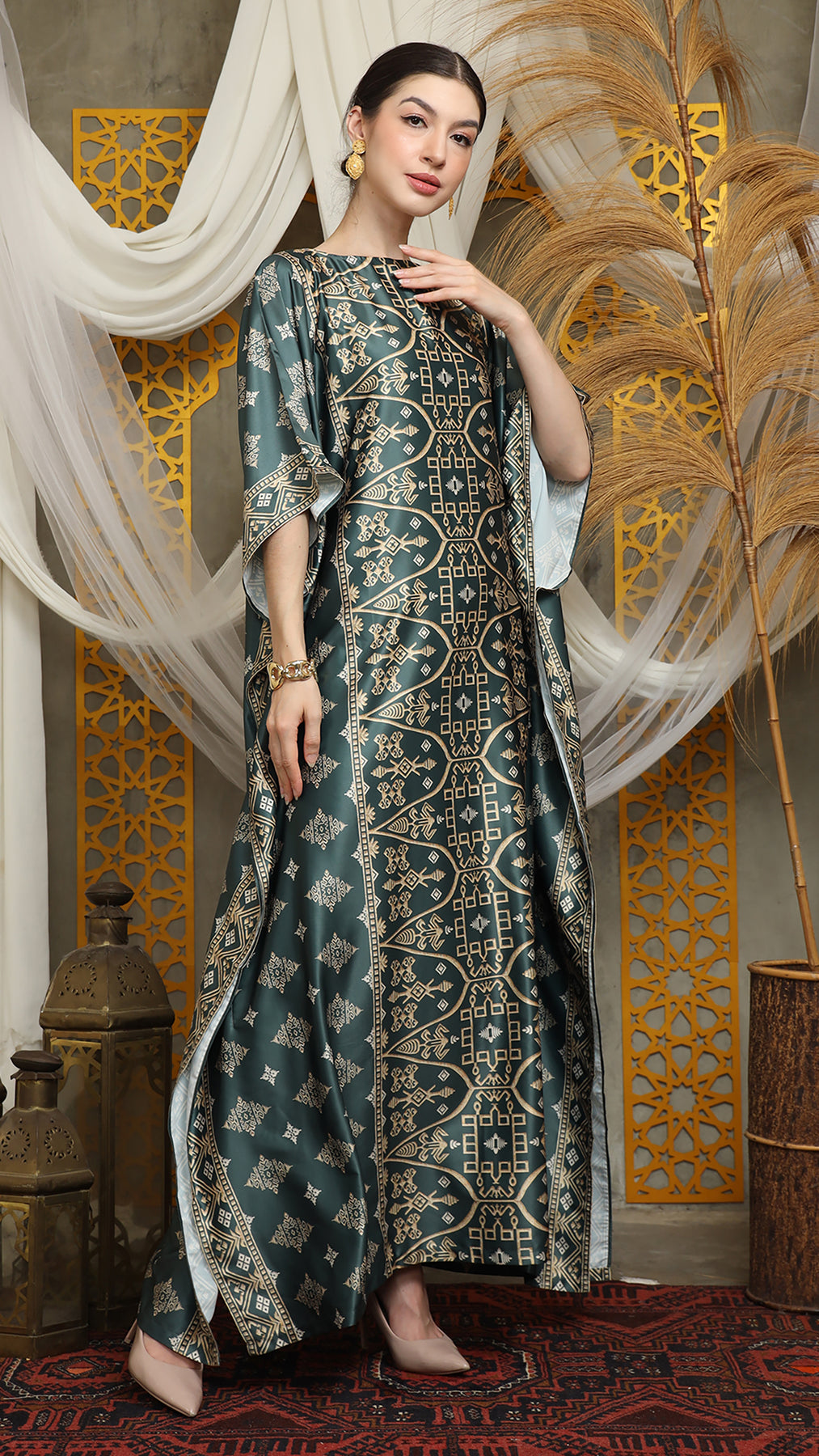Royal Green Gold Bali Short Kaftan