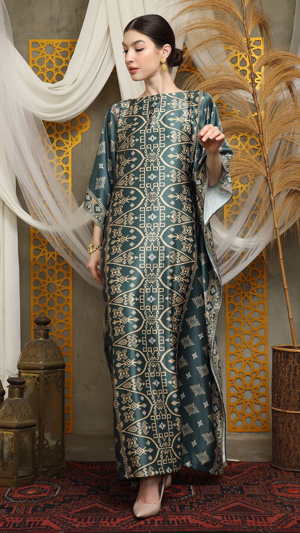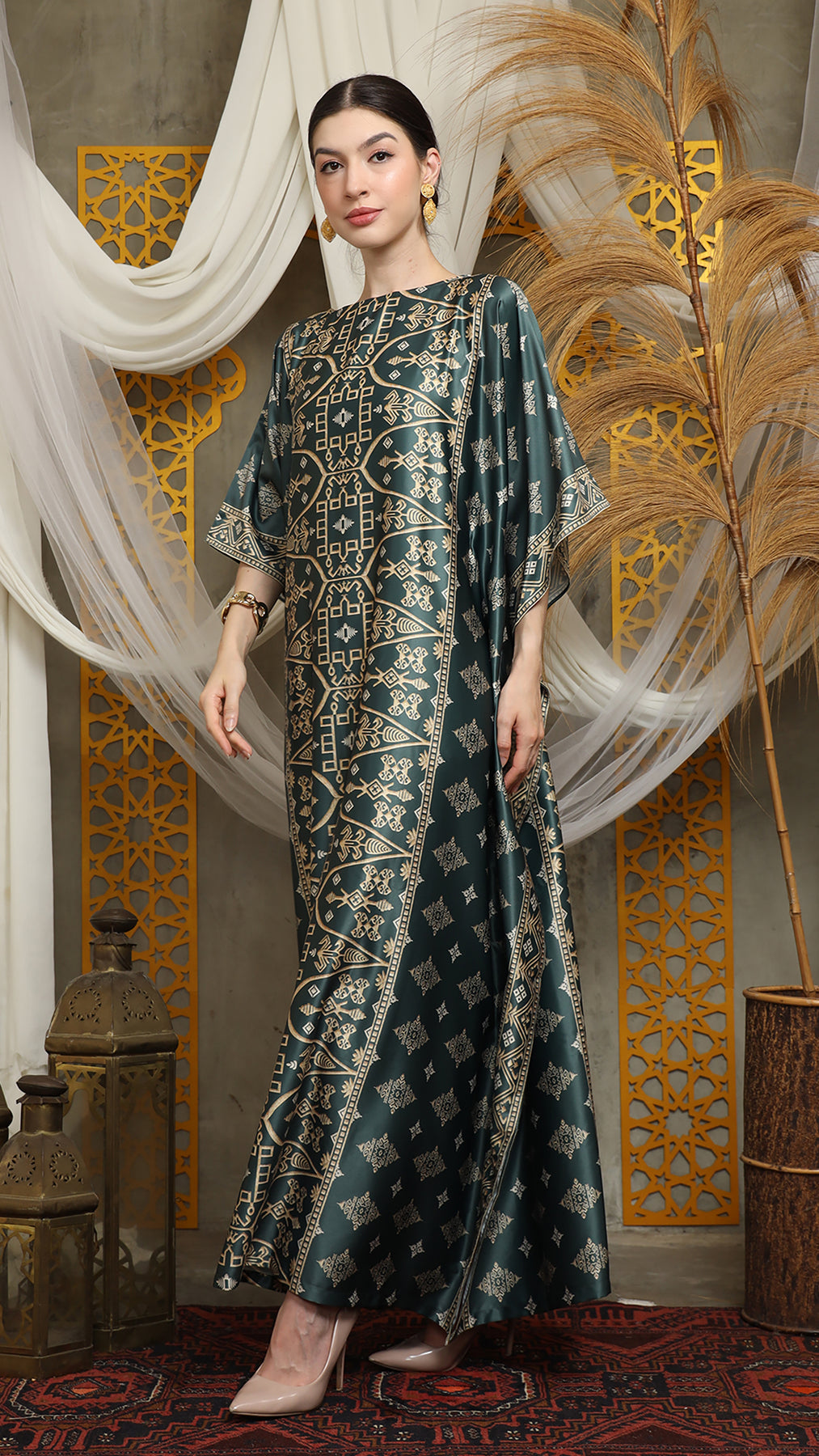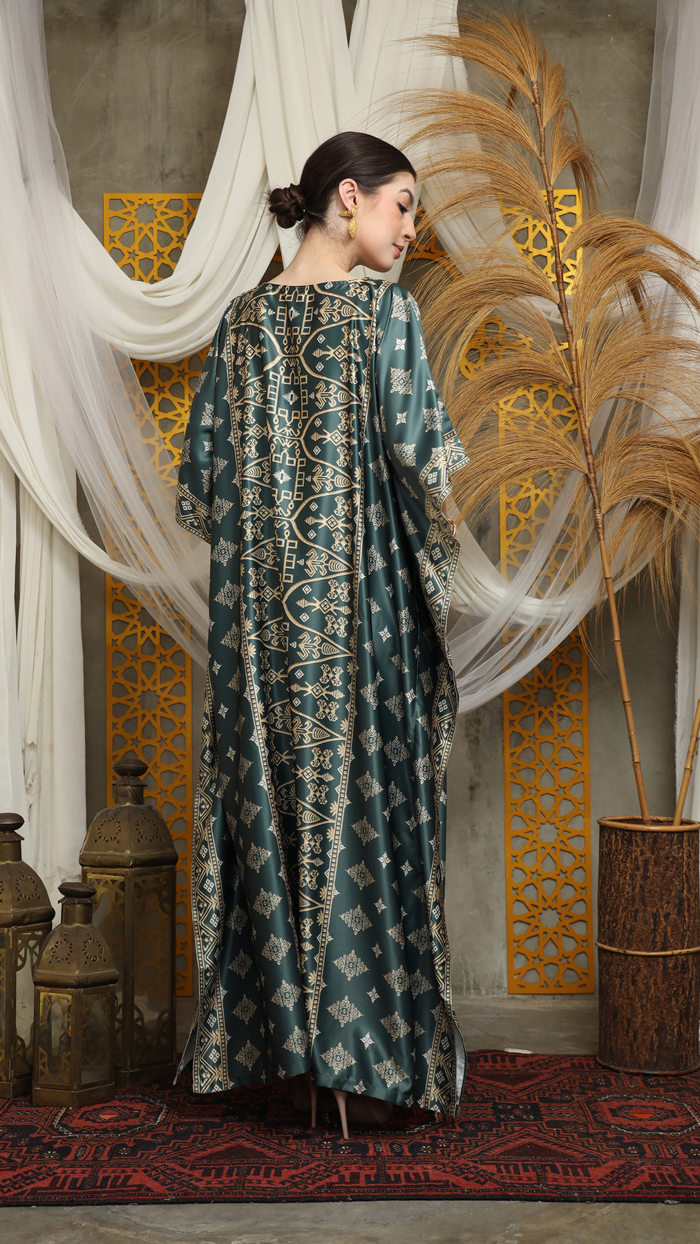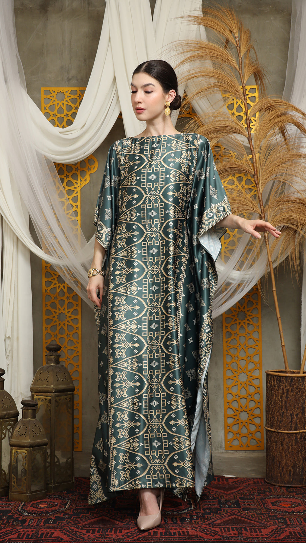 Royal Green Gold Bali Short Kaftan