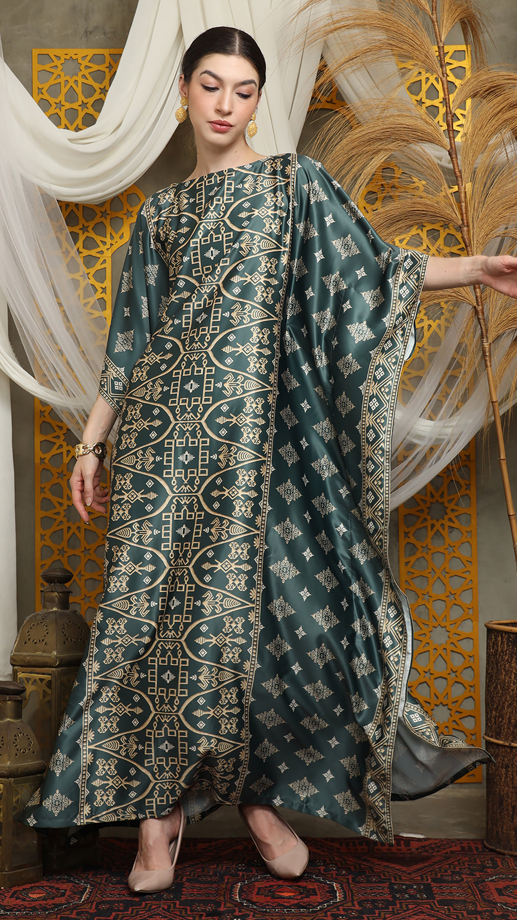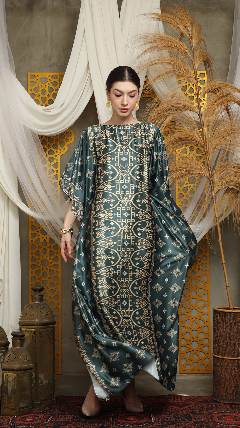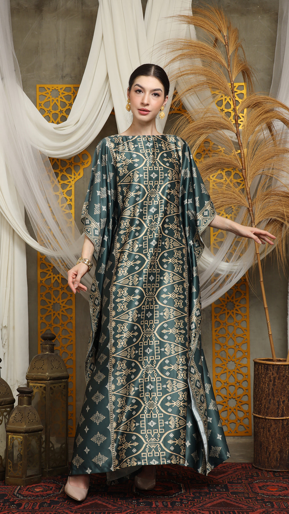This featured kaftan is a true masterpiece. It offers a flattering fit that enhances your silhouette from every angle. Made from non-transparent fabric, it ensures confidence and comfort, allowing you to move with grace and poise.