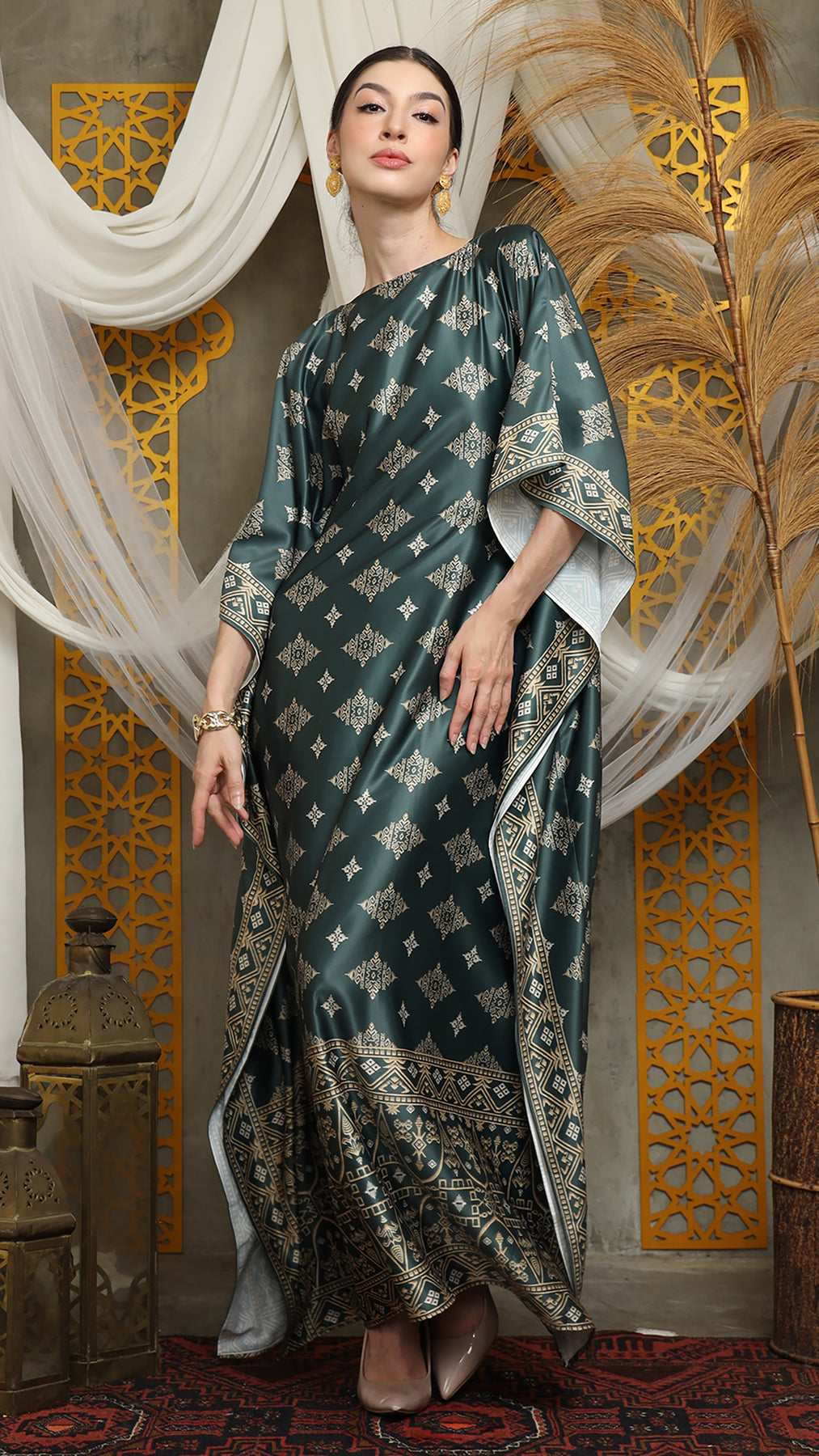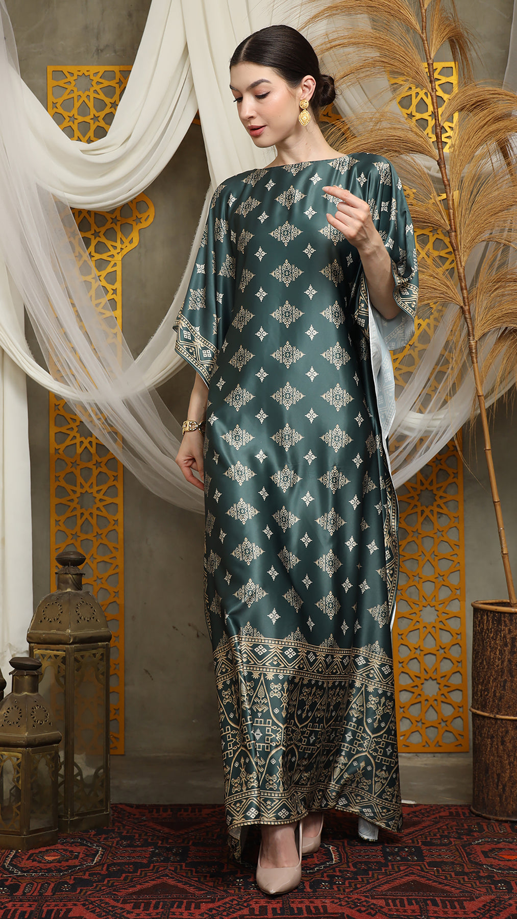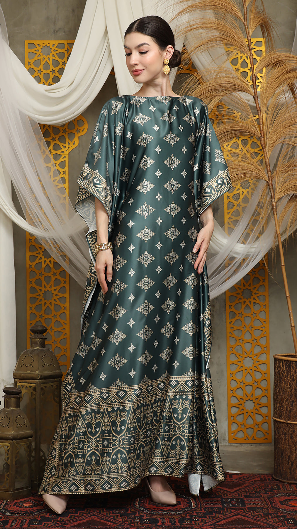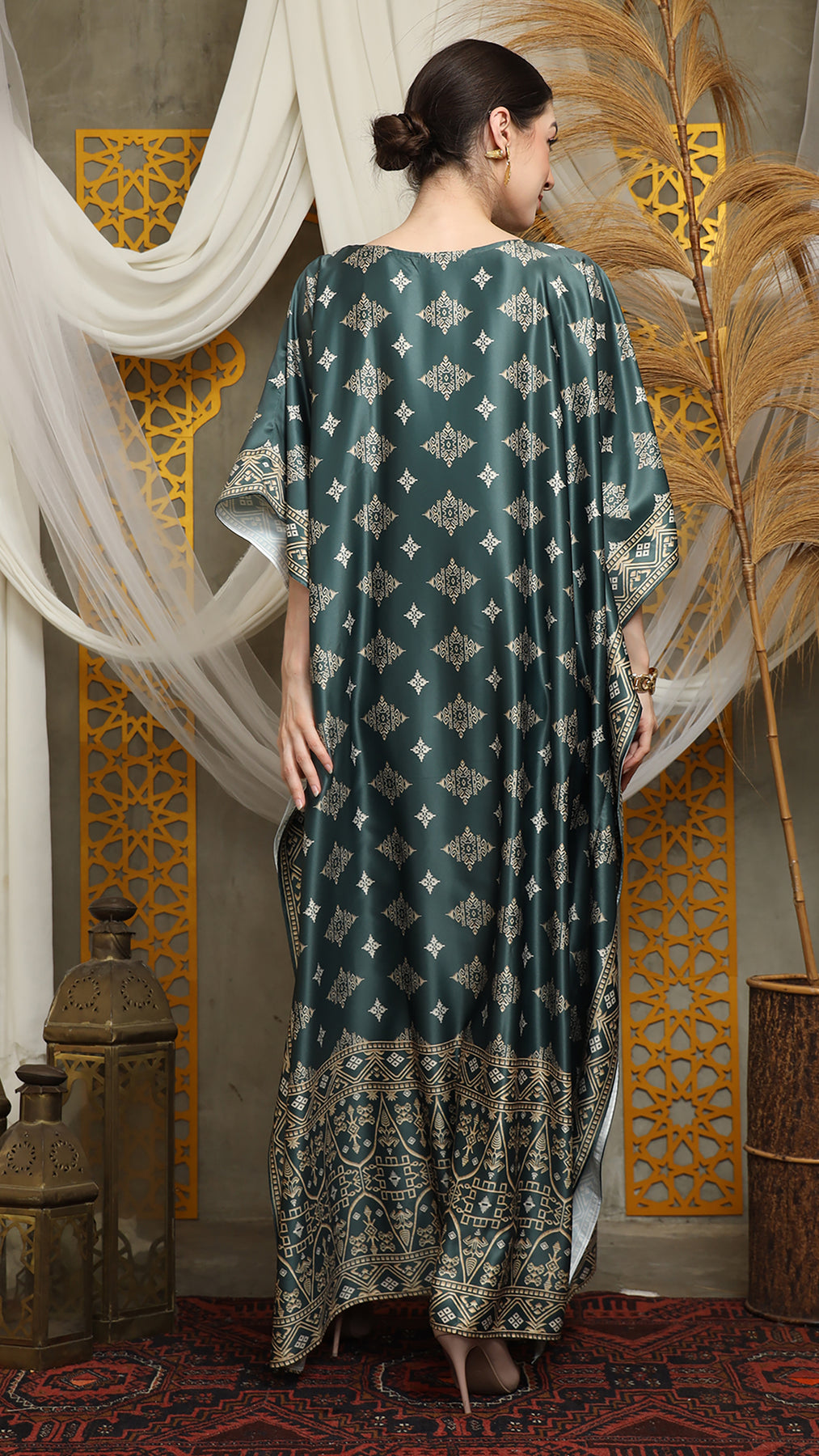 This featured kaftan is a true masterpiece. It offers a flattering fit that enhances your silhouette from every angle. Made from non-transparent fabric, it ensures confidence and comfort, allowing you to move with grace and poise.