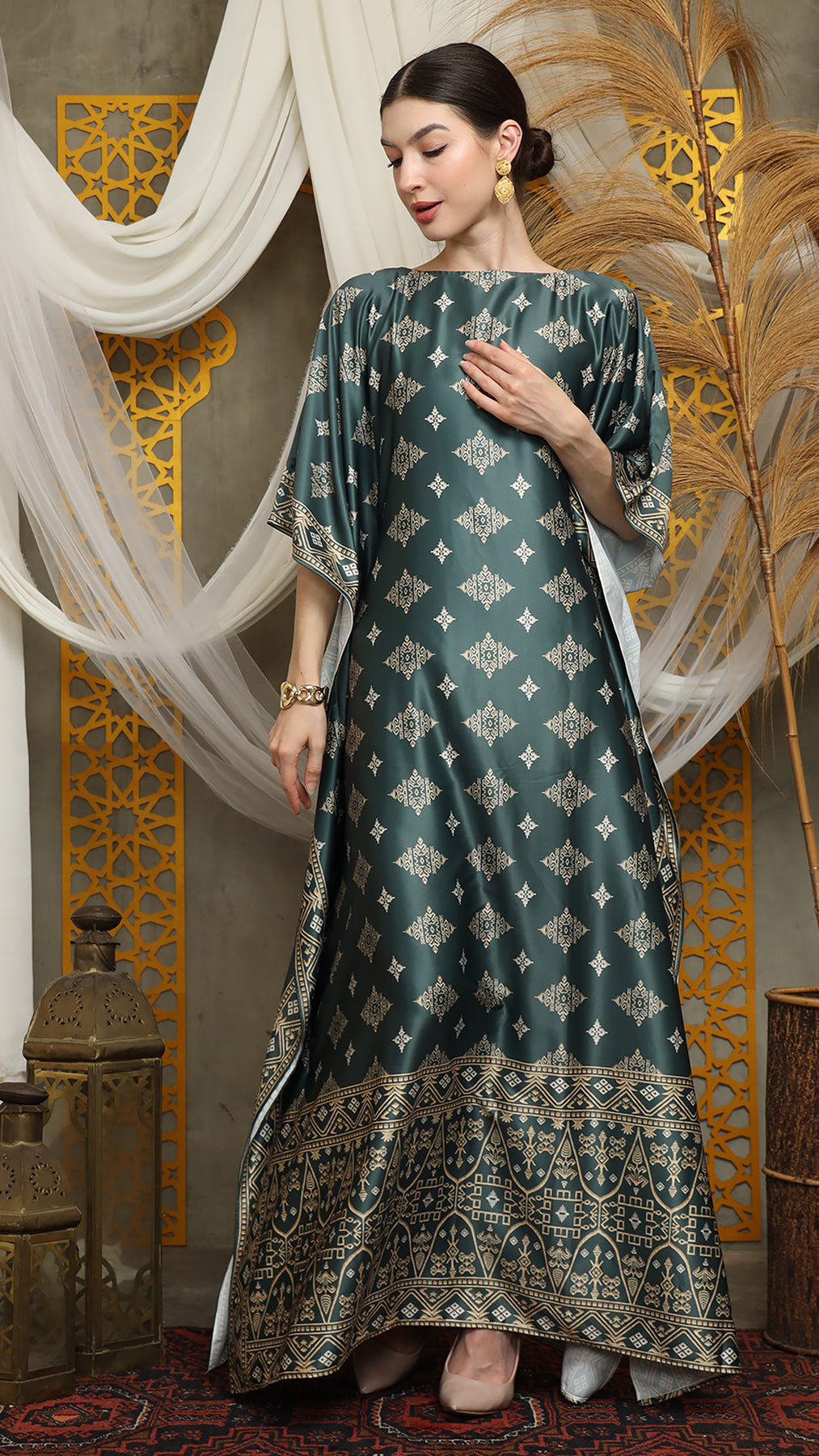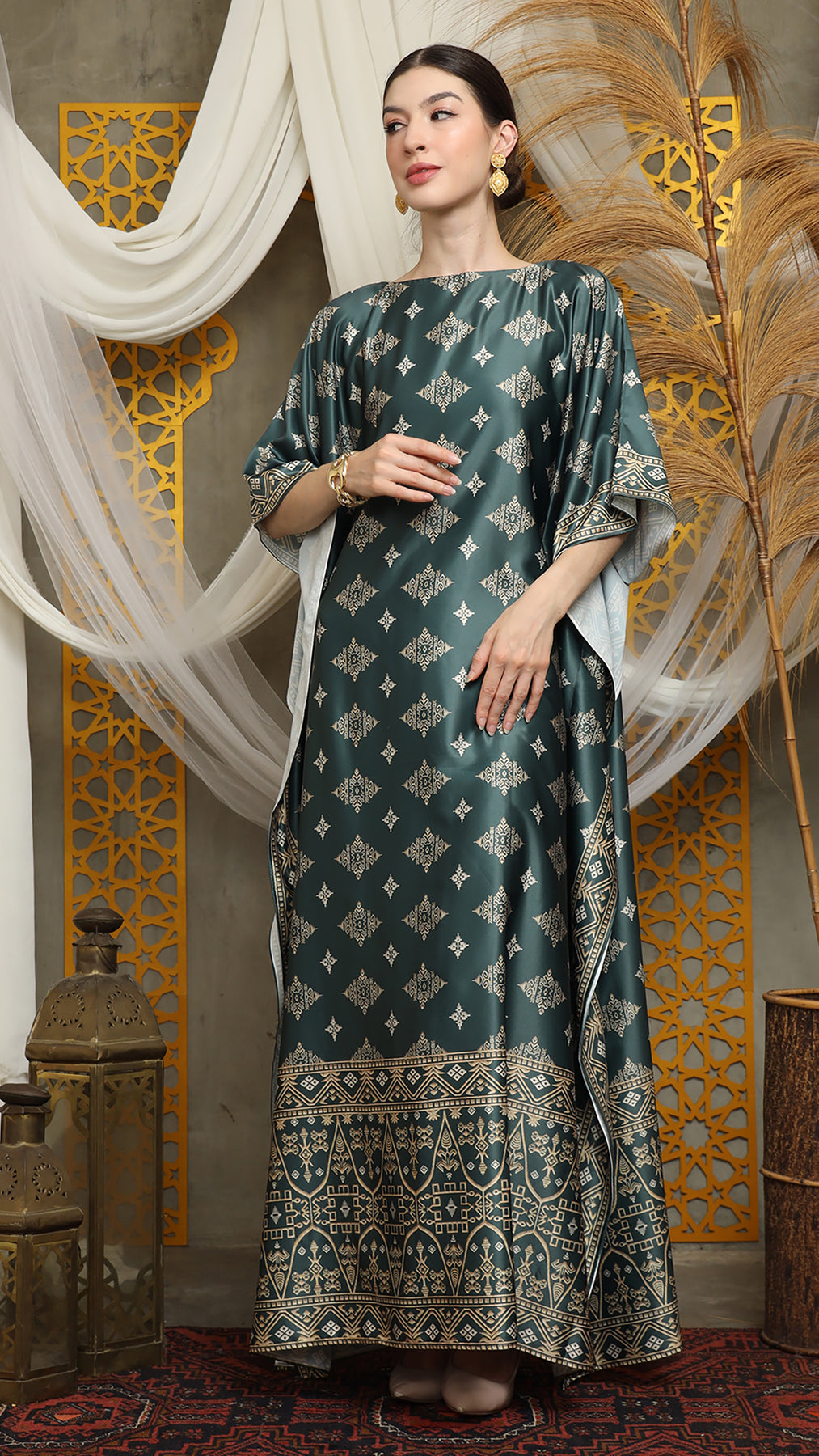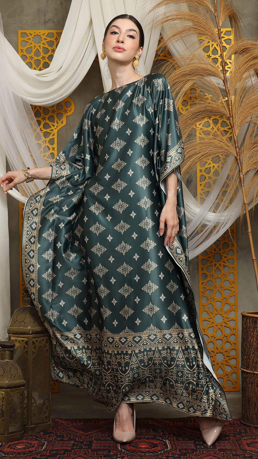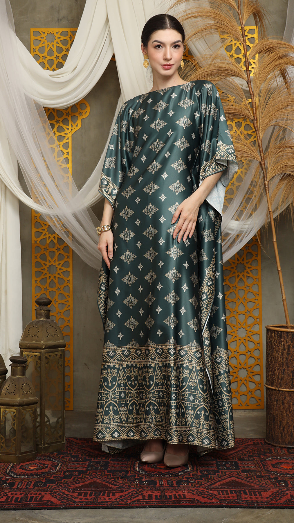 This featured kaftan is a true masterpiece. It offers a flattering fit that enhances your silhouette from every angle. Made from non-transparent fabric, it ensures confidence and comfort, allowing you to move with grace and poise.