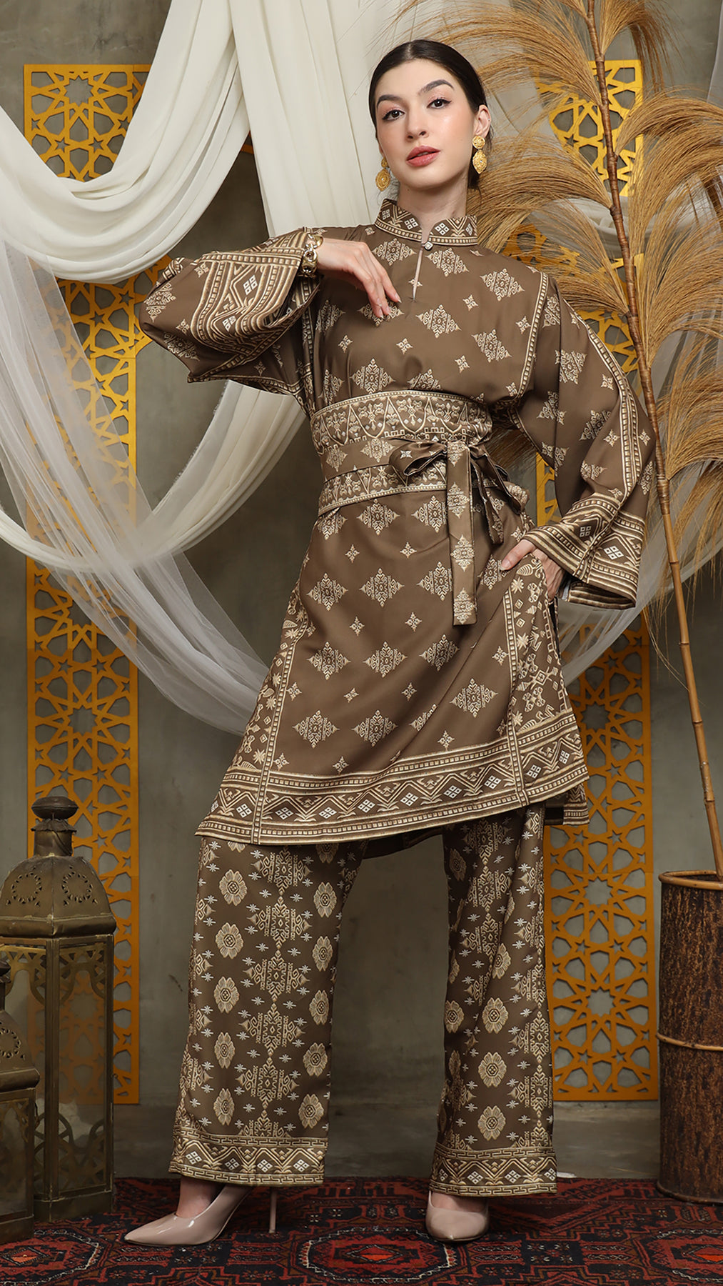 This featured set with pants is a true masterpiece. It offers a flattering fit that enhances your silhouette from every angle. Made from non-transparent fabric, it ensures confidence and comfort, allowing you to move with grace and poise.