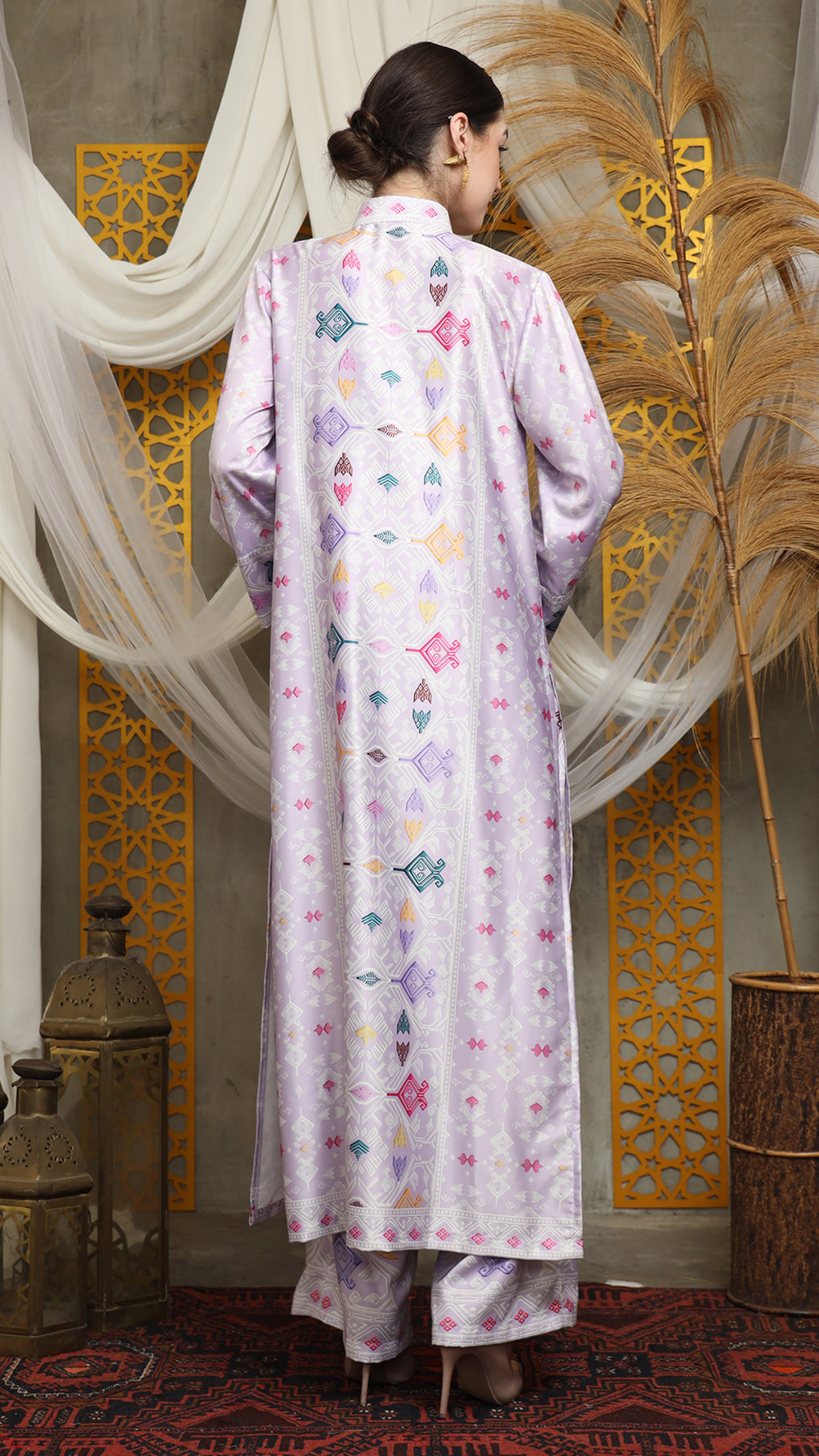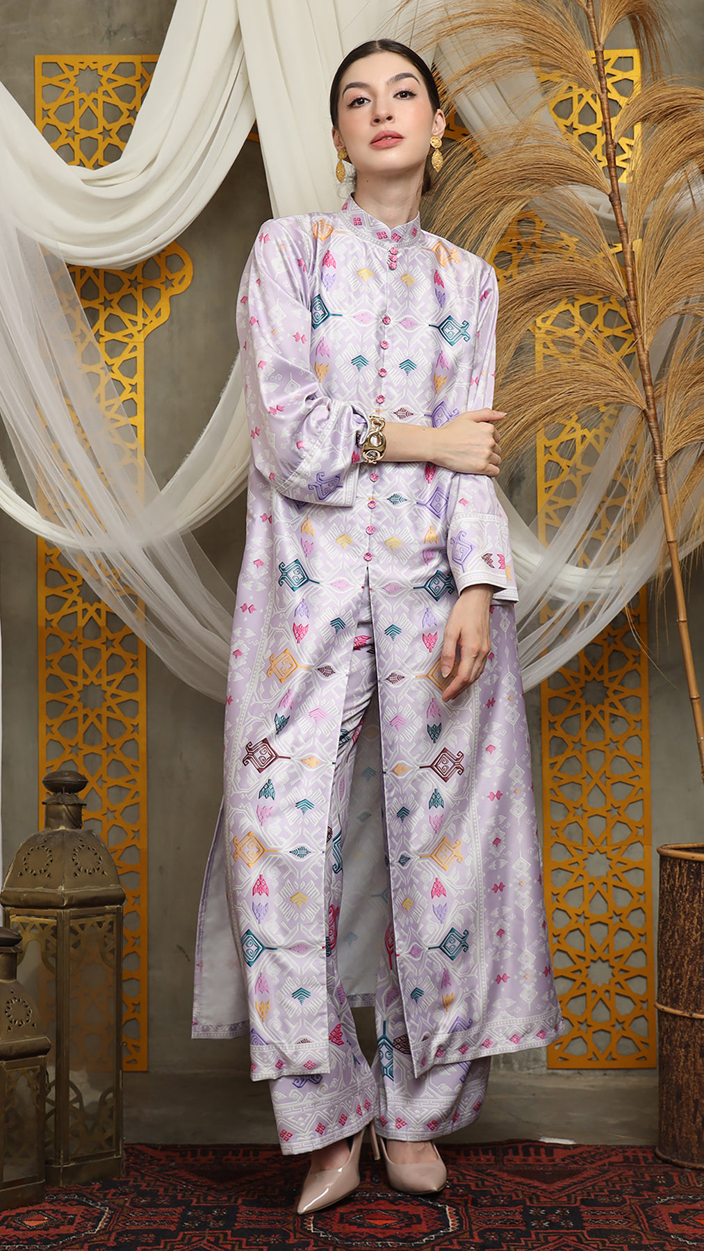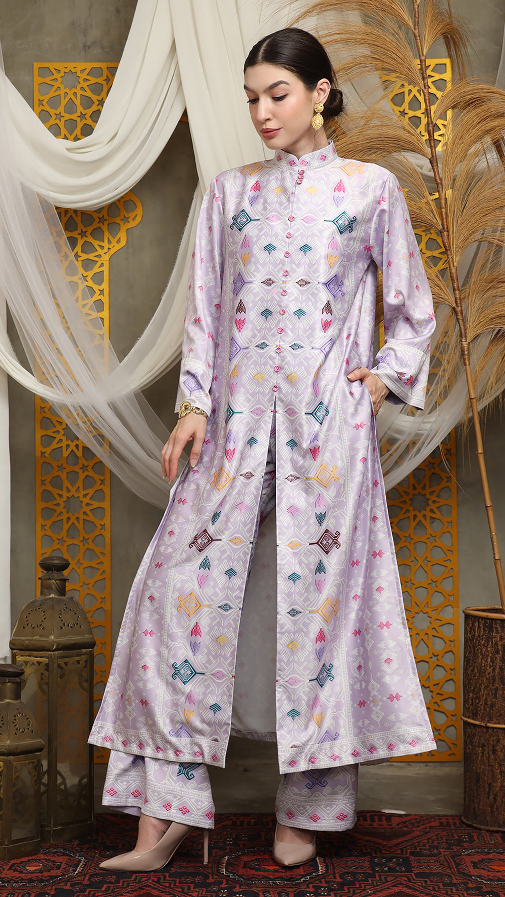 Purple Songket Long Tunic Pants Set