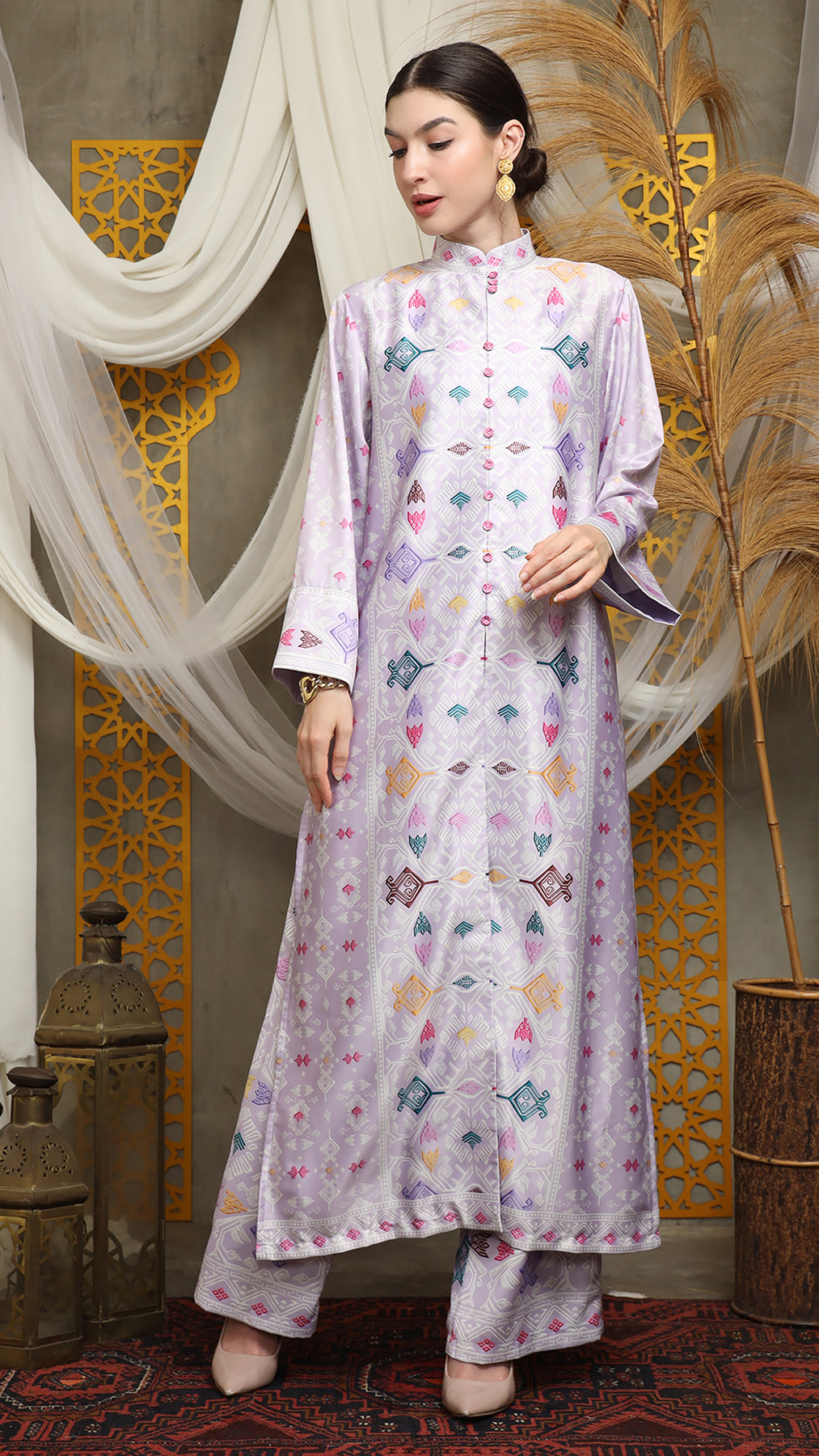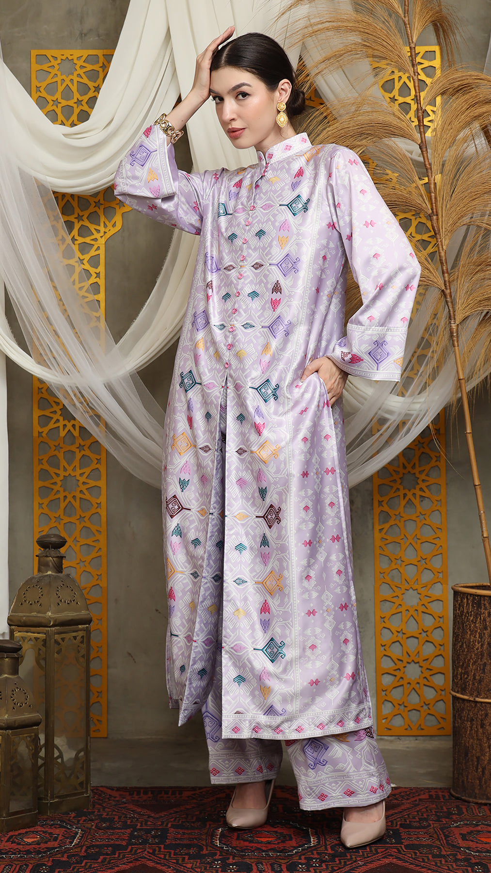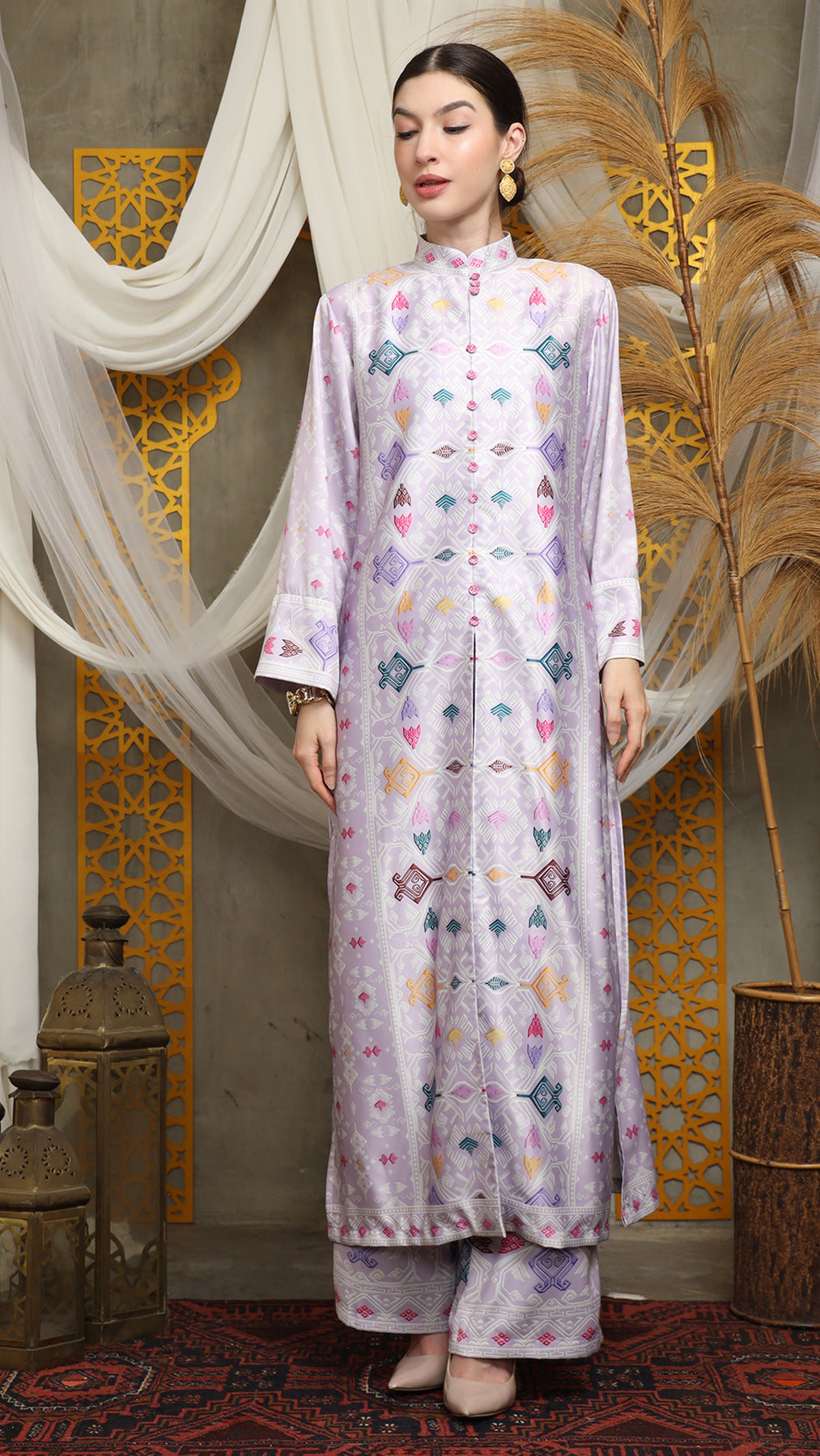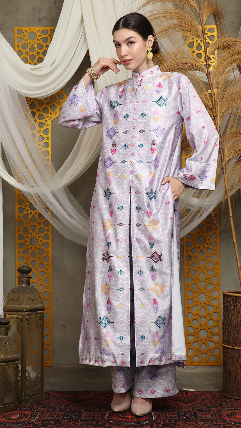 Purple Songket Long Tunic Pants Set