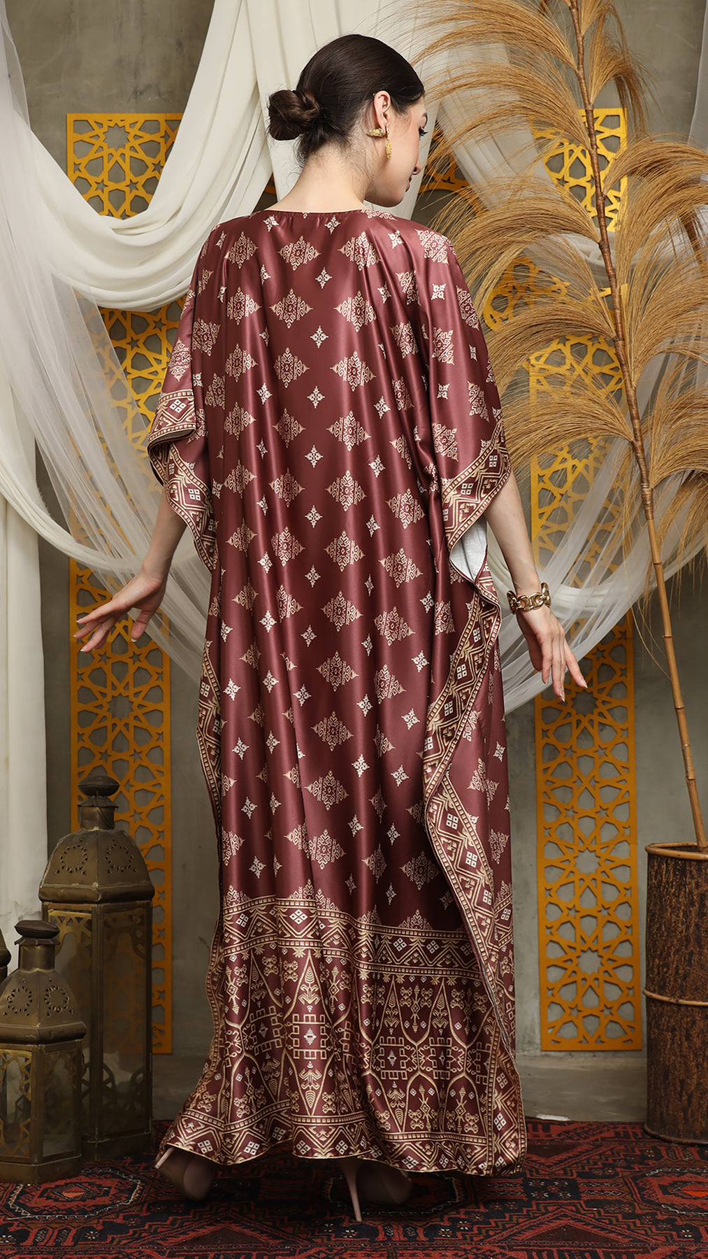 This featured kaftan is a true masterpiece. It offers a flattering fit that enhances your silhouette from every angle. Made from non-transparent fabric, it ensures confidence and comfort, allowing you to move with grace and poise.