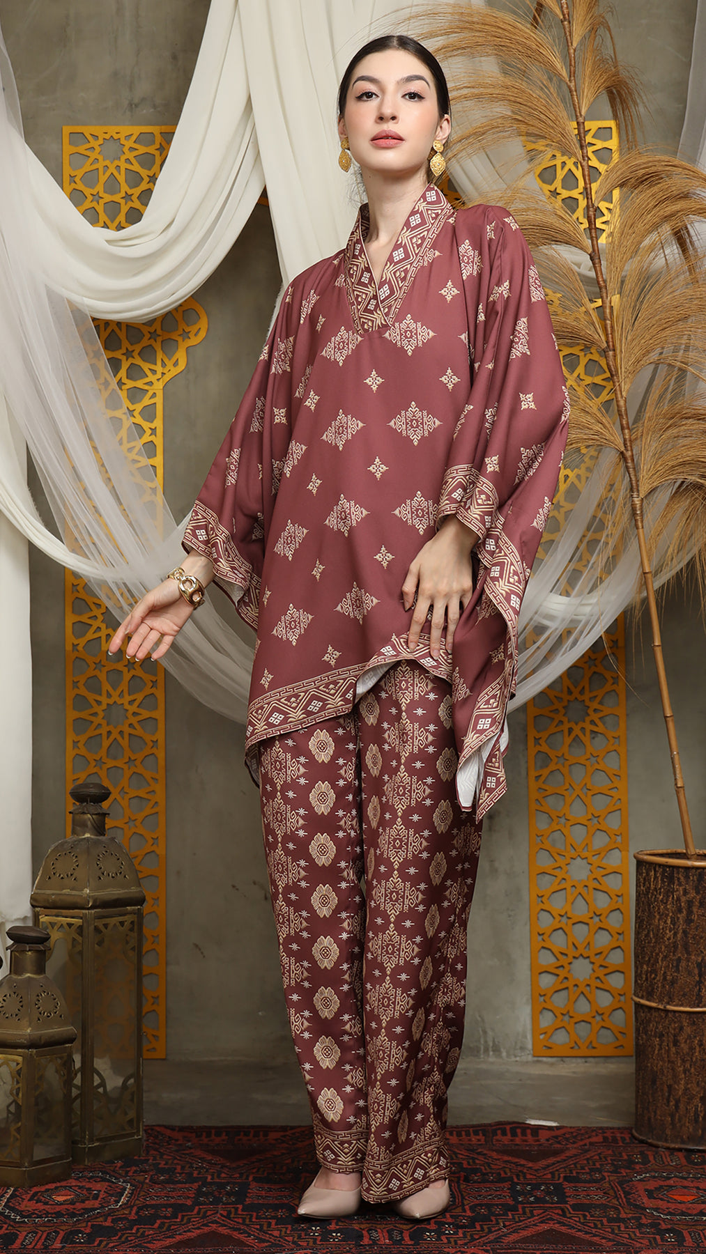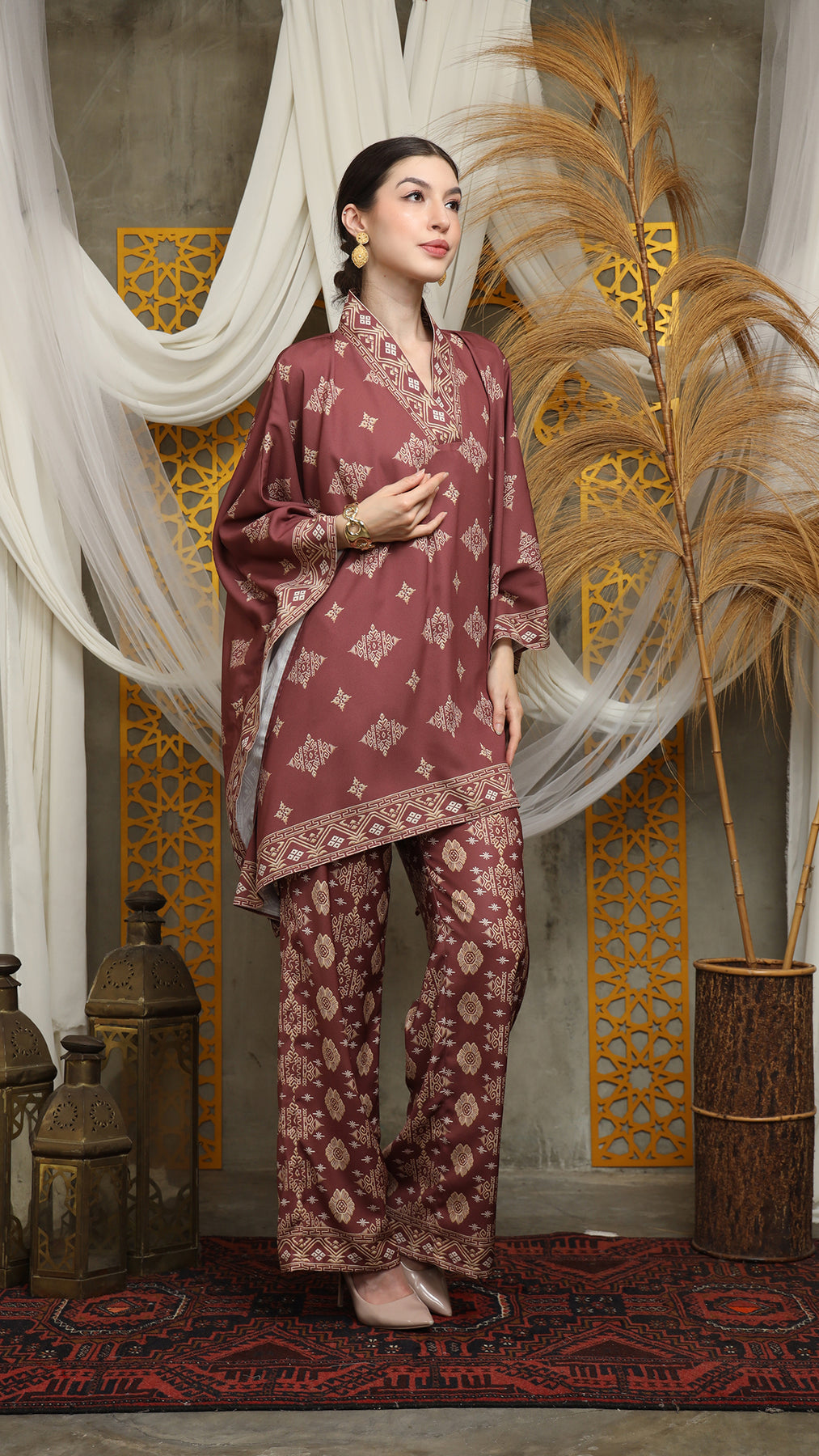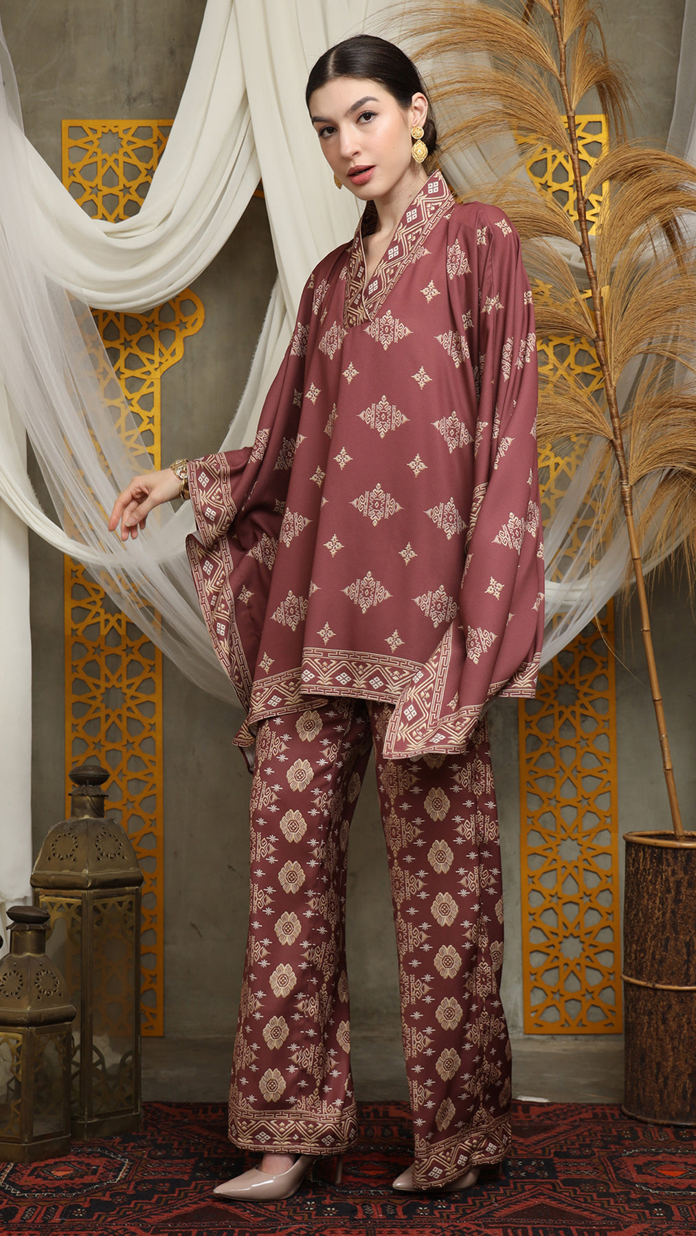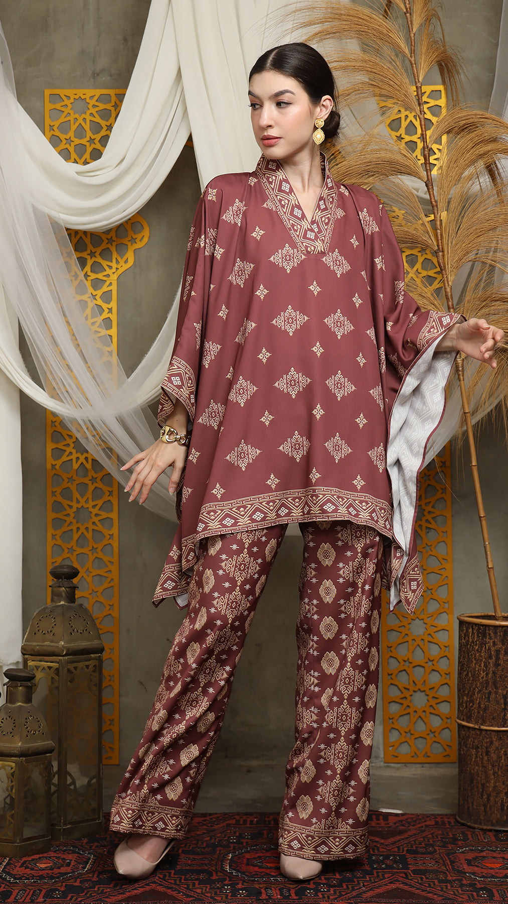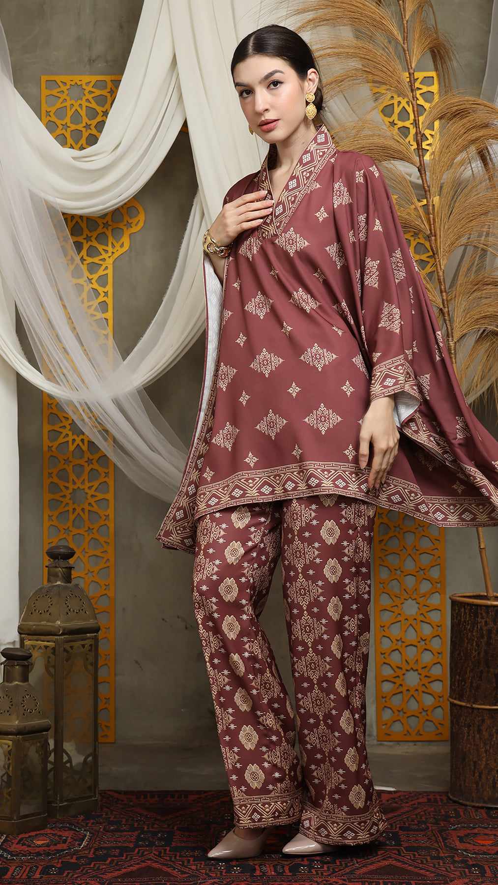 Terracota Gold Vneck Bali Pants Set