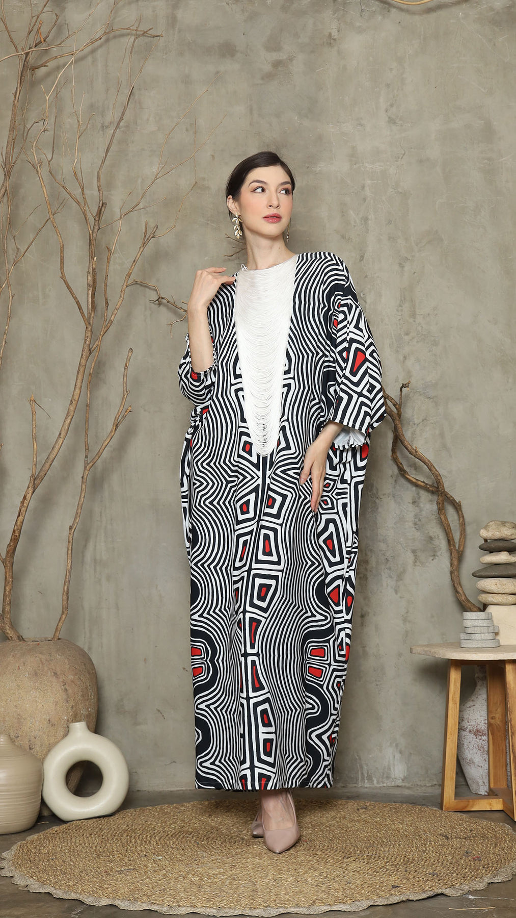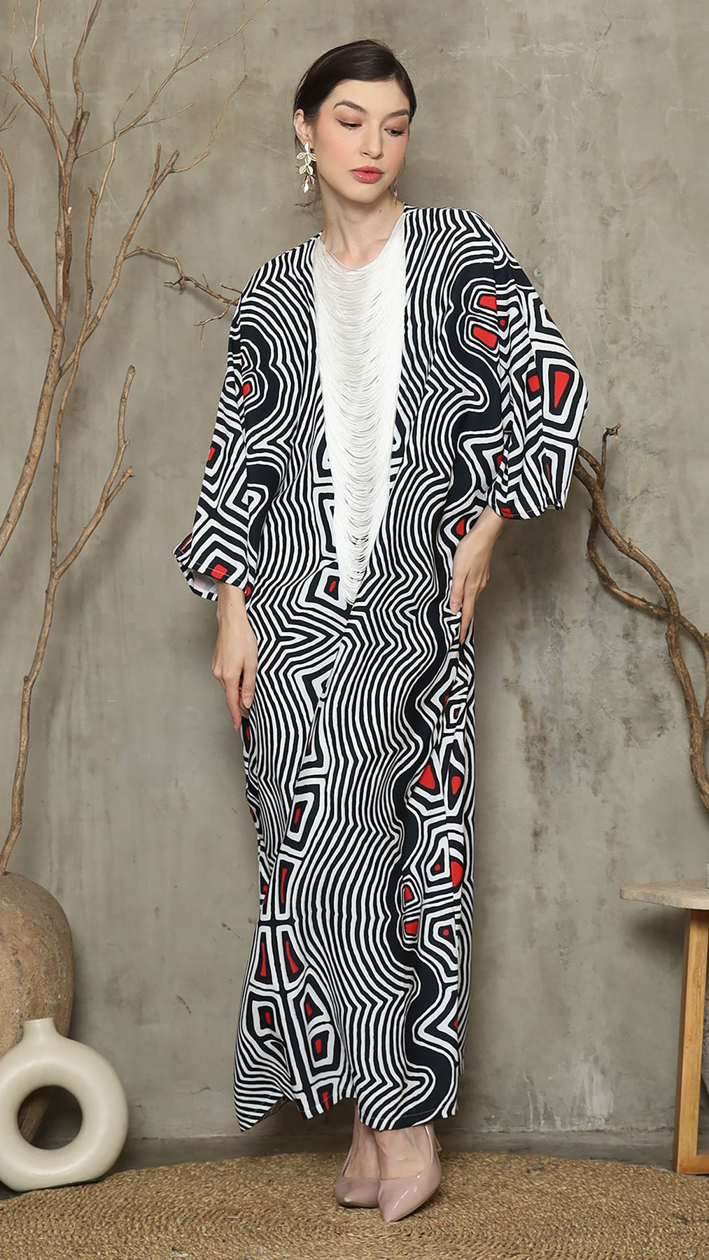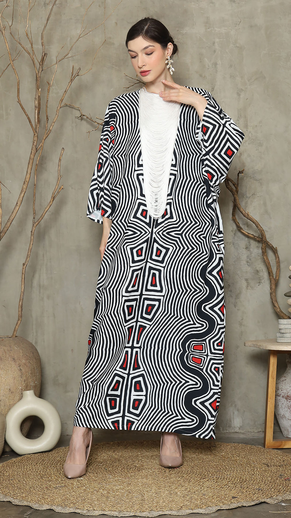 Bw Abstract Necklace Fringe Long Kaftan