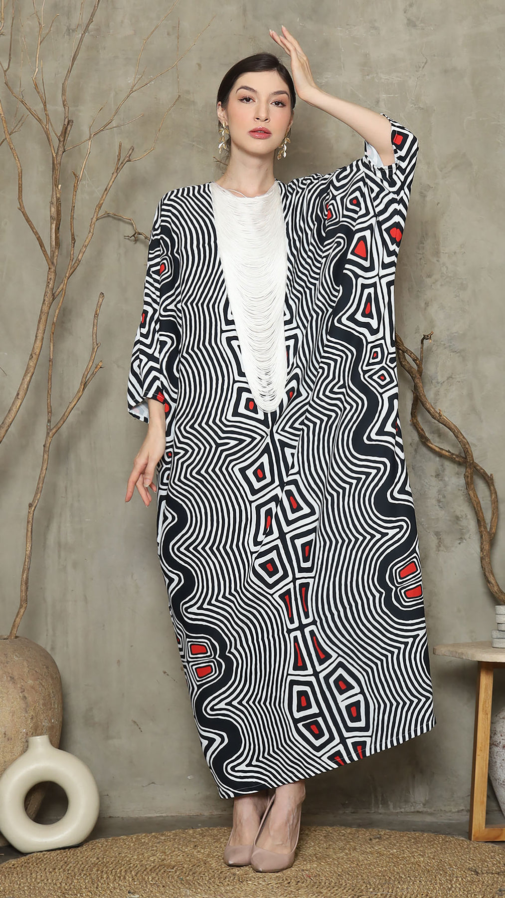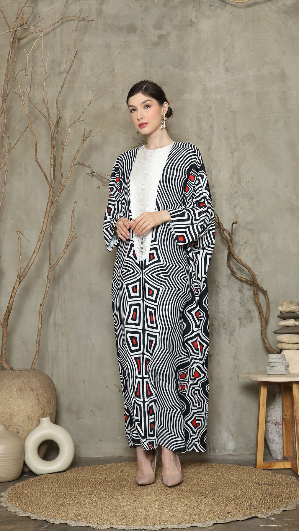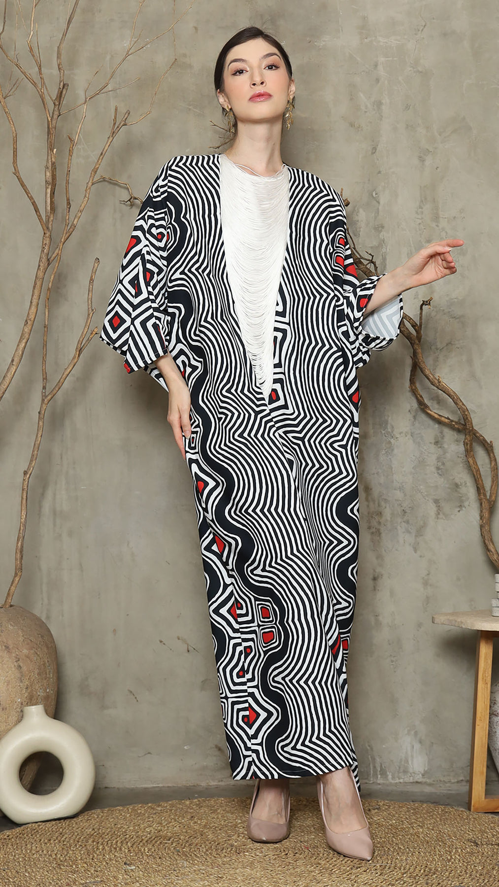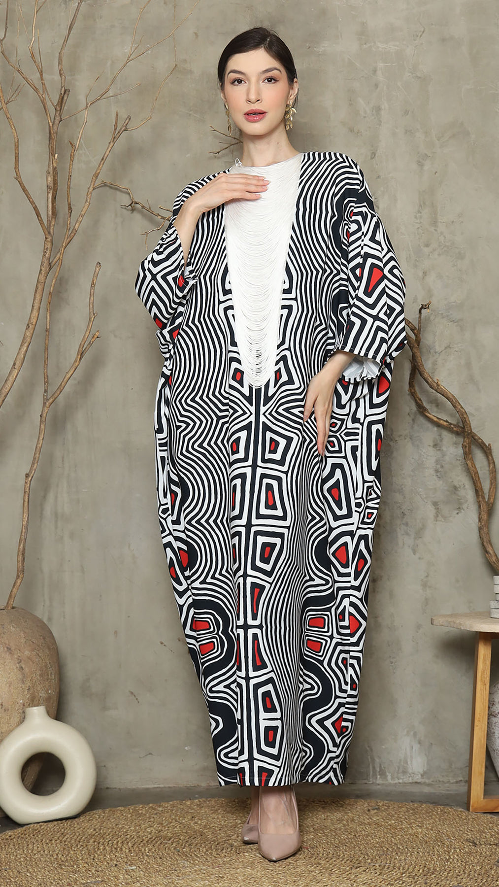 Bw Abstract Necklace Fringe Long Kaftan
