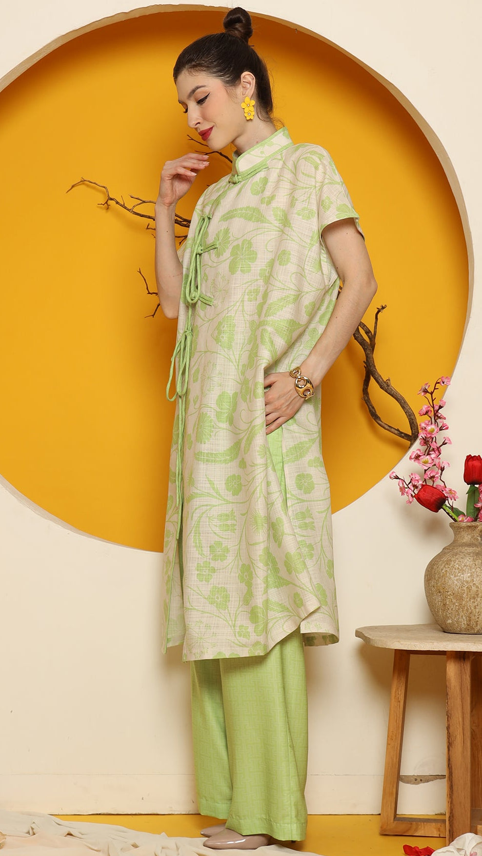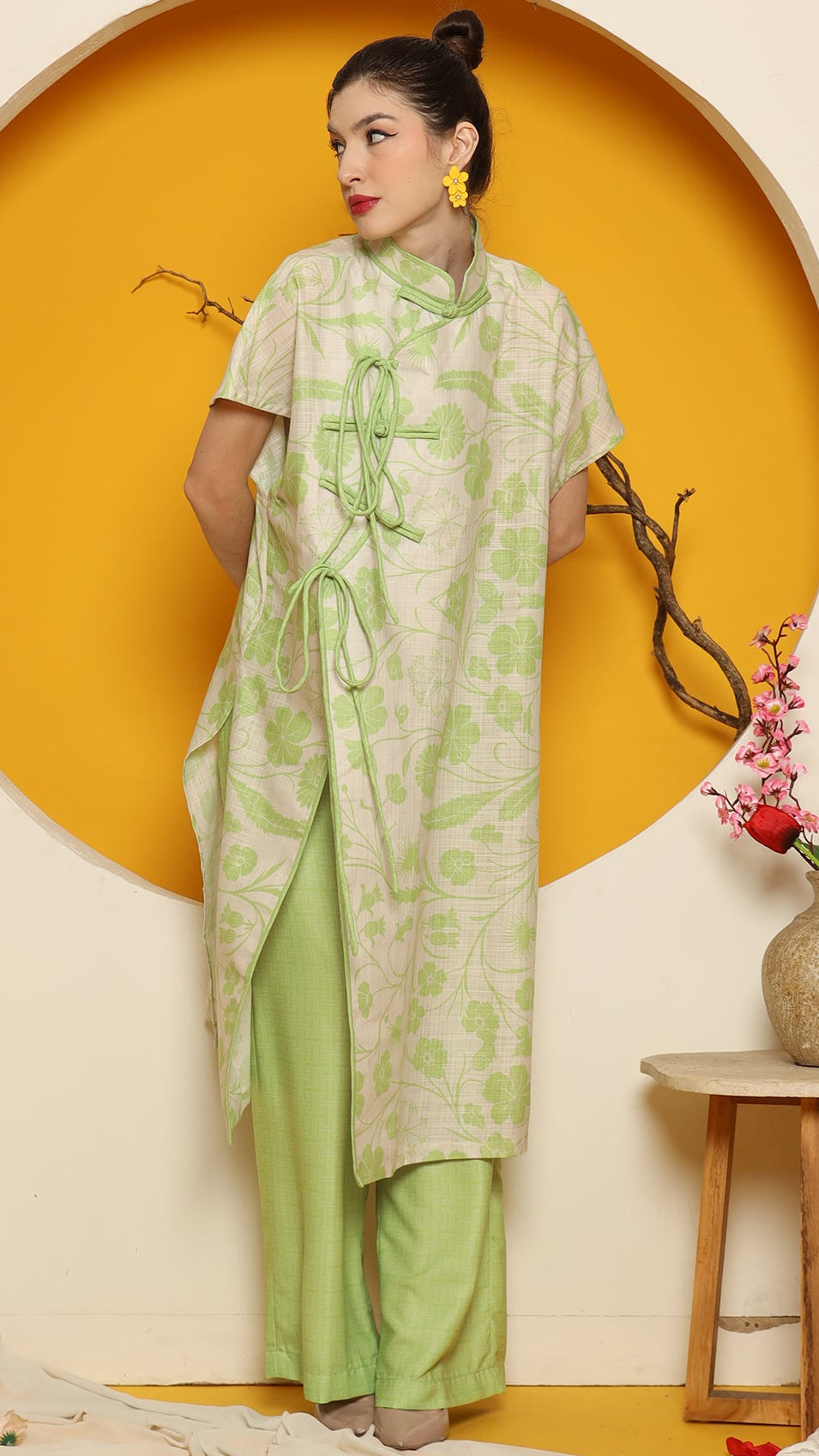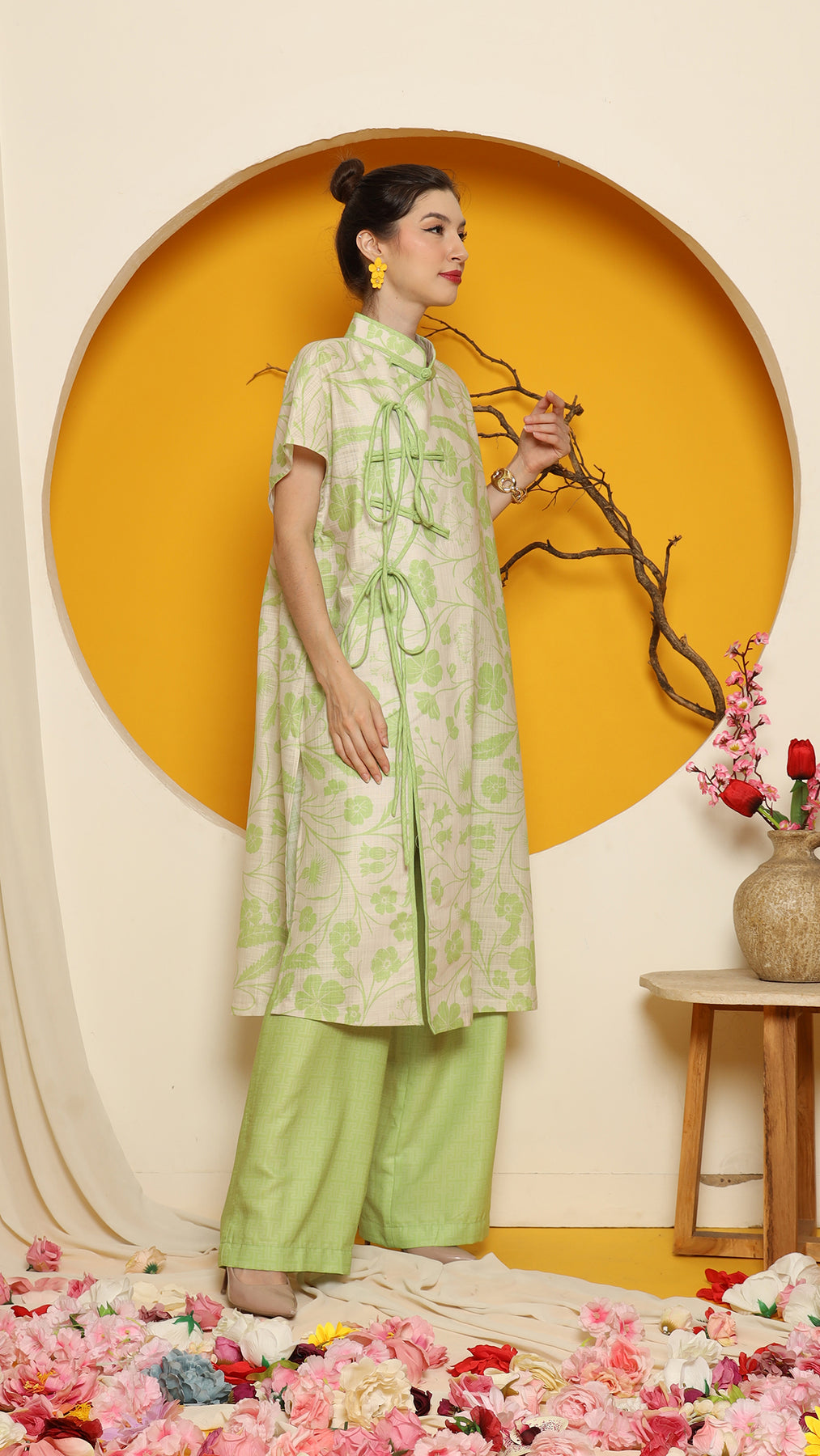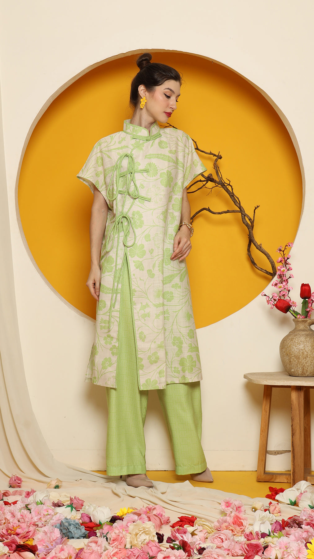 This ORIENTAL FLORAL CHEONGSAM free-size set features a breathable premium mixed material, ensuring comfort and elegance. Designed with an open-front style and accentuated with charming side strings, it offers a versatile fit for various occasions. The floral print adds a touch of sophistication, while the matching long pants complete the refined look. Perfect for those who value timeless style with modern functionality.