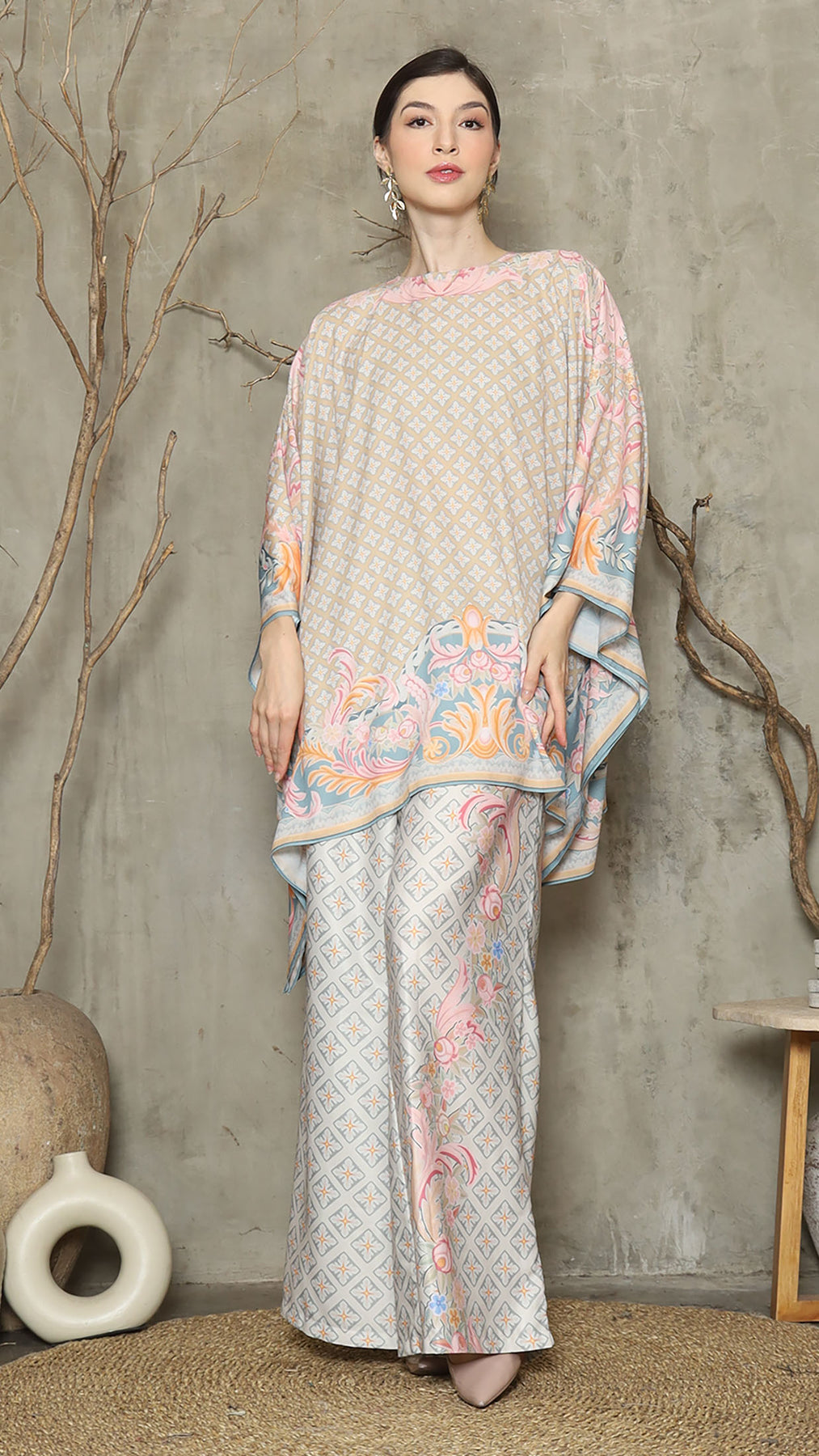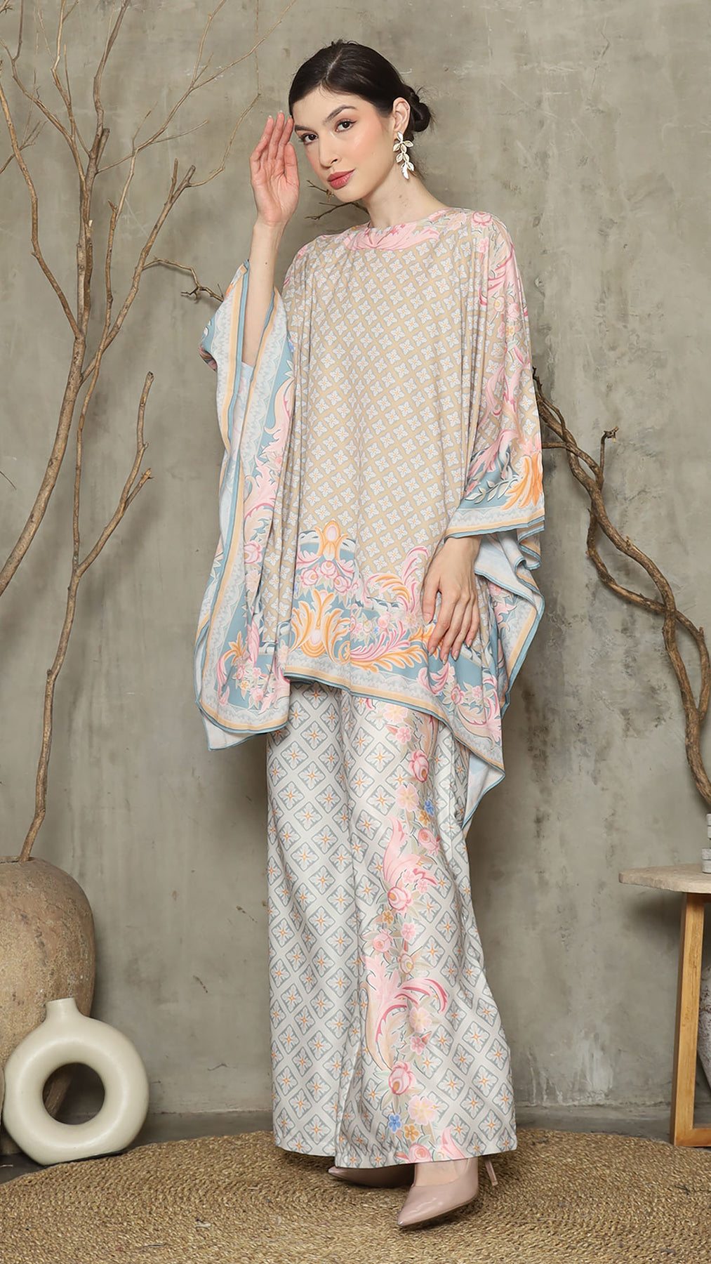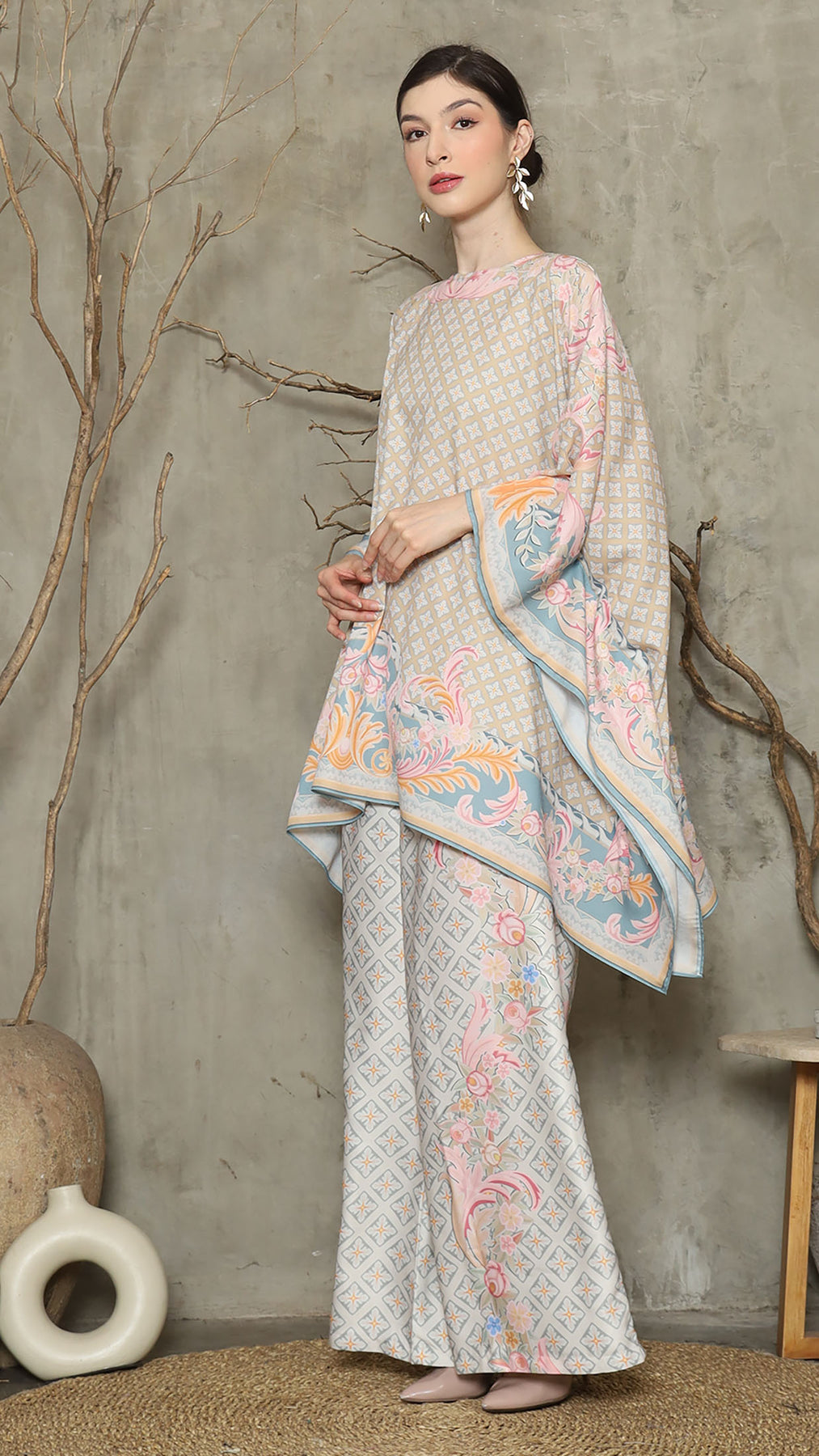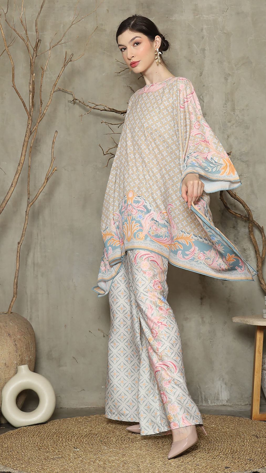 Introducing our Abstract Flower Motif Pant Set, designed to exude flair and sophistication. This stylish set features a captivating abstract flower motif that adds a touch of artistic charm to your look.