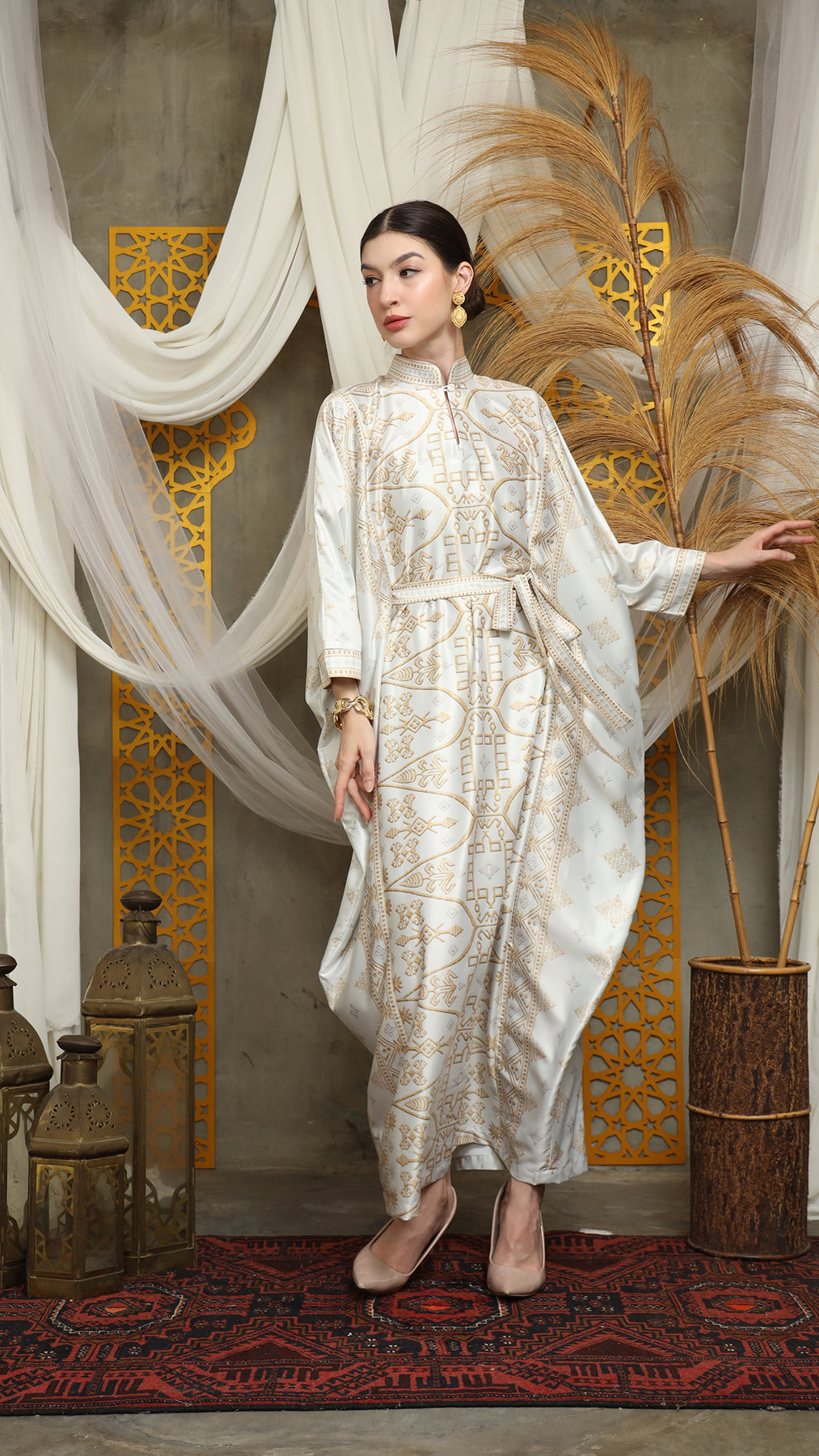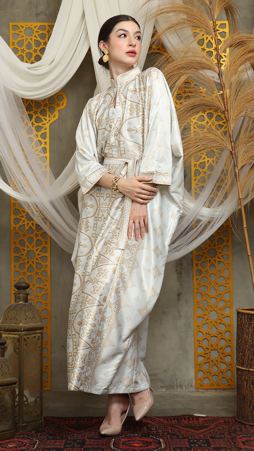 This featured dress kaftan is a true masterpiece. It offers a flattering fit that enhances your silhouette from every angle. Made from non-transparent fabric, it ensures confidence and comfort, allowing you to move with grace and poise.