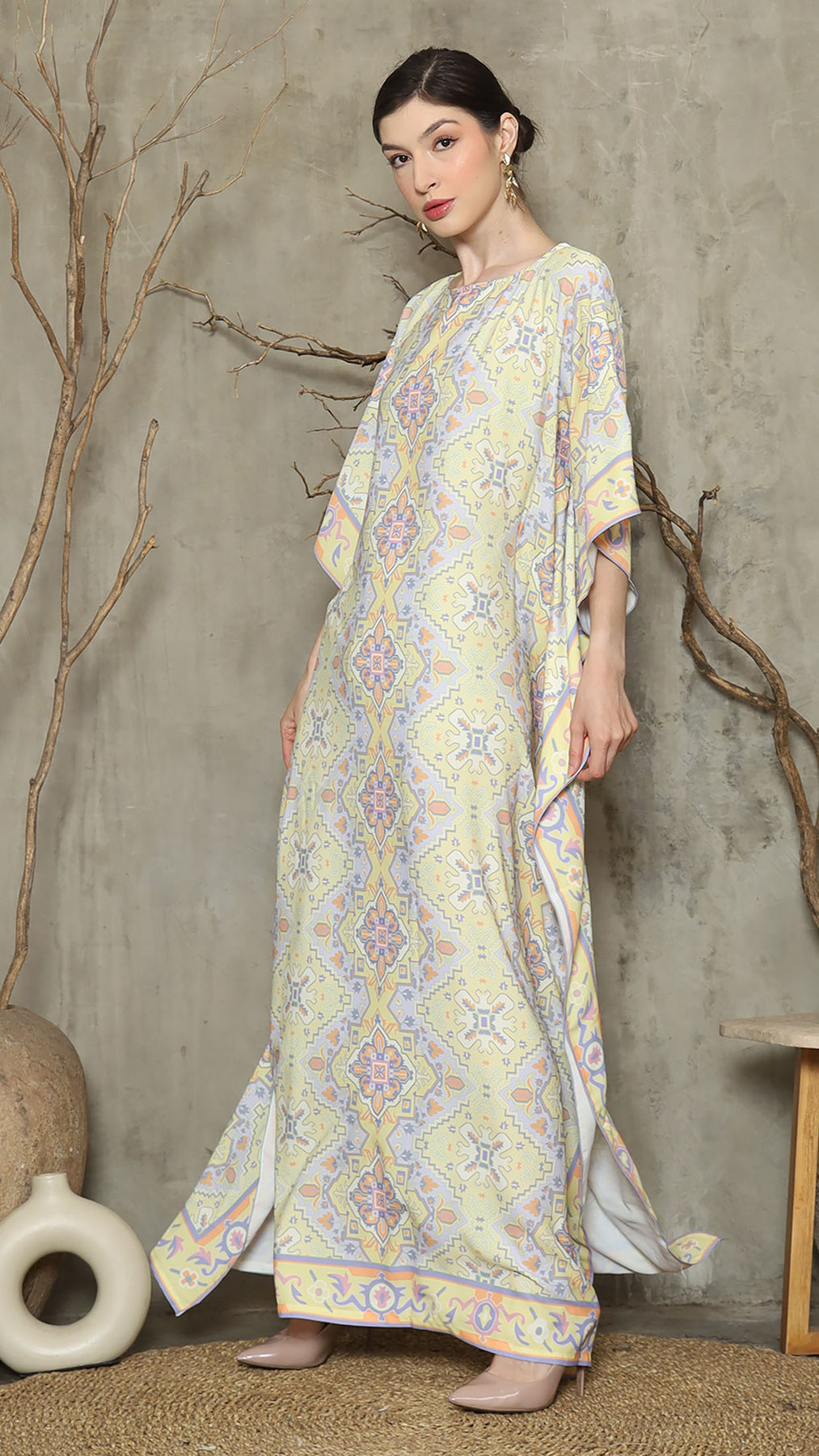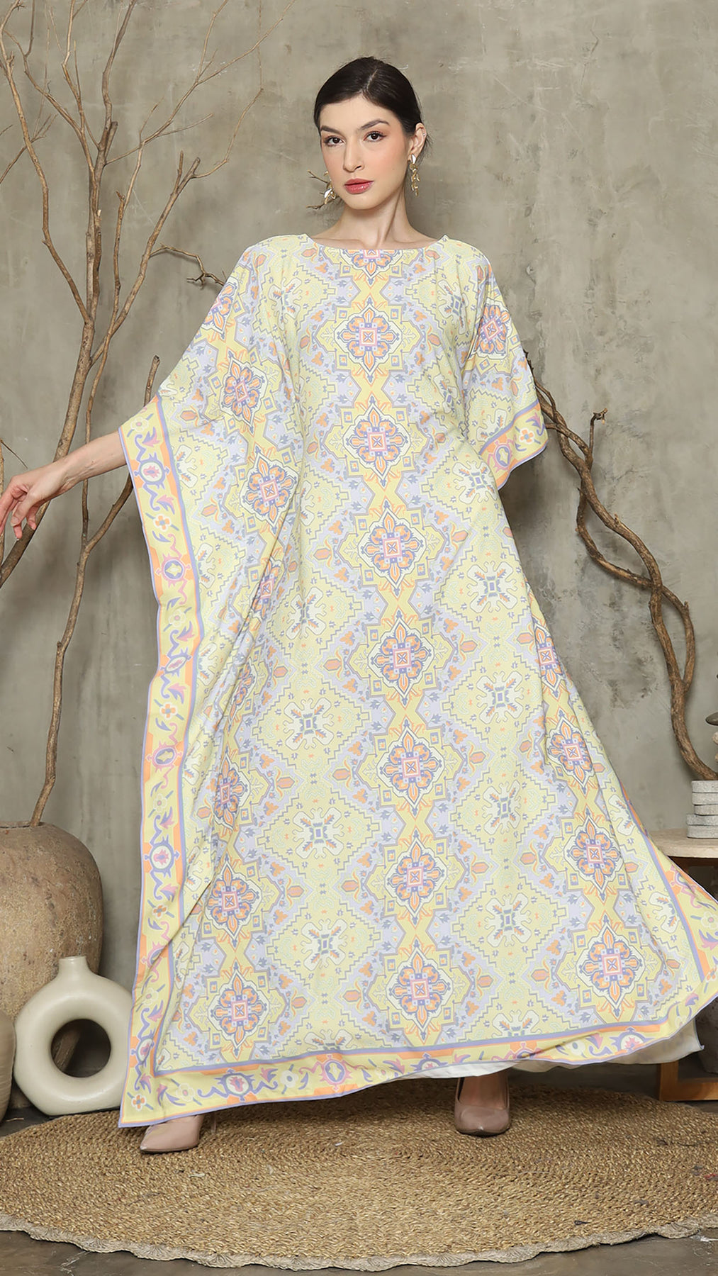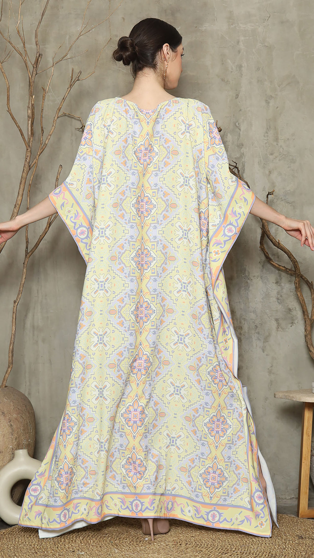 Lime Purple Abstract Short Kaftan