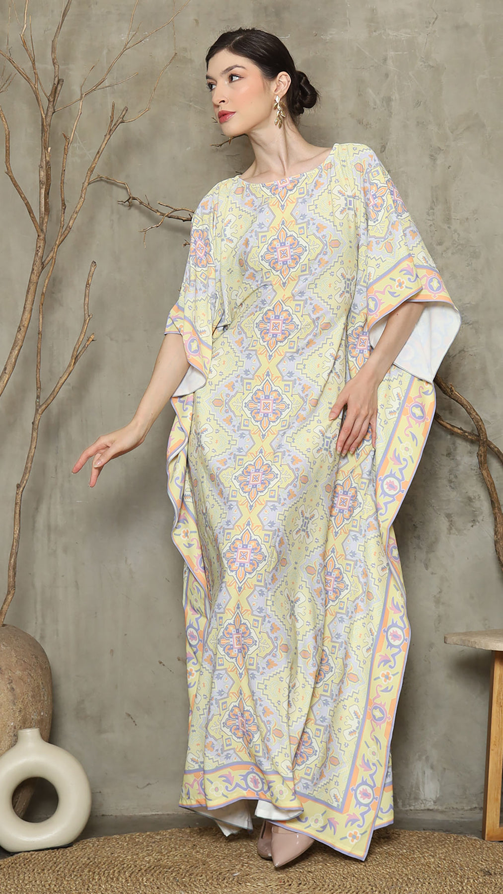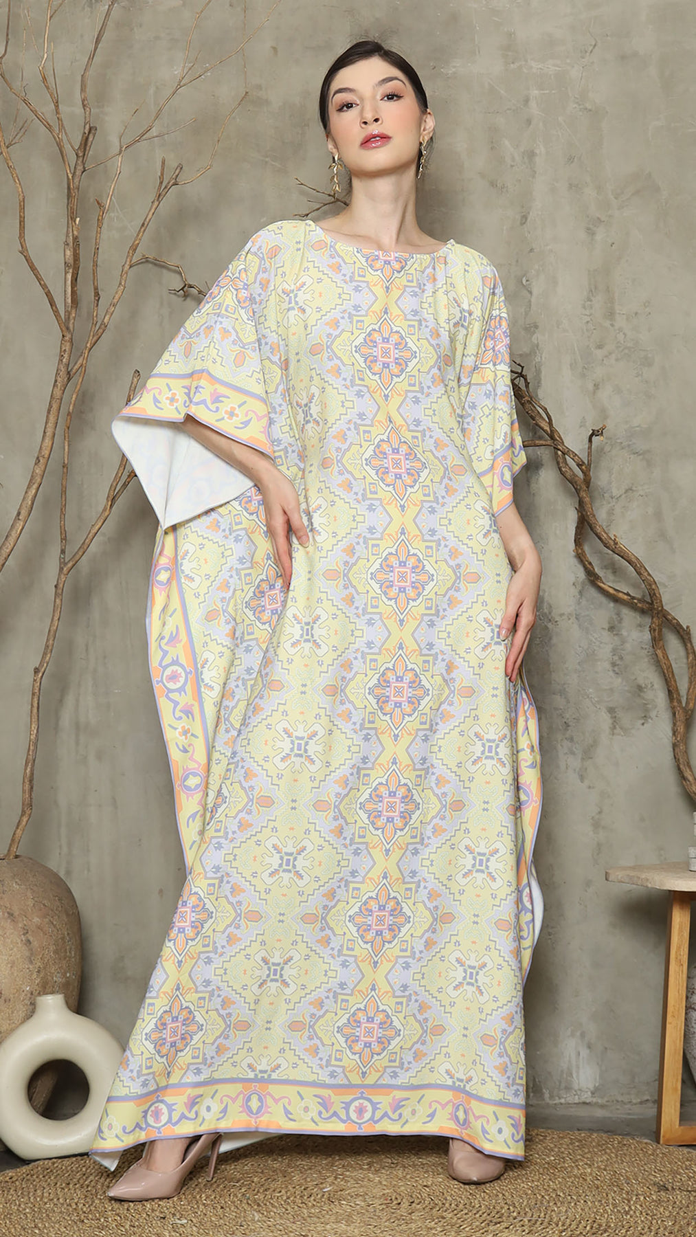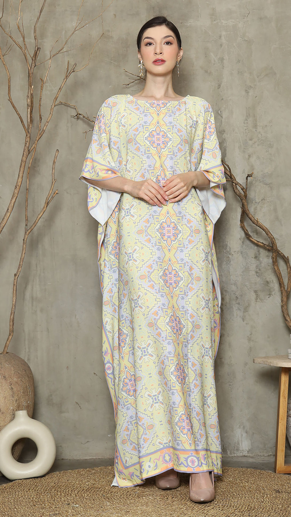 Lime Purple Abstract Short Kaftan