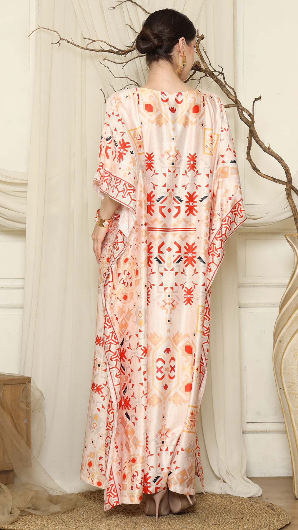 This kaftan is made from lightweight satin material, which has super comfortable to lounge around in, adjustable drawstring and flattering neckline is an added feature which offers a glamorous way to cover up and perfect for evening wear.