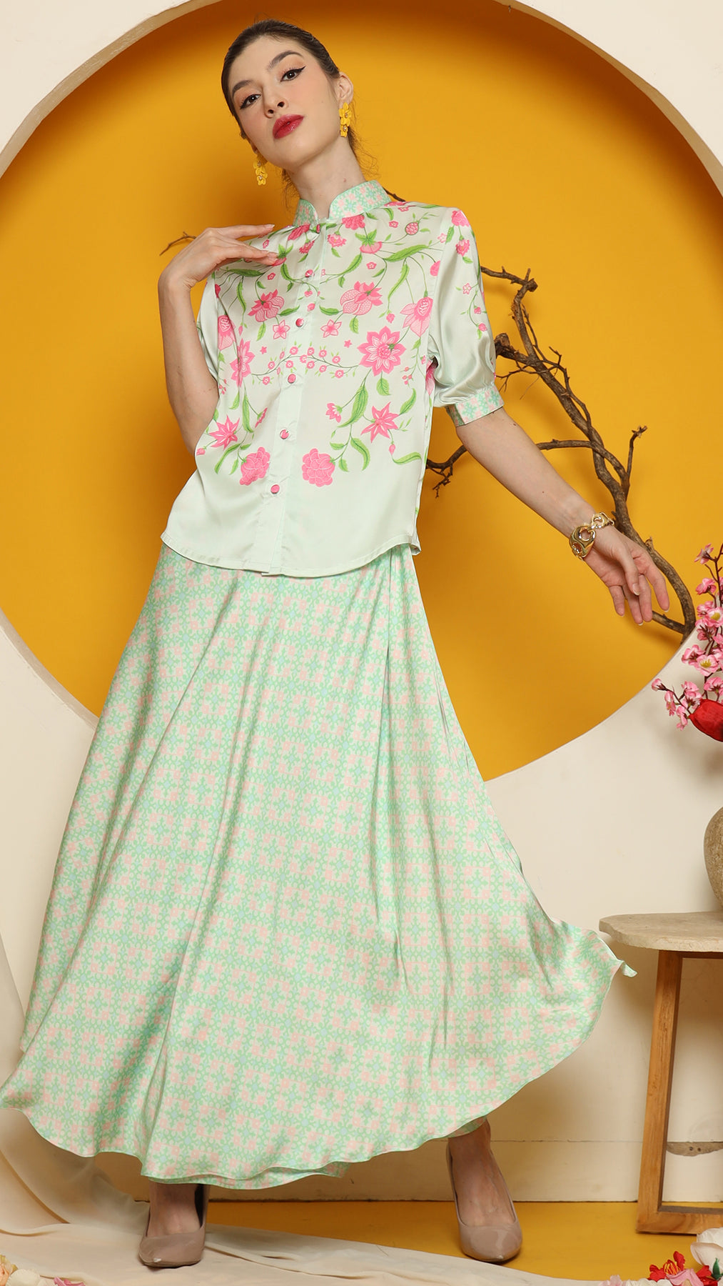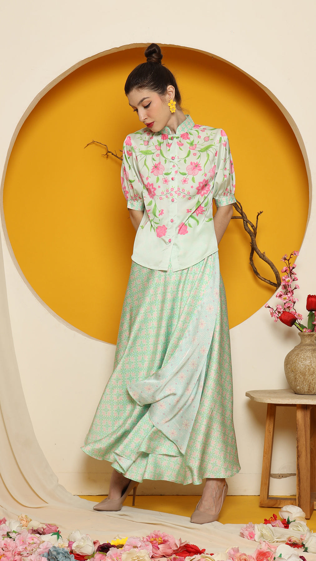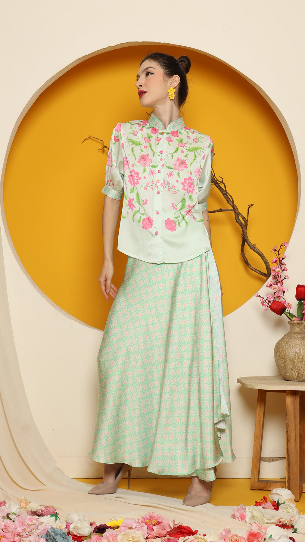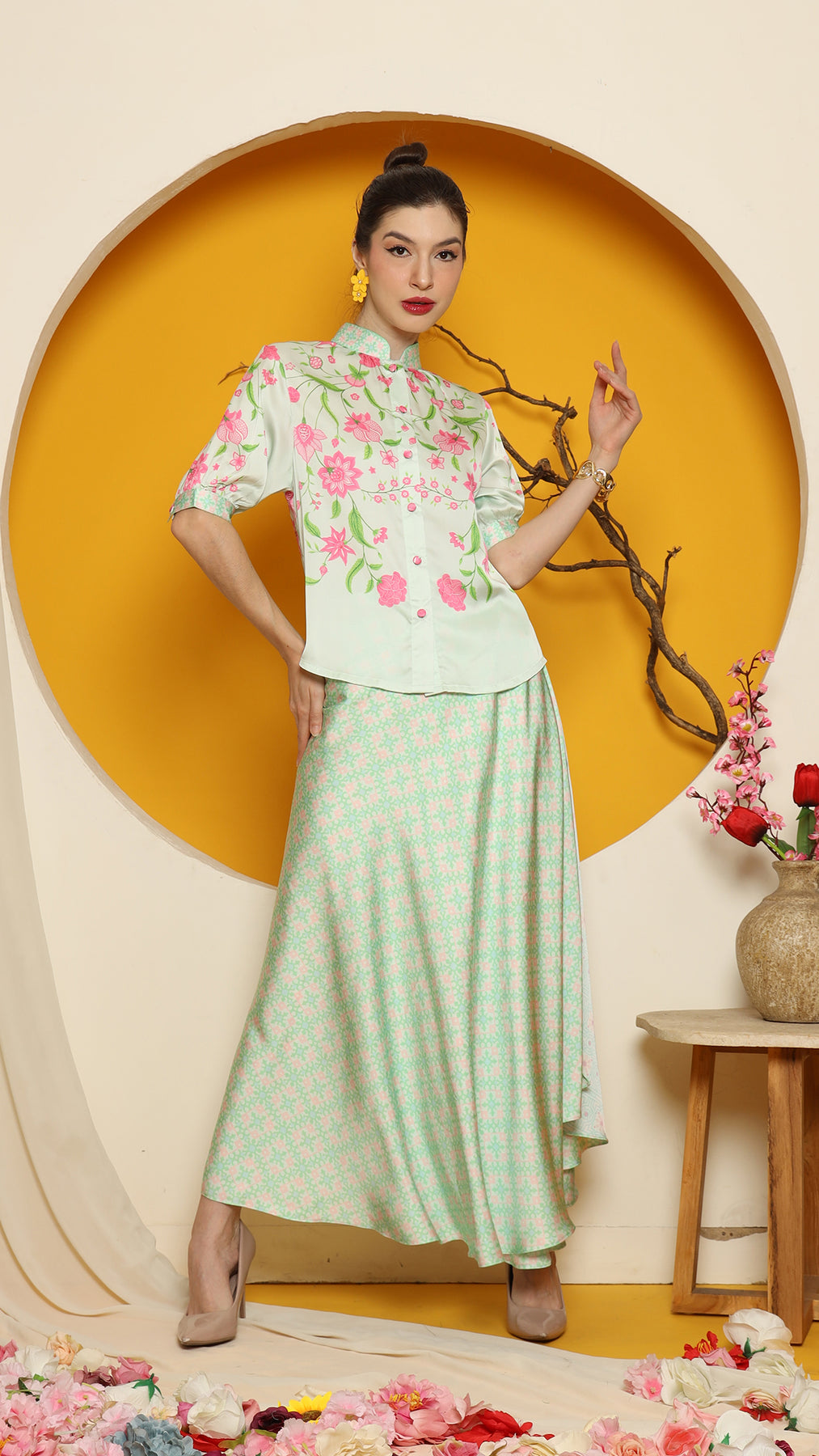 PERANAKAN FLOWER SHORT TOP with DOUBLE SIDE WRAP SKIRT