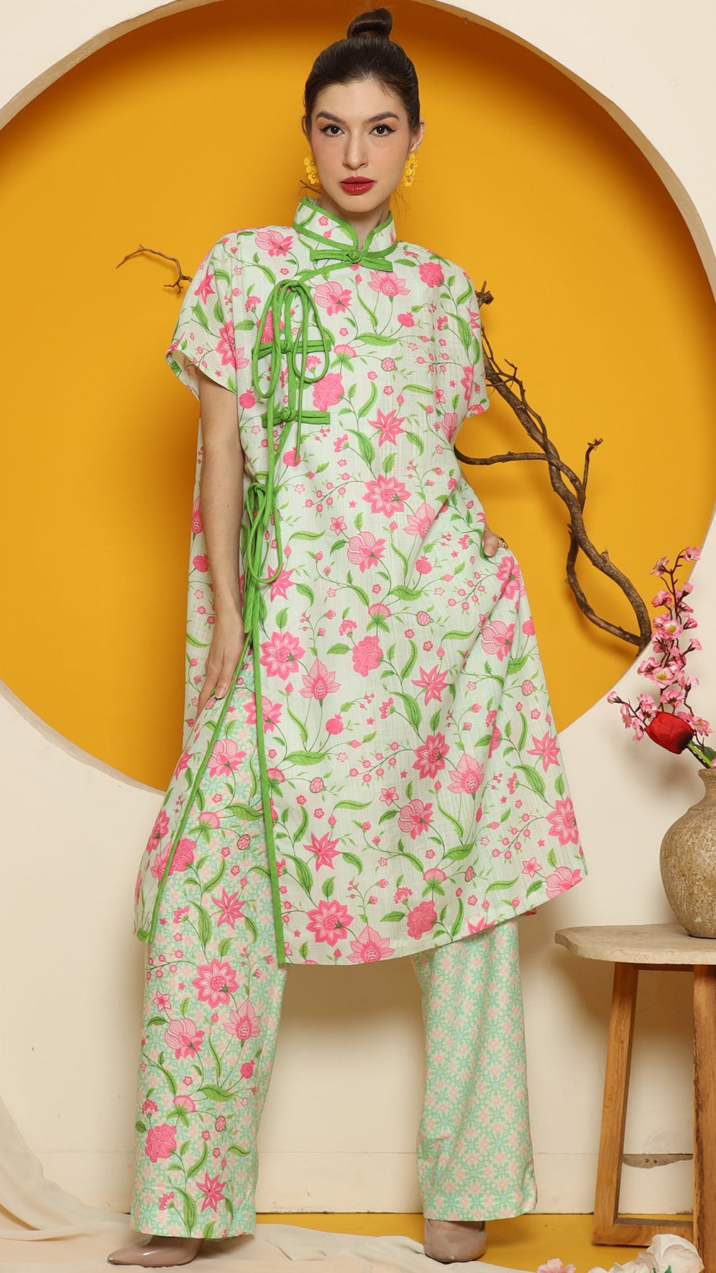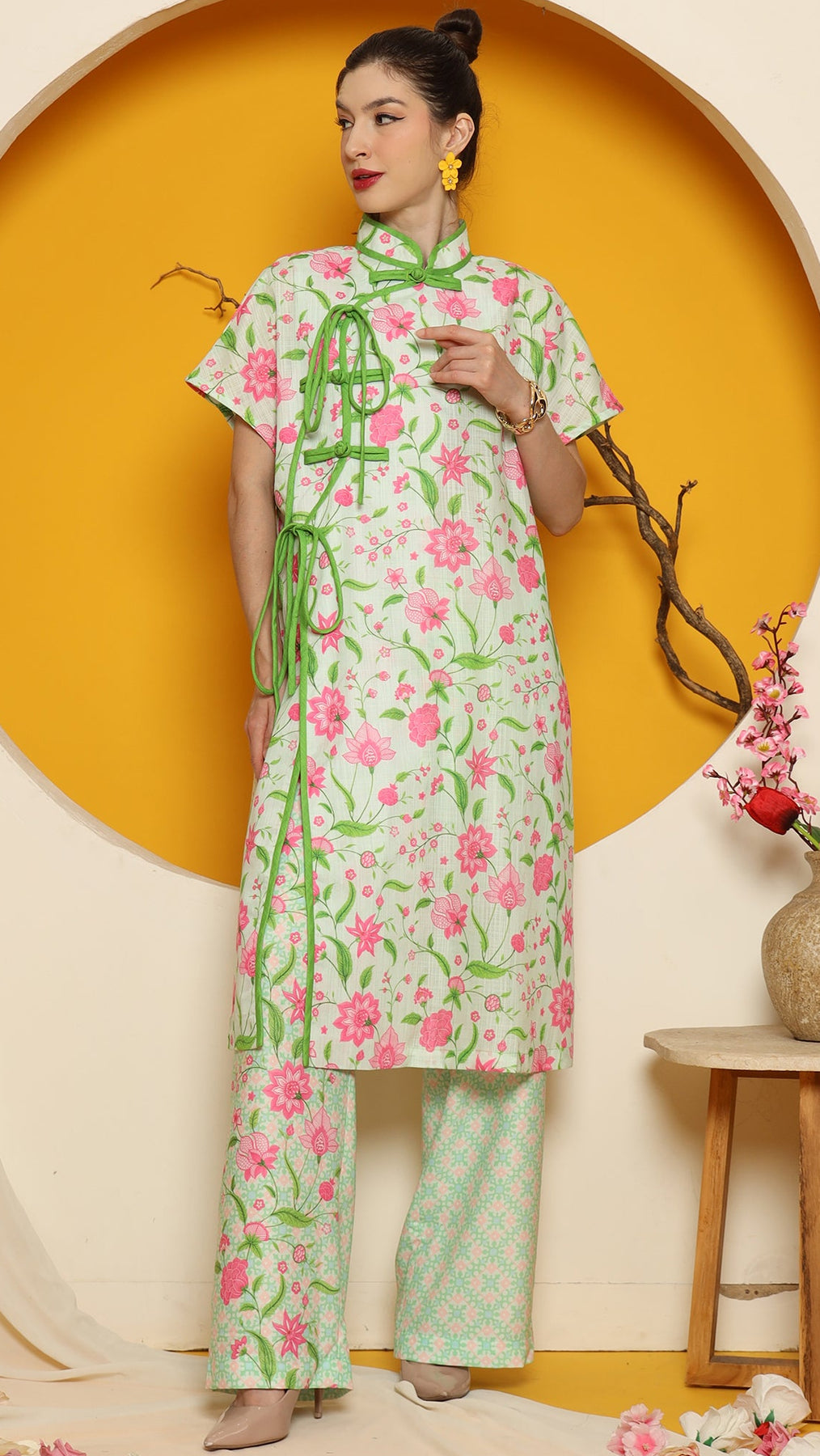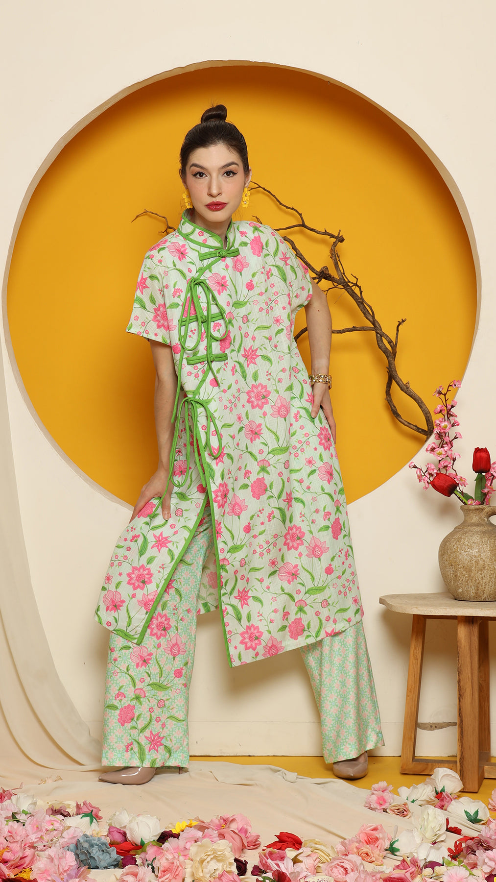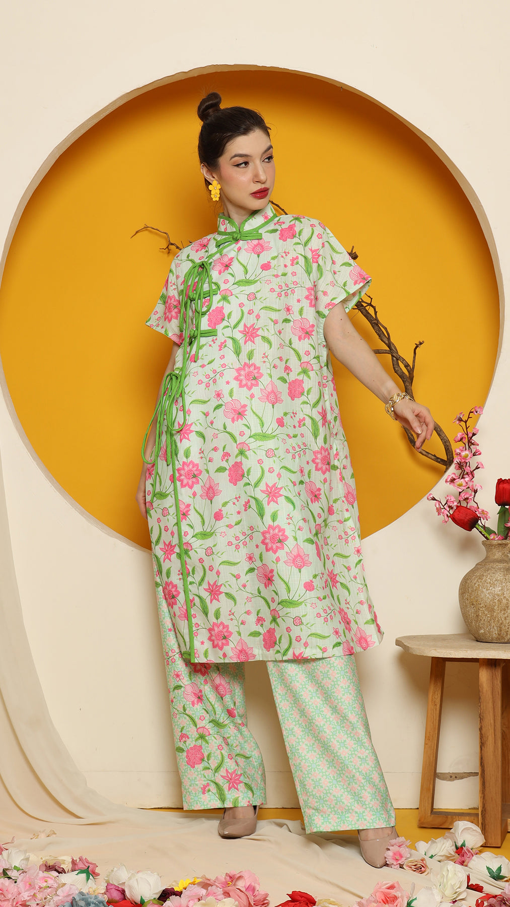 PERANAKAN ORIENTAL FLOWER CHEONGSAM PANT SET