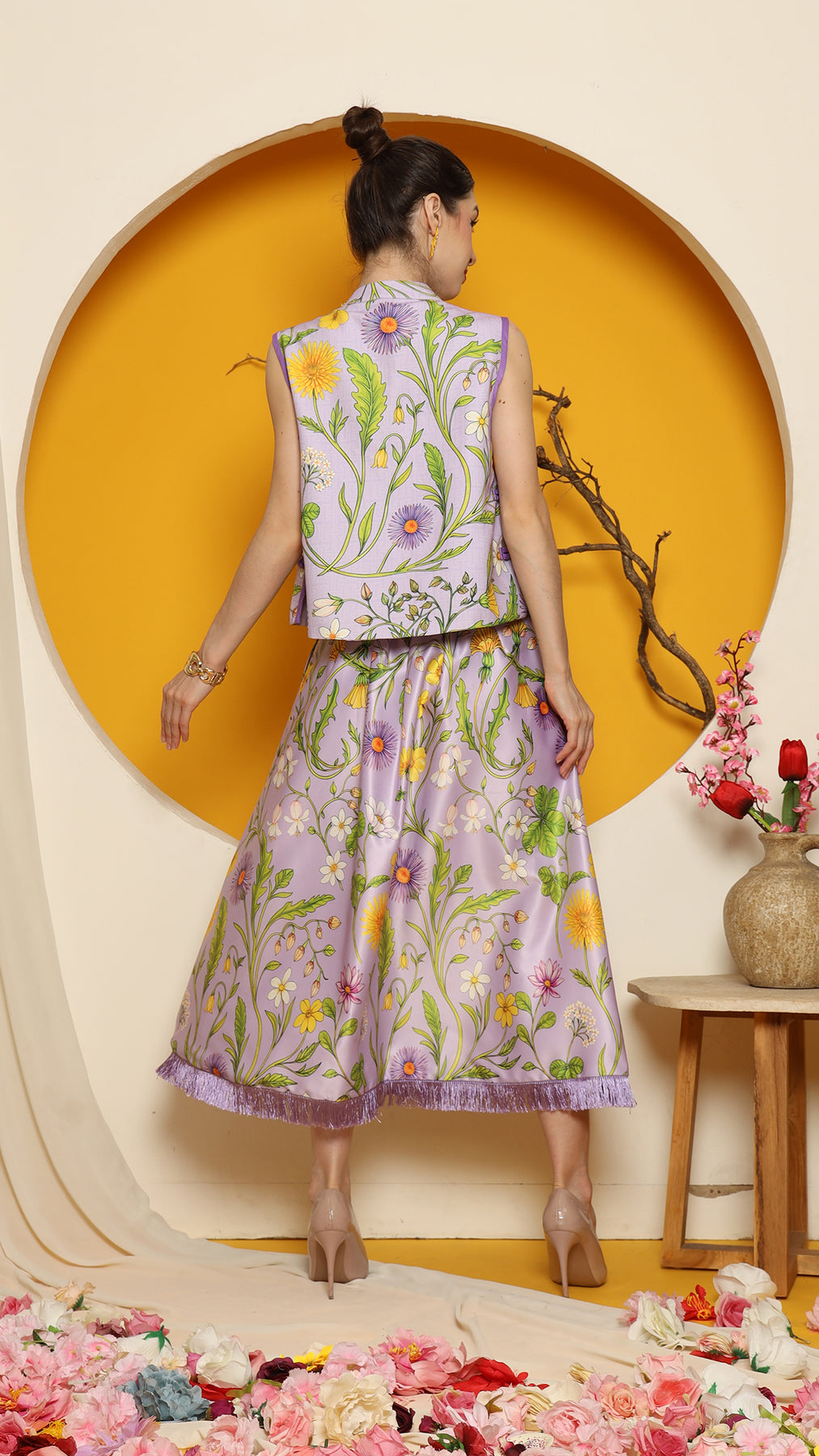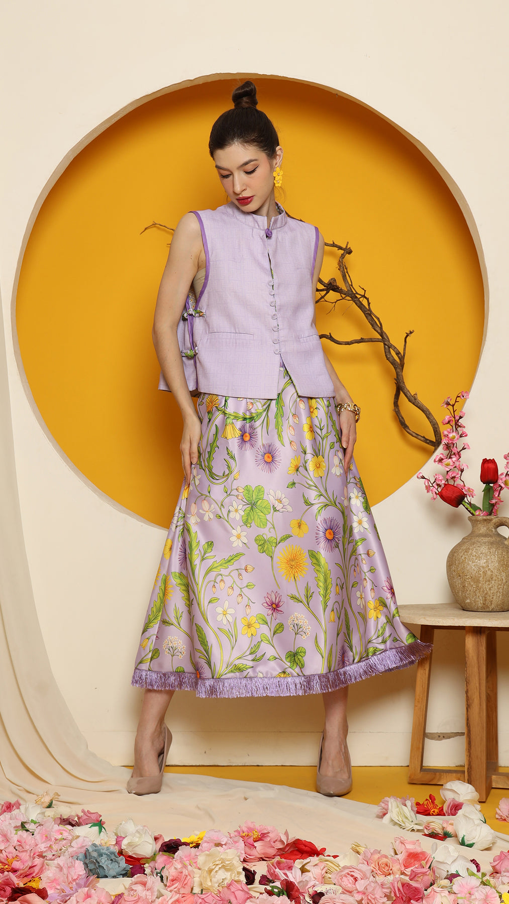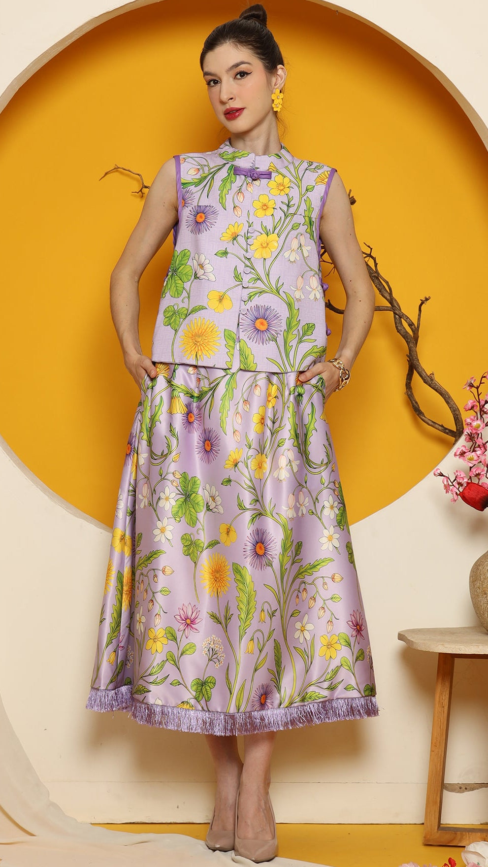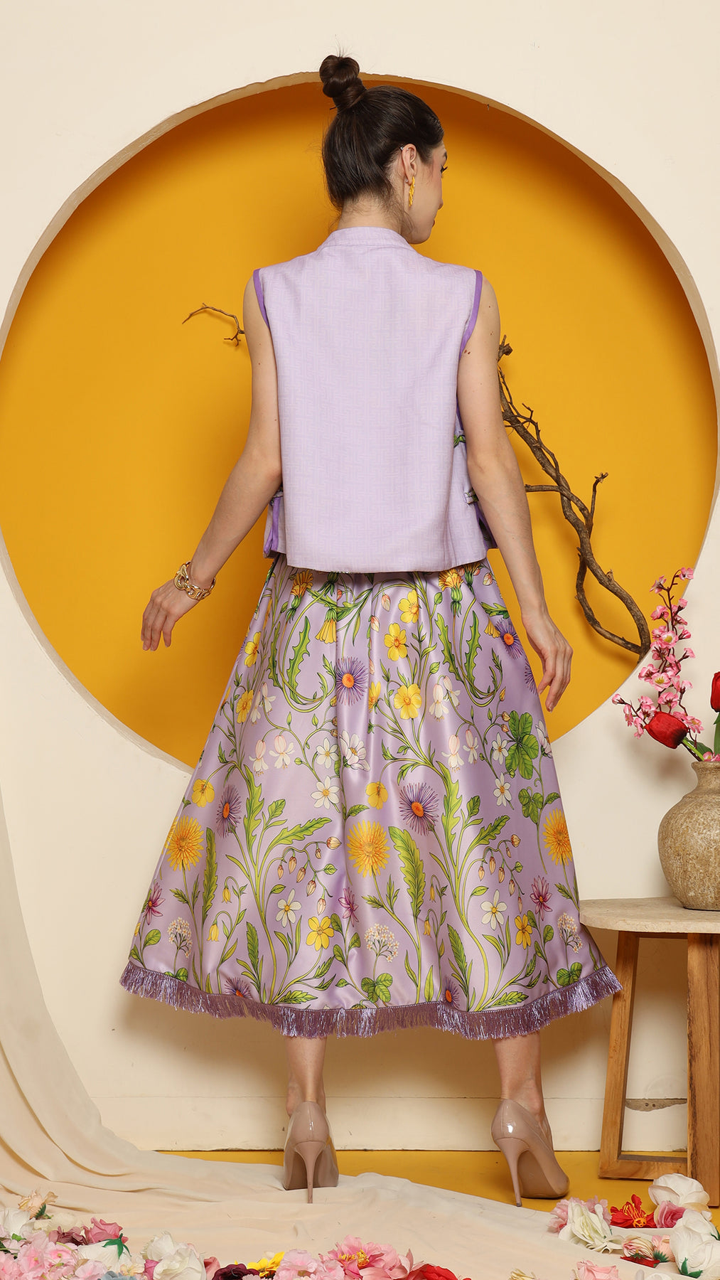 PURPLE FLOWER DOUBLE SIDE VEST with SKIRT SET