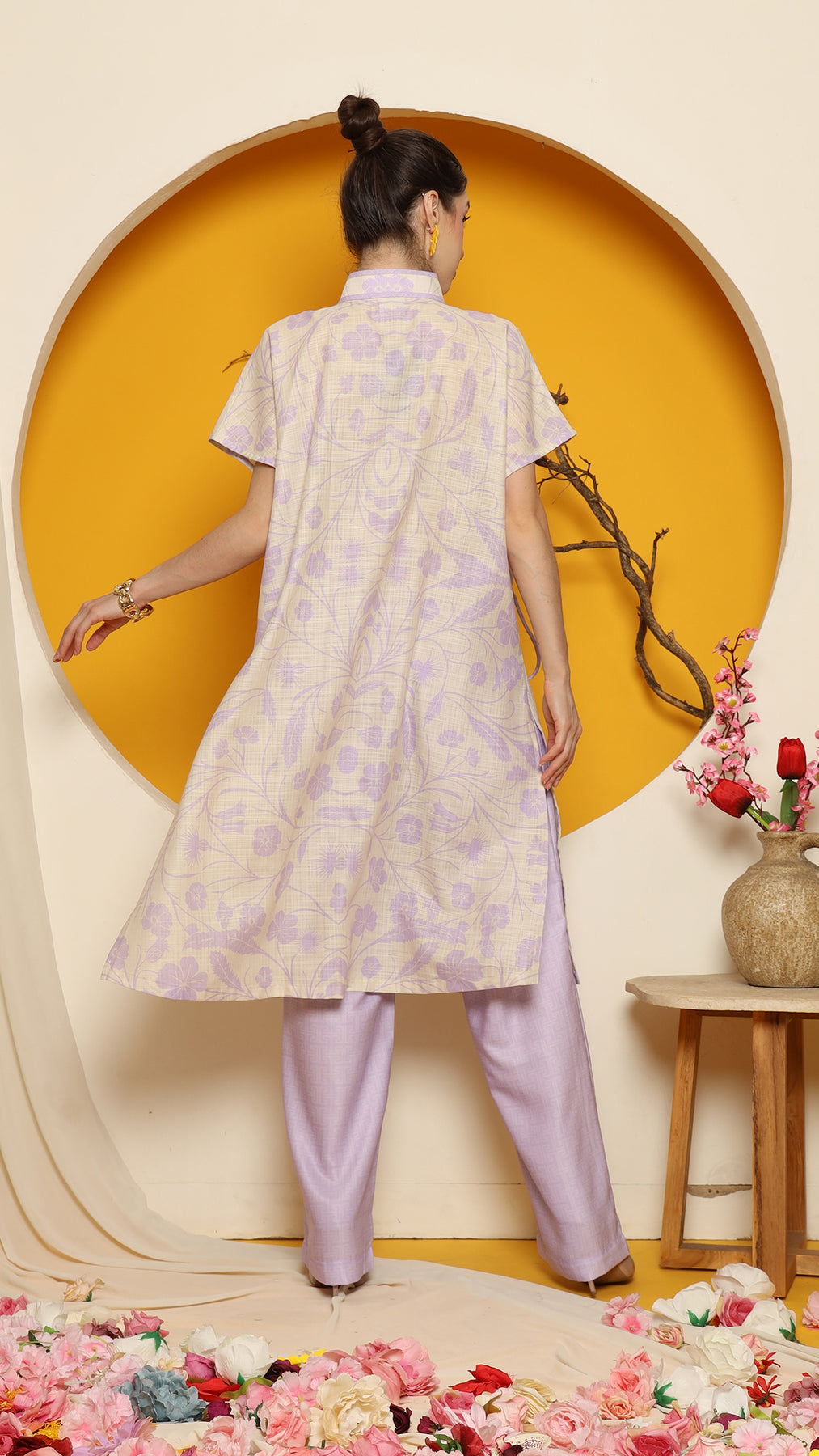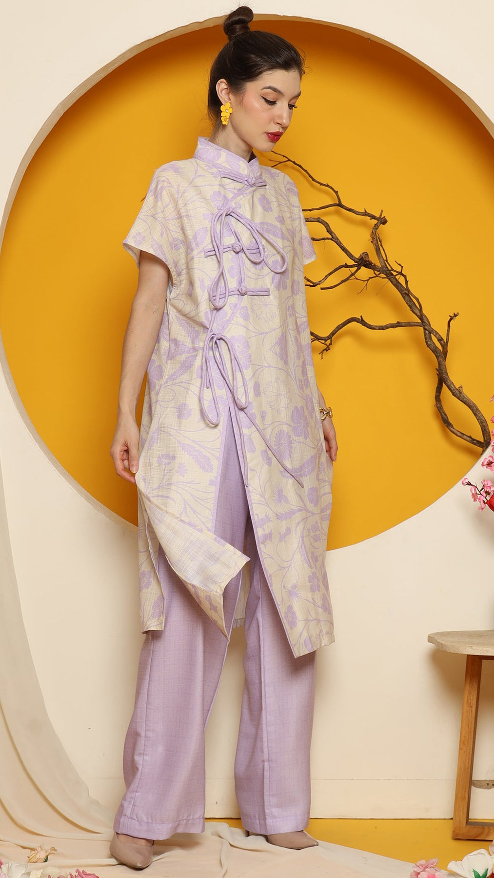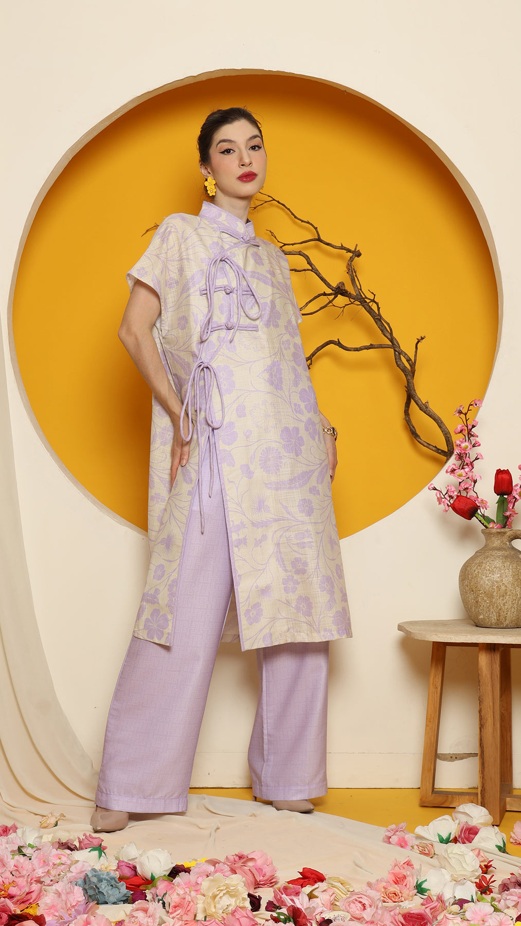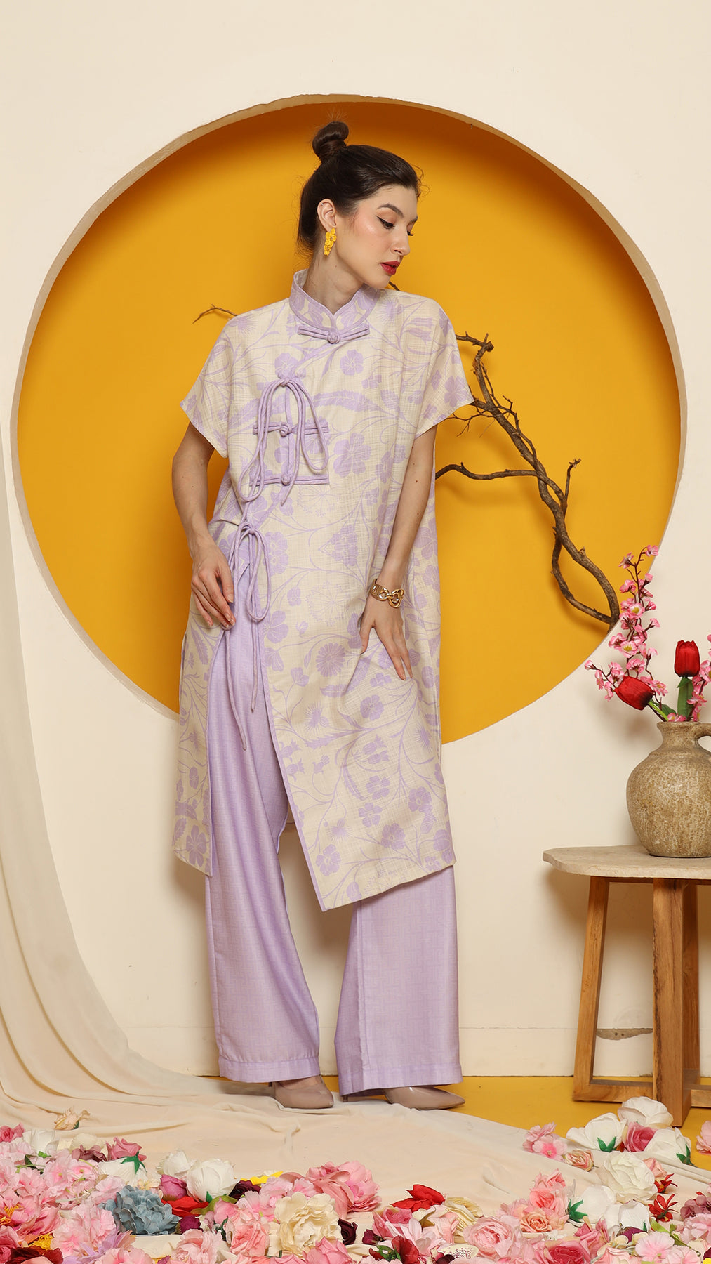 PURPLE ORIENTAL FLOWER CHEONGSAM PANT SET