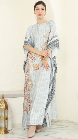 This kaftan is made from lightweight satin material, which has super comfortable to lounge around in, adjustable drawstring and flattering neckline is an added feature which offers a glamorous way to cover up and perfect for evening wear.